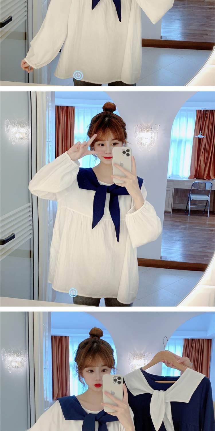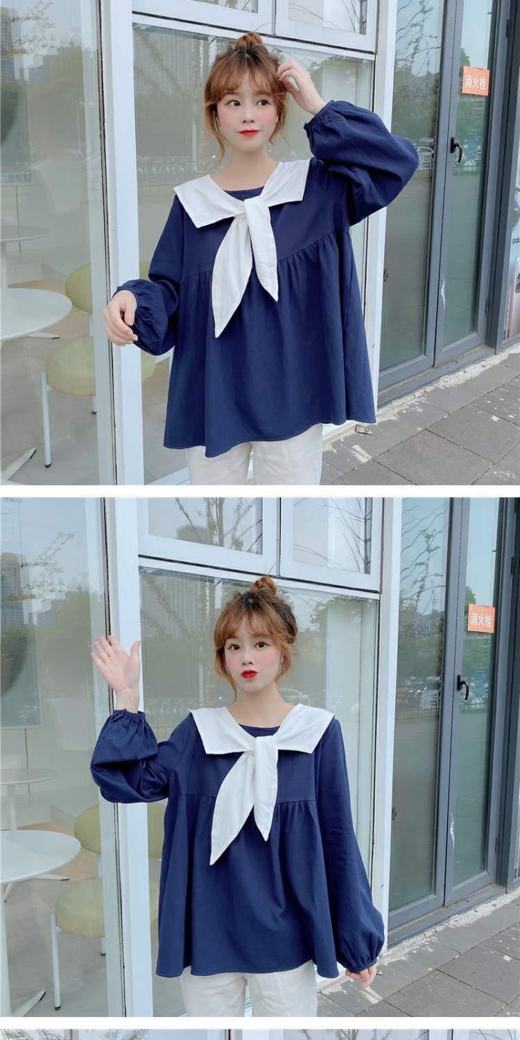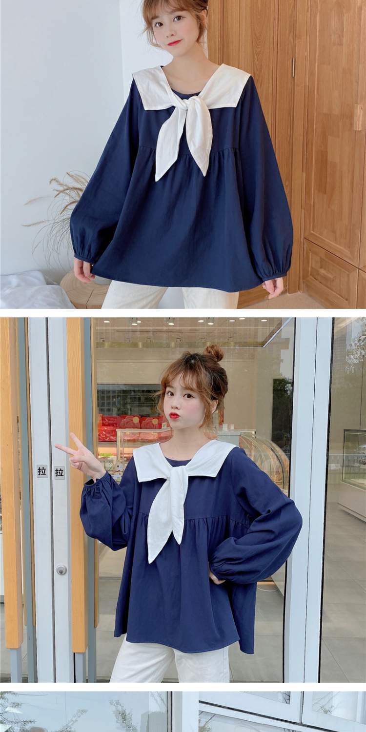 スタイルブラウス カラーネイビーシャツ スプリング ロング 大人ガーリー スウィート キュート カジュアル 春物 萌量不足94802054951