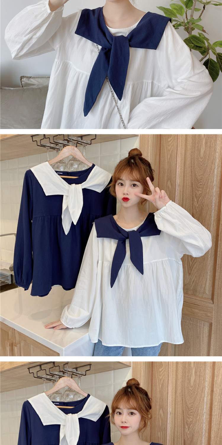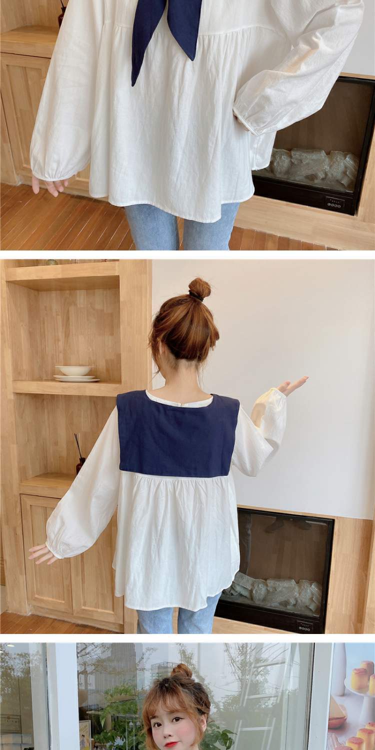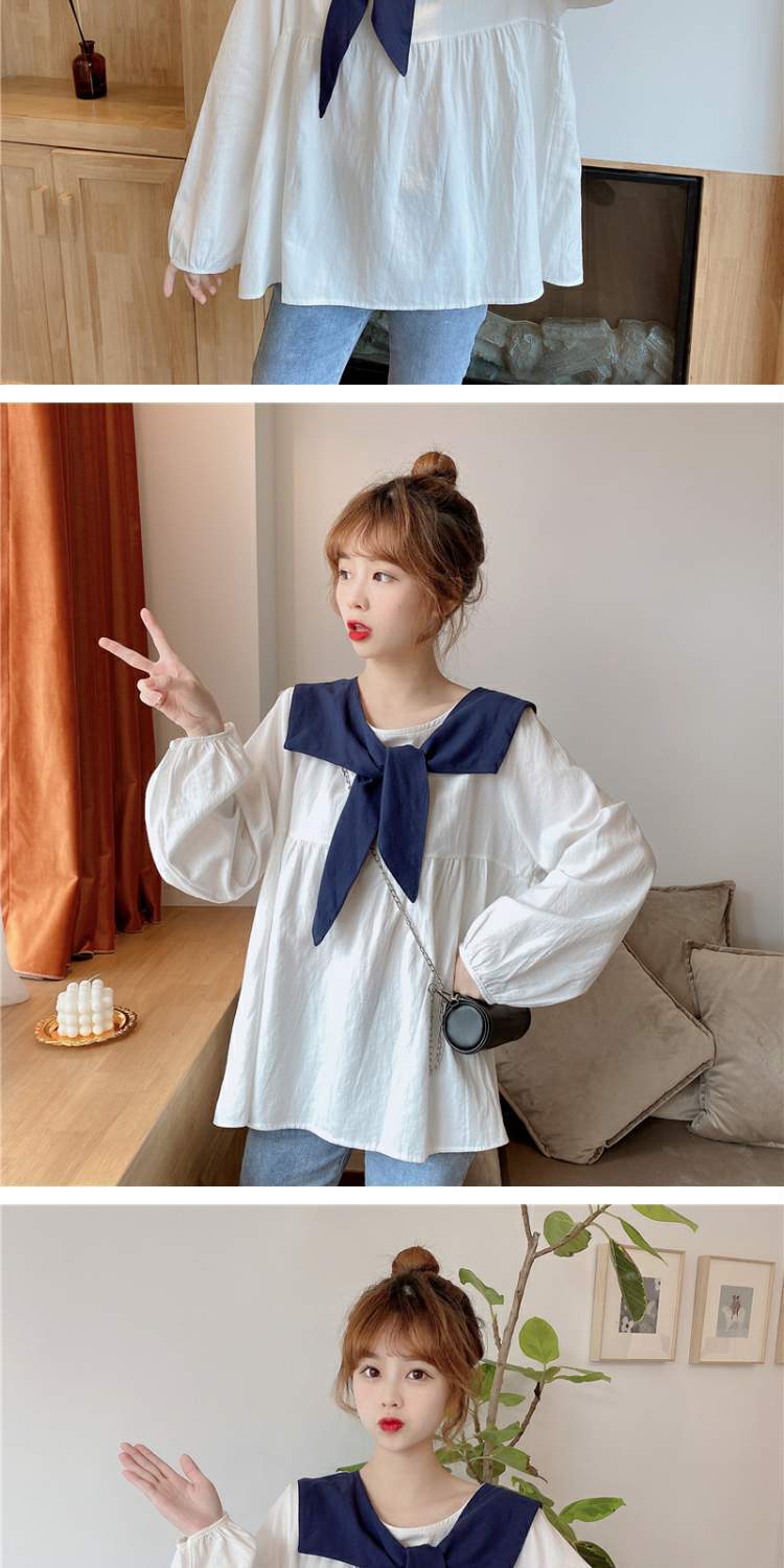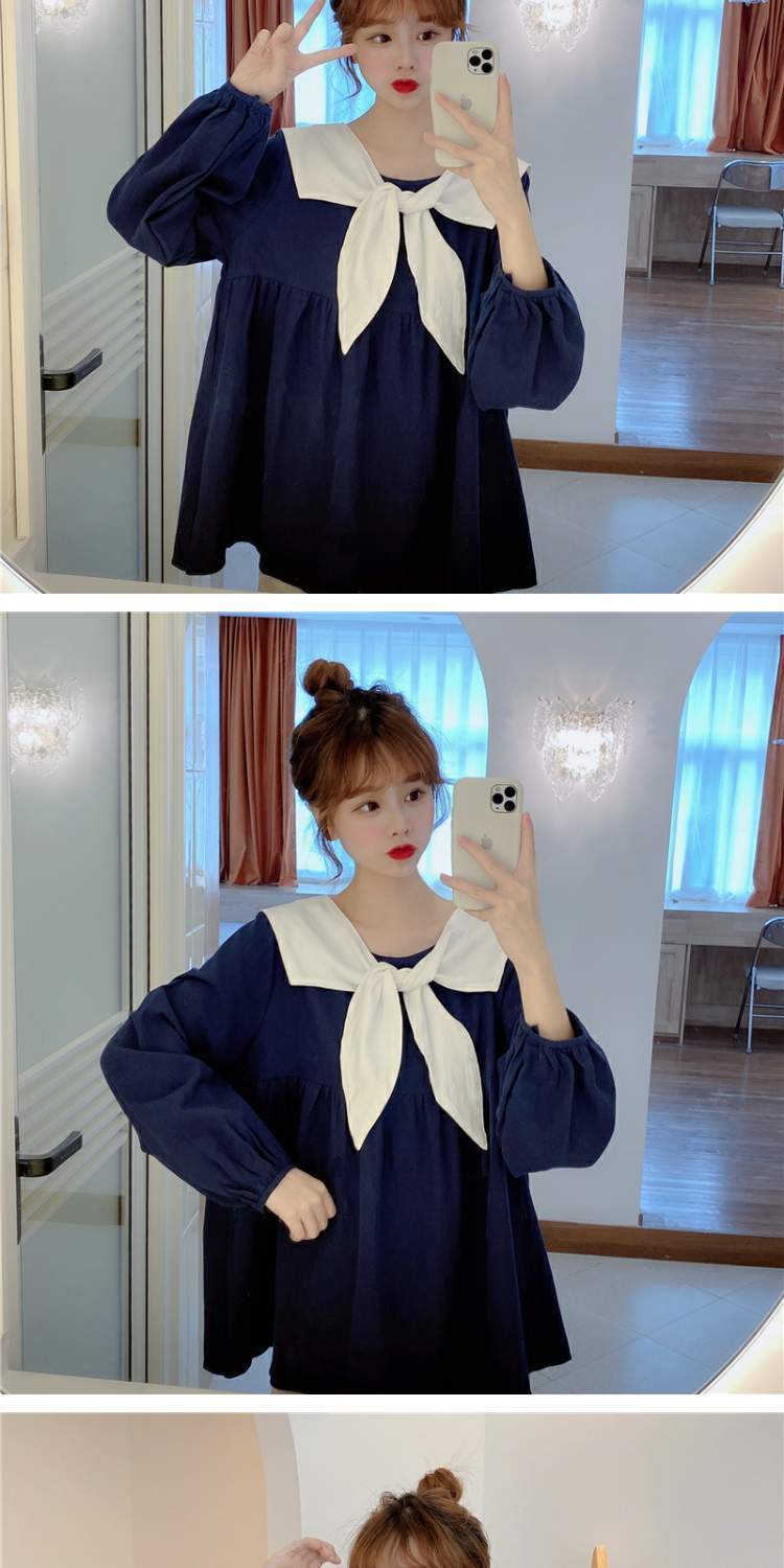 スタイルブラウス カラーネイビーシャツ スプリング ロング 大人ガーリー スウィート キュート カジュアル 春物 萌量不足94802054951