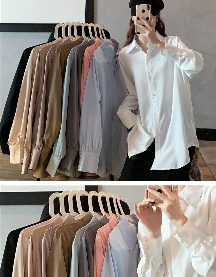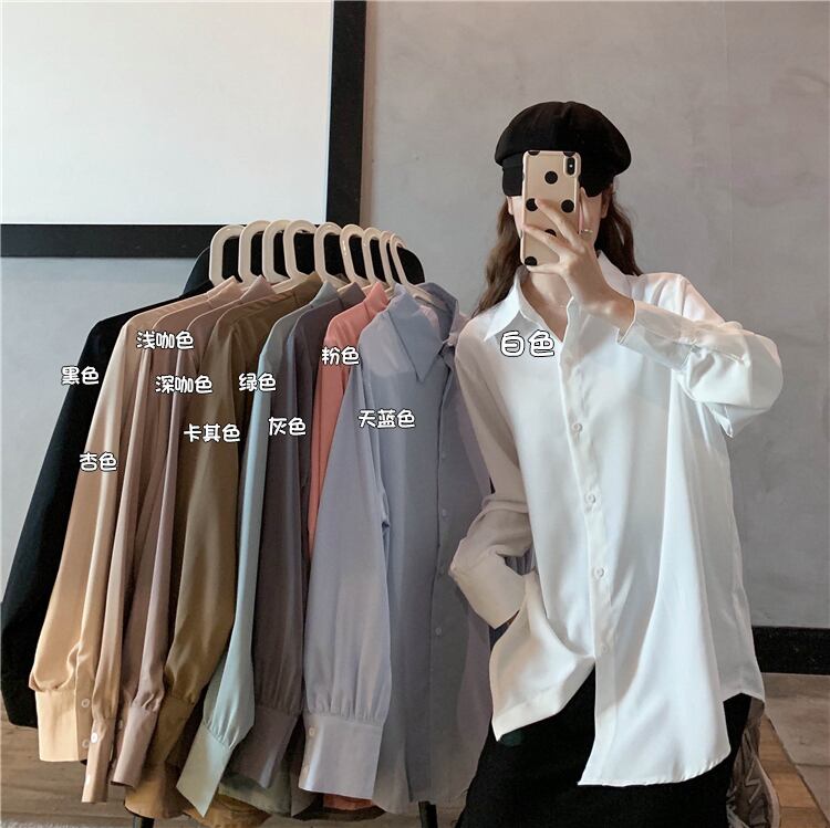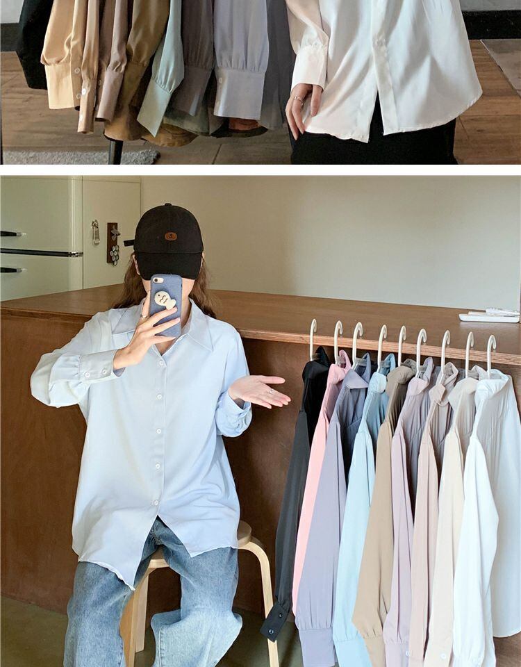 ホワイトシャツ レディーススプリングスタイルオータムルーズトップス ロング 春物 秋物 萌量不足97696270285