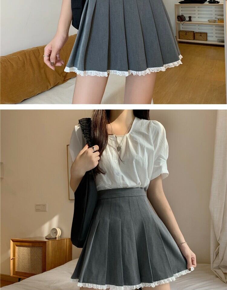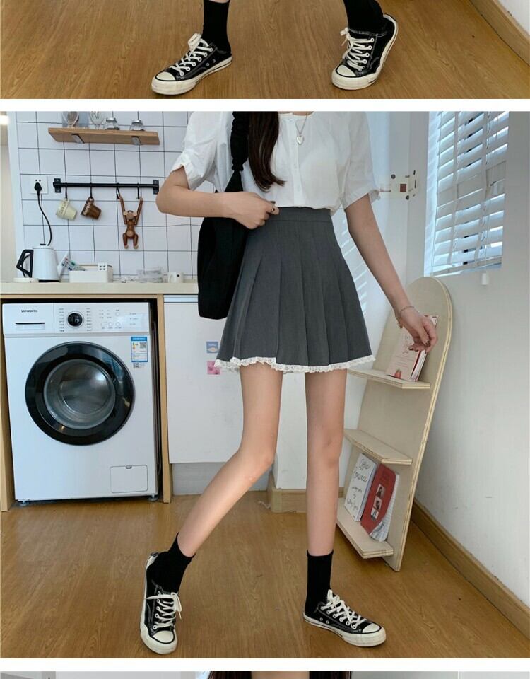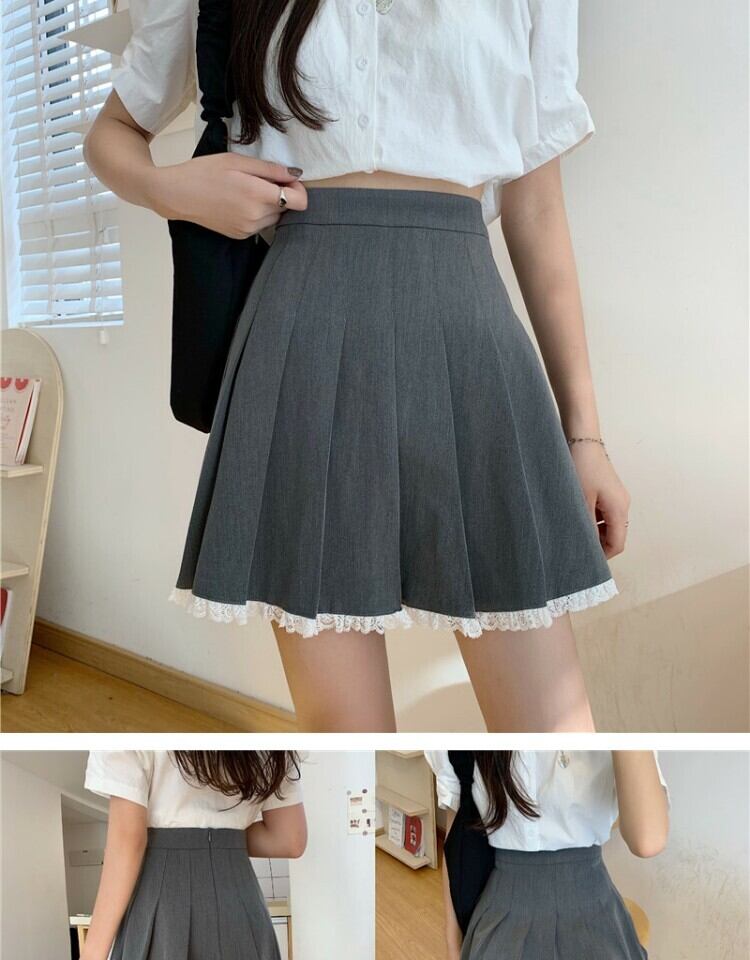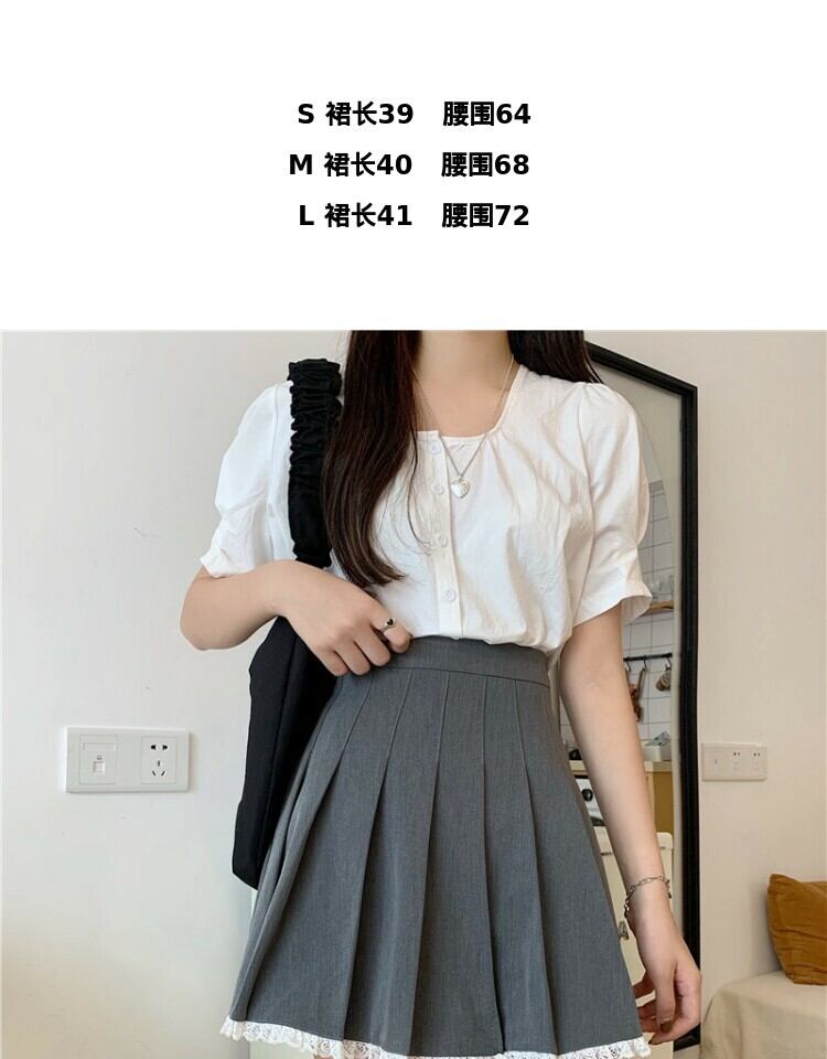 スカート スタンダードレースグレープリーツサマーハイウェストウェスト薄手Aライン レトロ 夏物 萌量不足65929560285