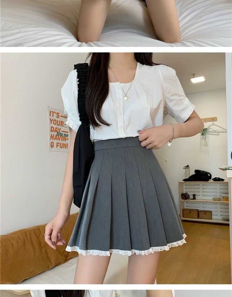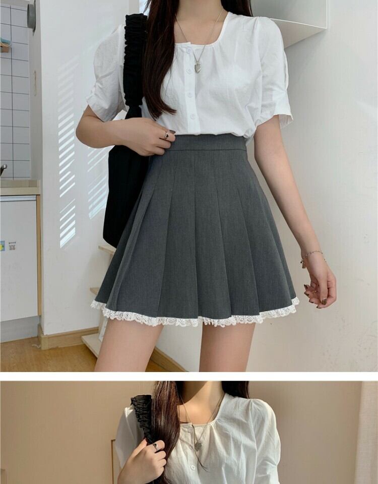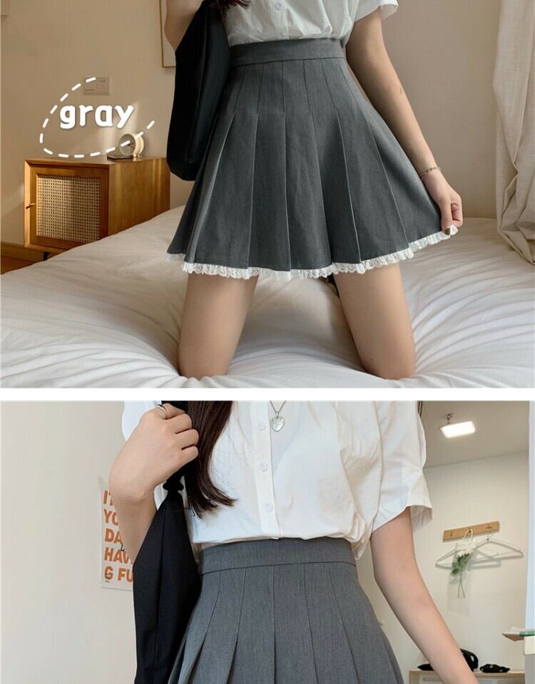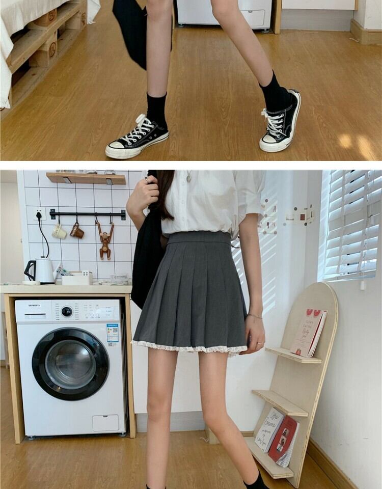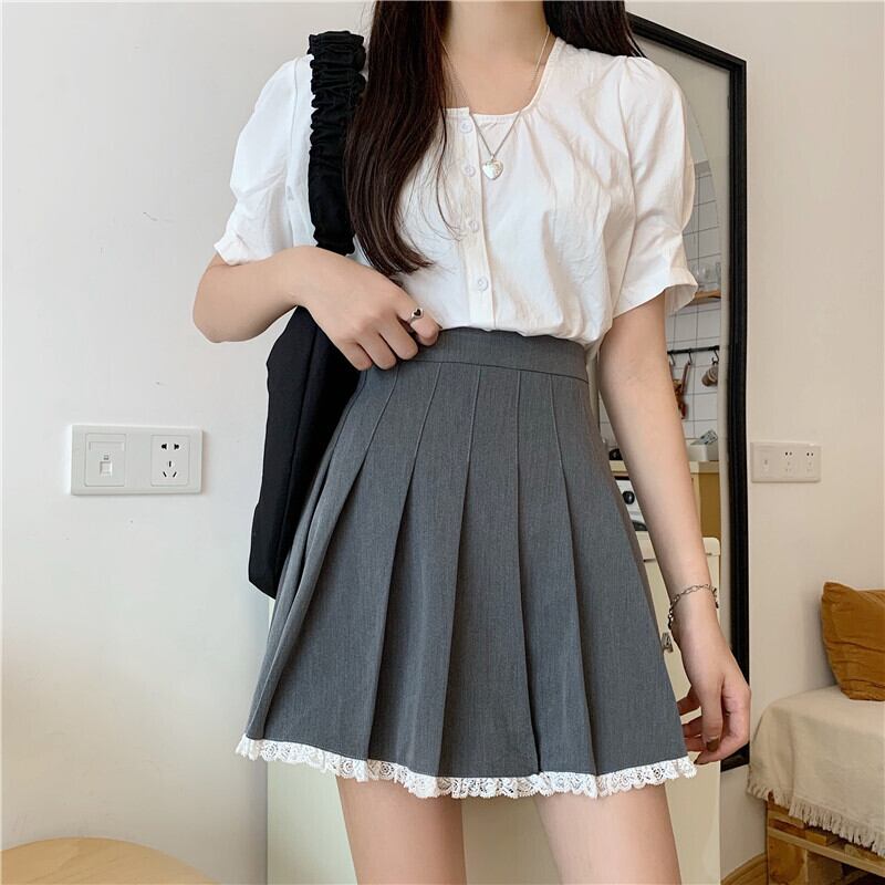 スカート スタンダードレースグレープリーツサマーハイウェストウェスト薄手Aライン レトロ 夏物 萌量不足65929560285