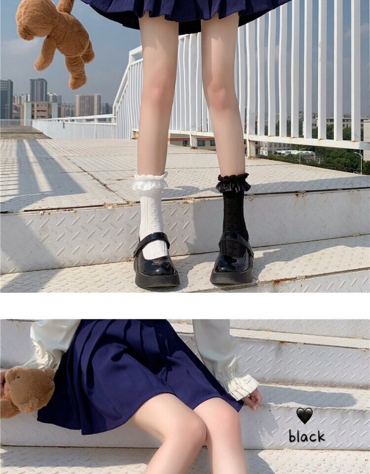 レースソックス ブラックサマー薄手 大人ガーリー スウィート キュート カジュアル 夏物 タイツ ストッキング 萌量不足15014199032