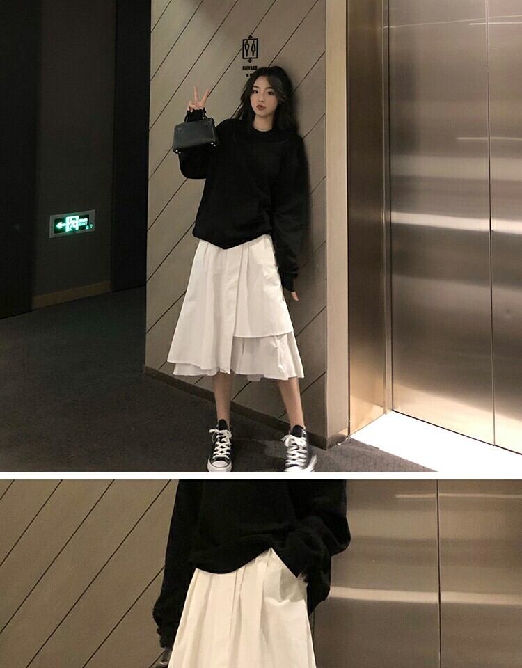 ストレッチハイウェストウェストAラインスカート ソリッド カラーサマー エラスティック 伸縮 夏物 ソリッドカラー 萌量不足56892300156