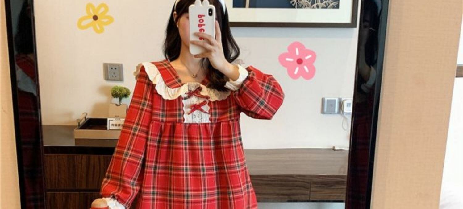 レッド格子柄レディーススプリングカラーレース 大人ガーリー スウィート キュート カジュアル 春物 萌量不足55496664545