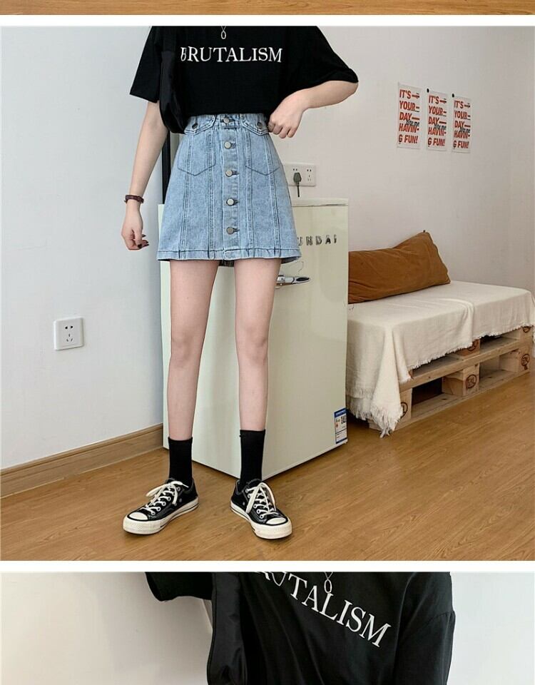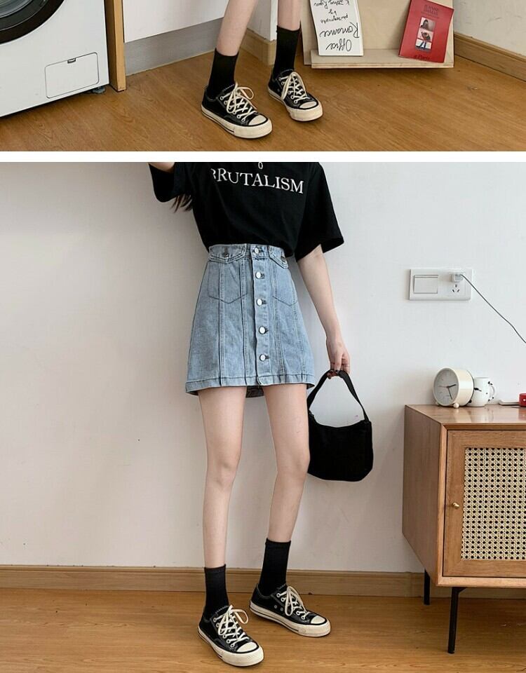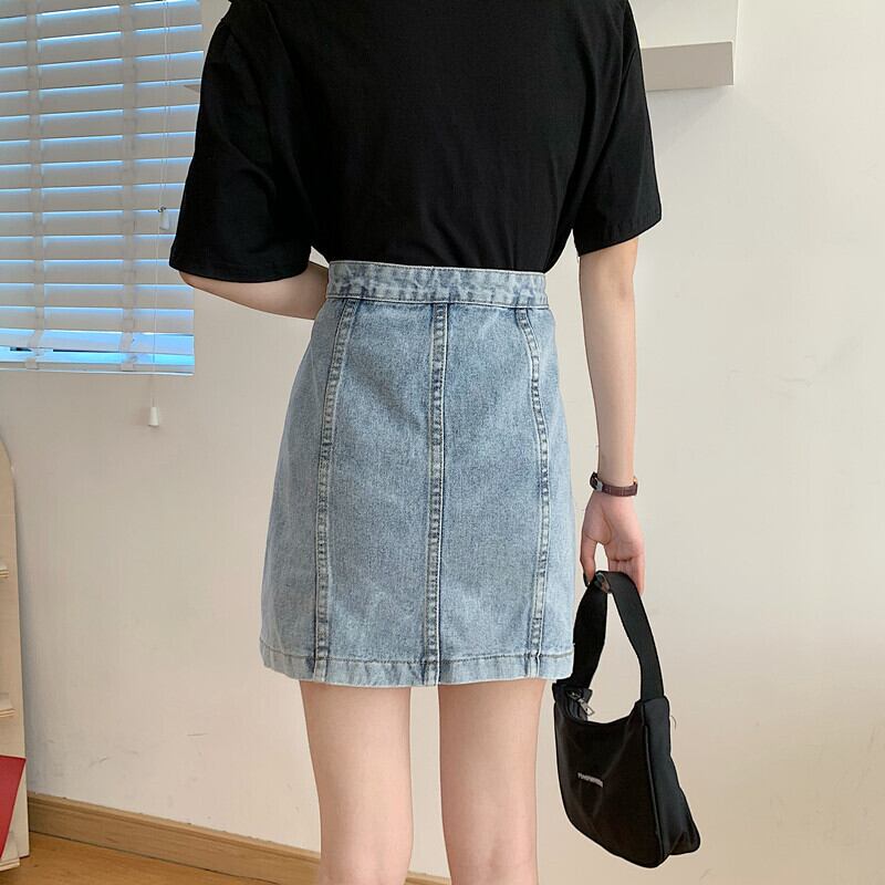 スタンダードスカート サマーAラインハイウェストウェスト薄手 レトロ 夏物 萌量不足16611279912