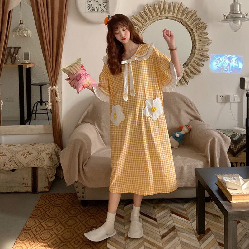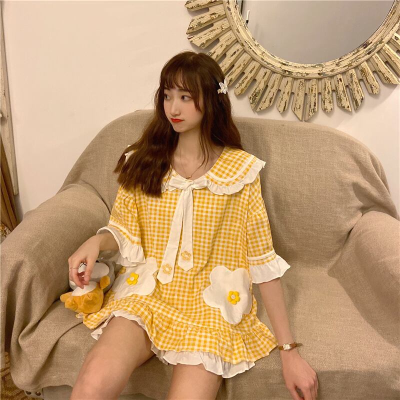 格子柄ルーズレディースサマー薄手 大人ガーリー スウィート キュート カジュアル 夏物 萌量不足52250197482