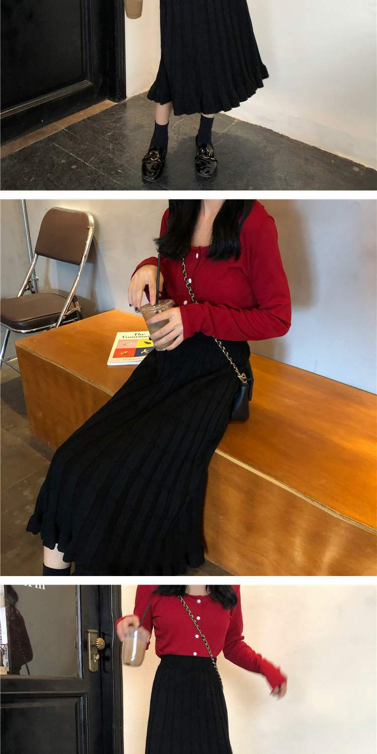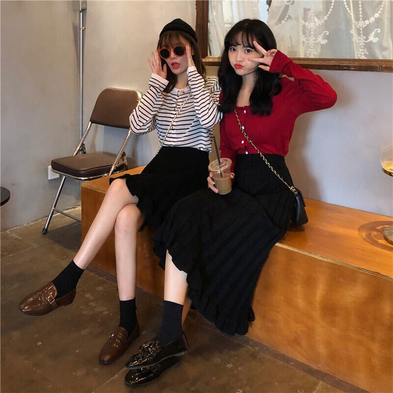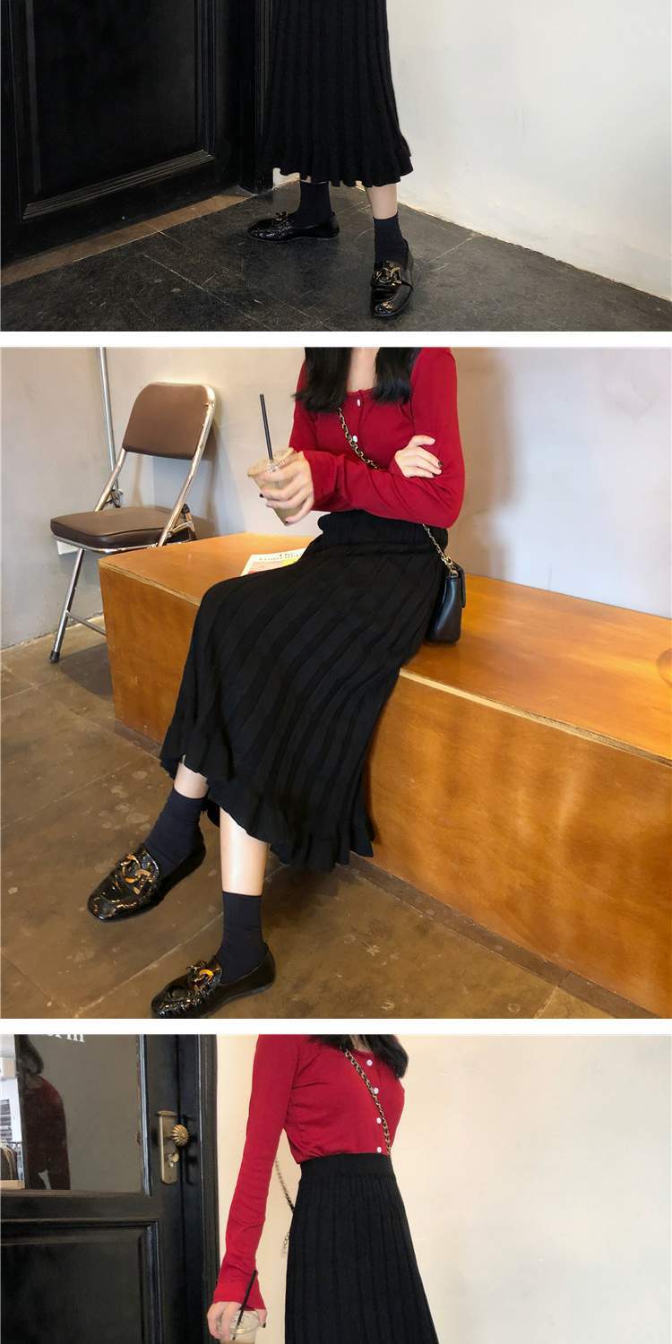 ハイウェストウェストAラインスカート スプリングニット 春物 萌量不足87490554768
