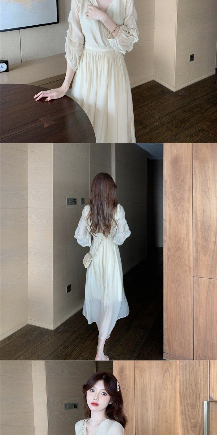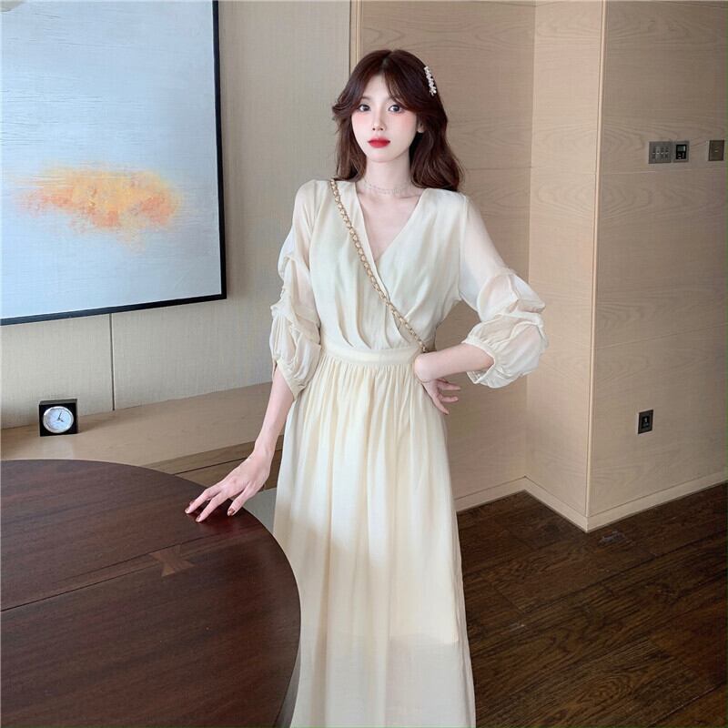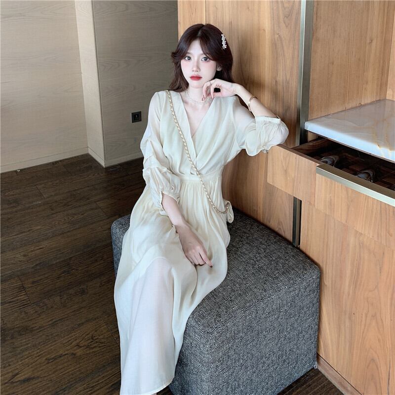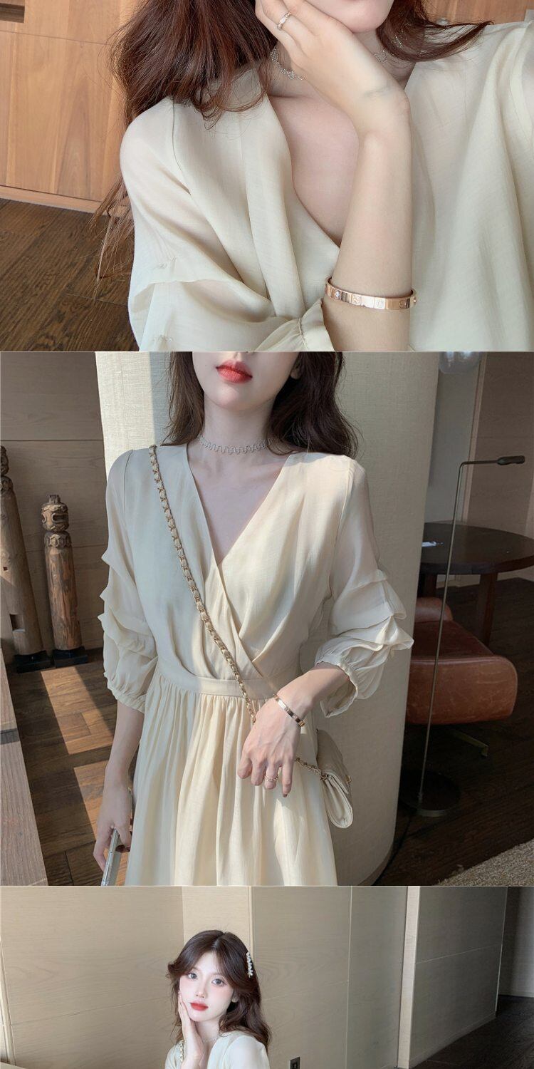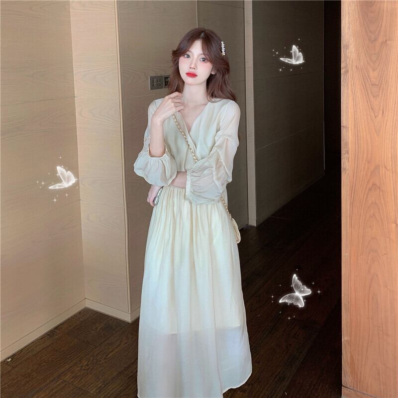 ドレス スプリングVネック薄手スカート 春物 萌量不足70723619422