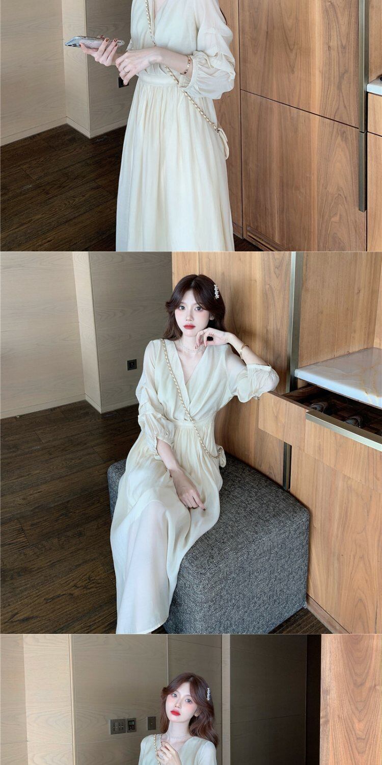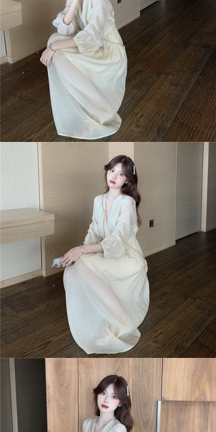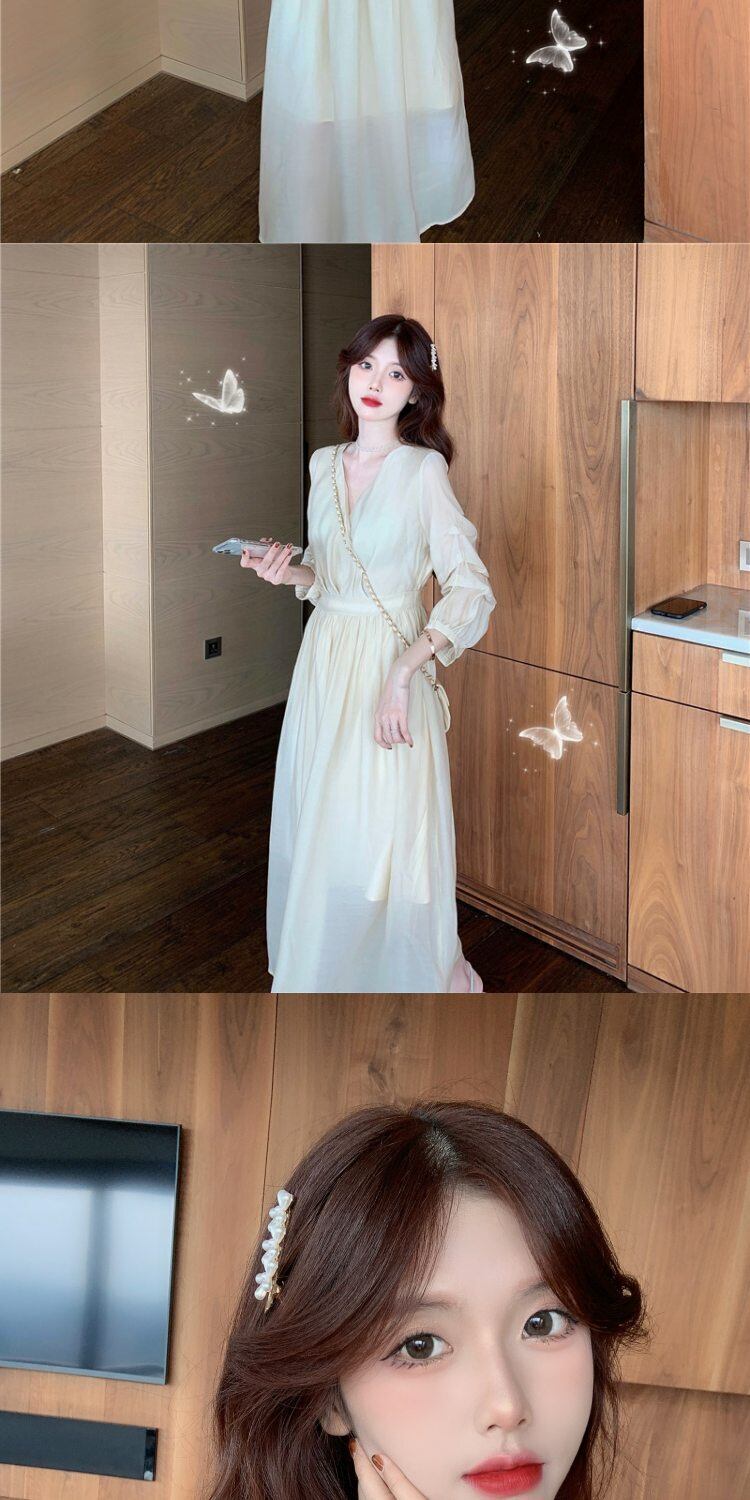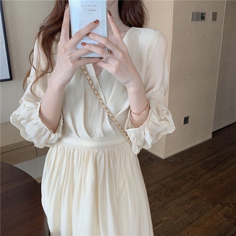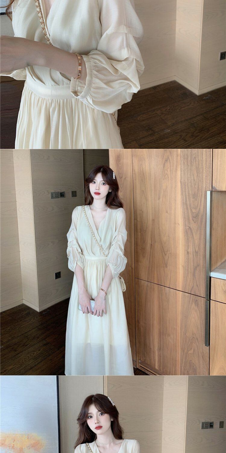 ドレス スプリングVネック薄手スカート 春物 萌量不足70723619422