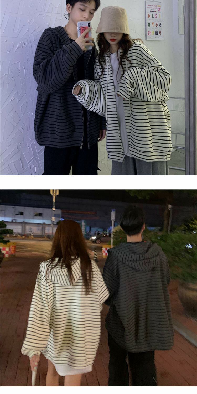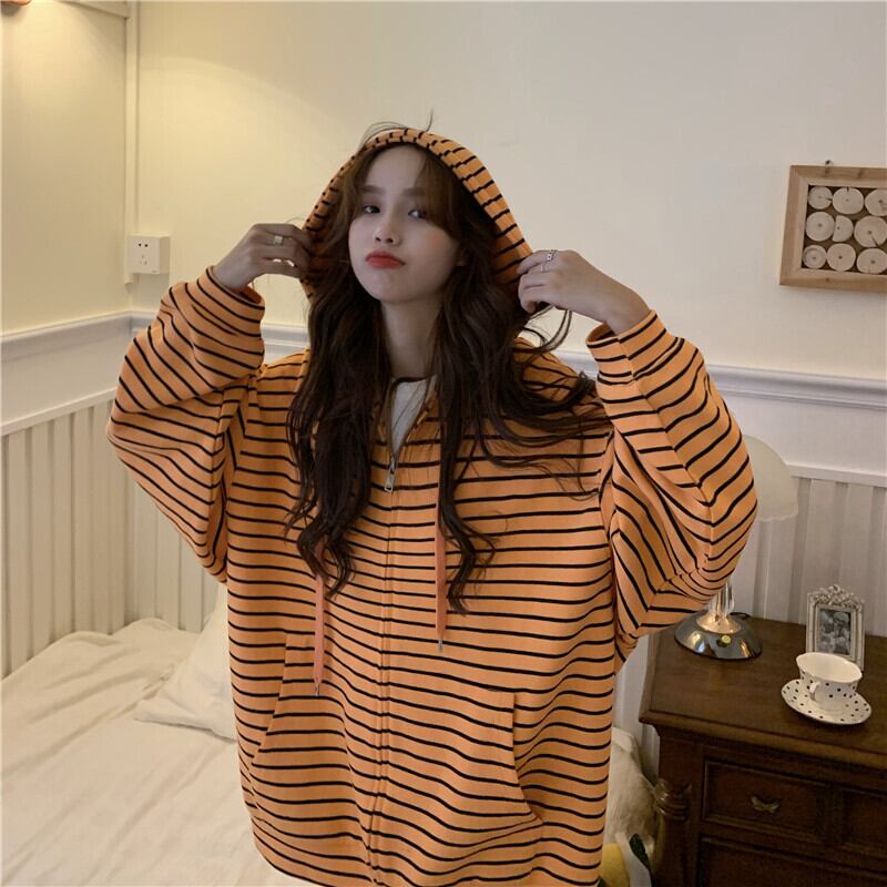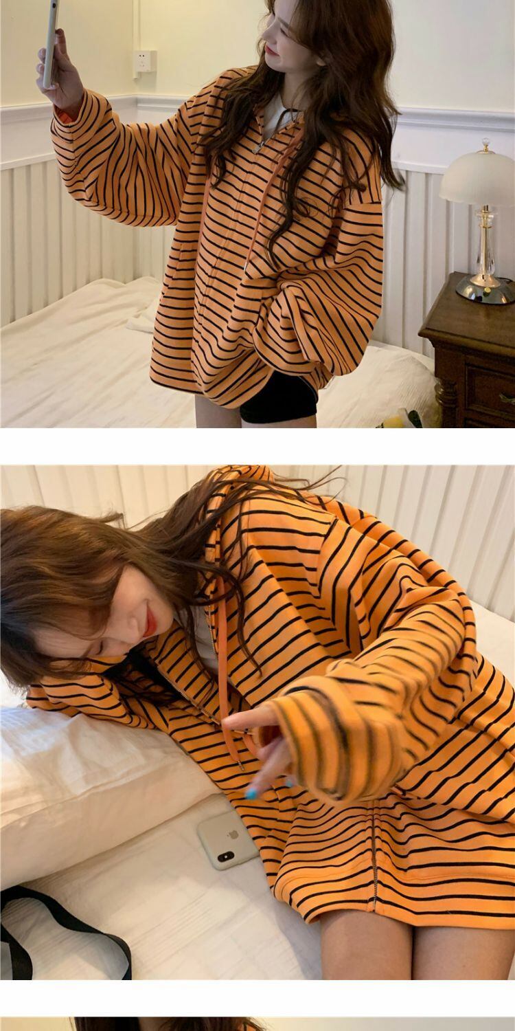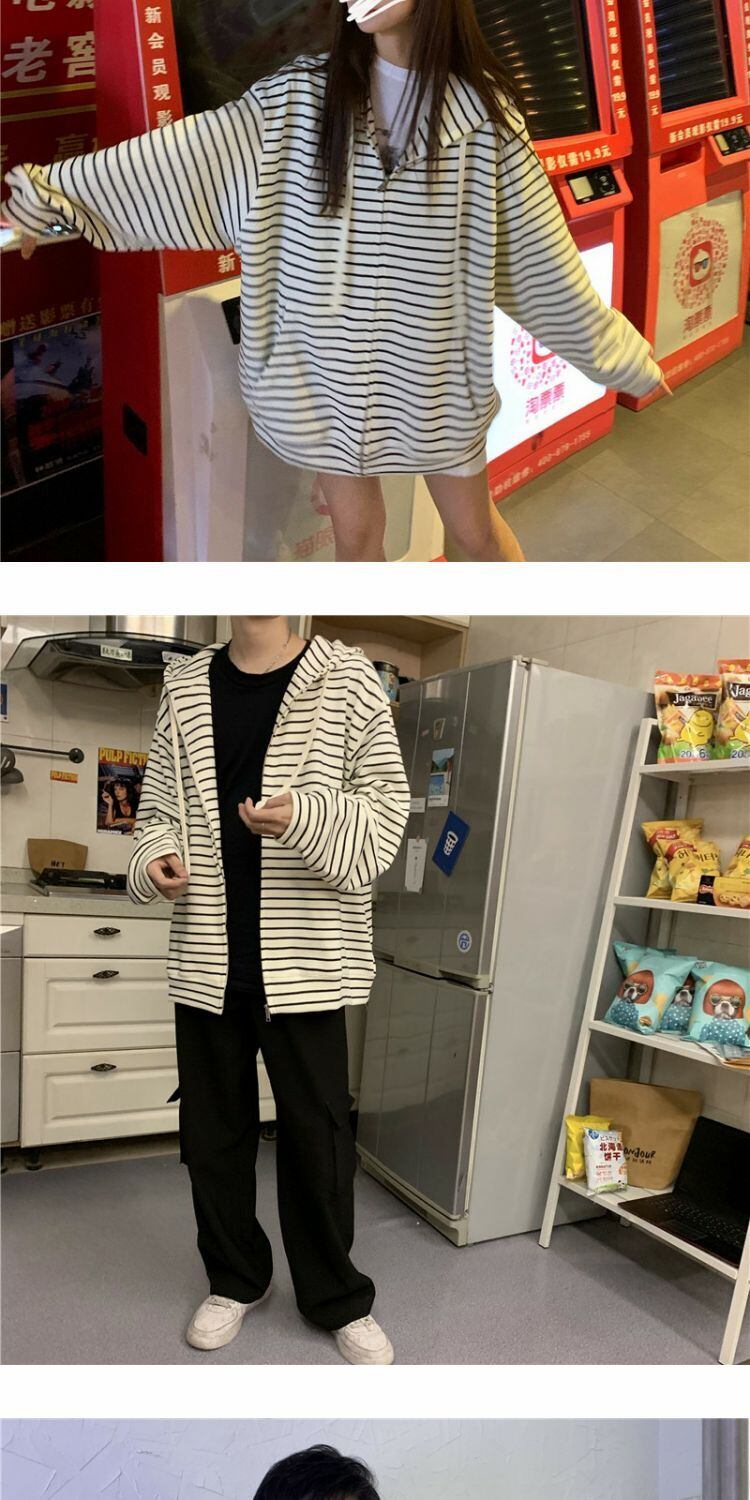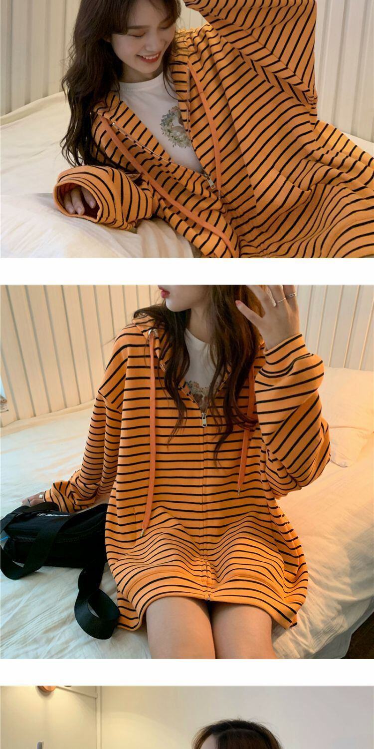 スタイルフードストライプカーディガンジャケット レディーススプリングルーズブラウス 春物 萌量不足52539498939