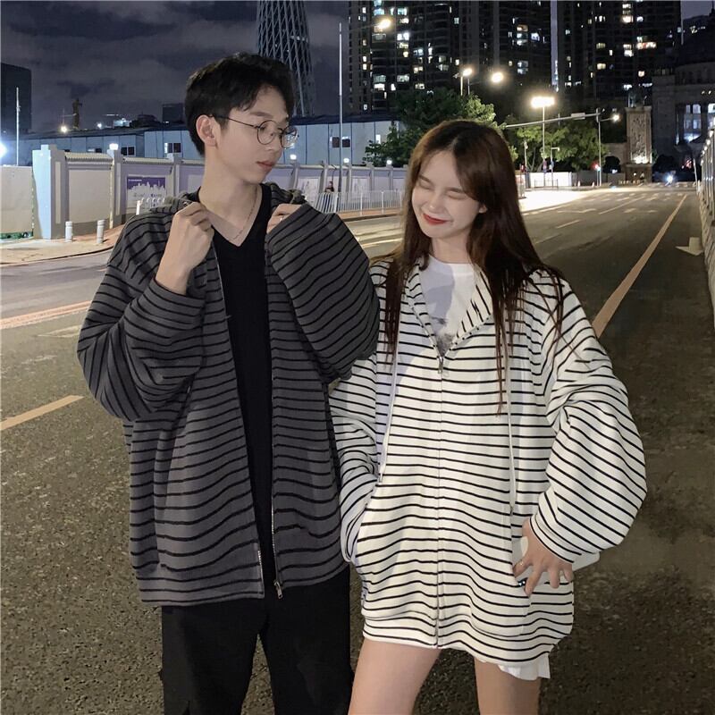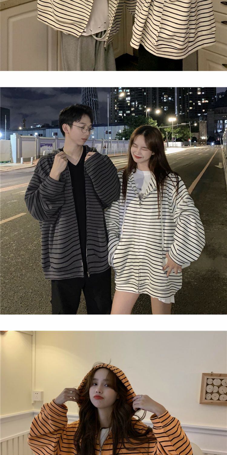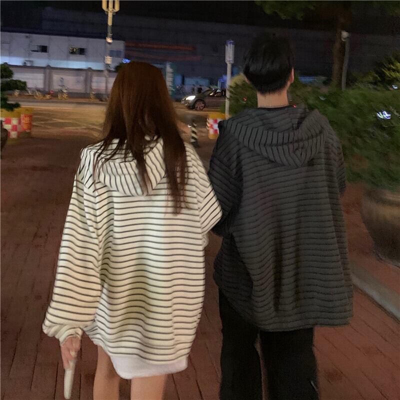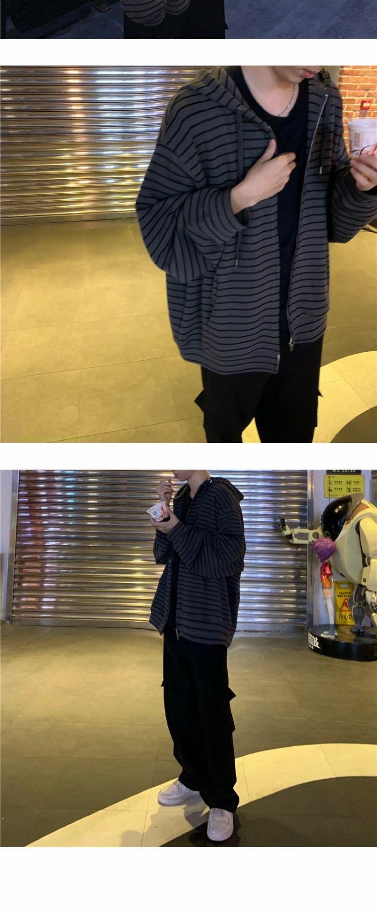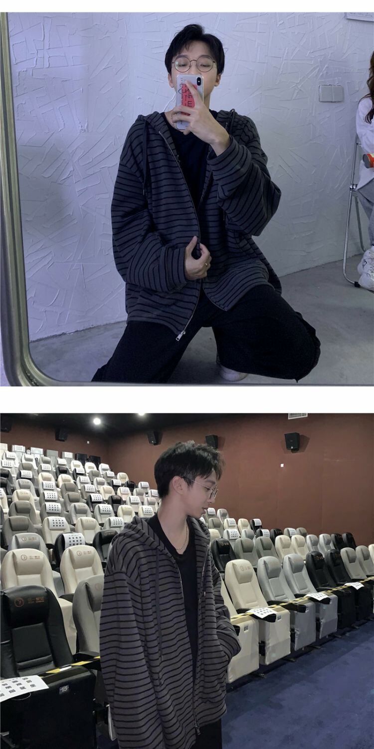 スタイルフードストライプカーディガンジャケット レディーススプリングルーズブラウス 春物 萌量不足52539498939