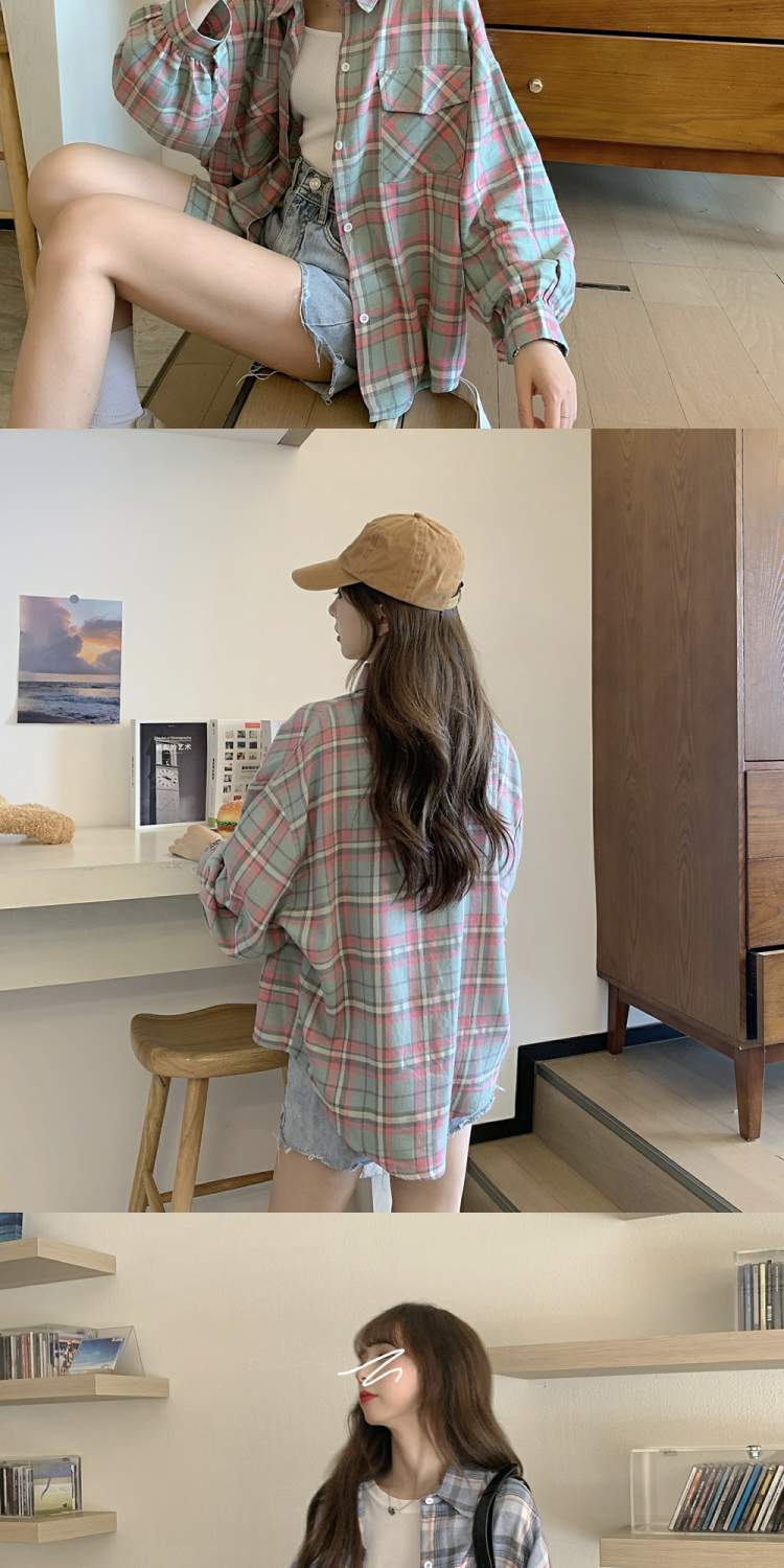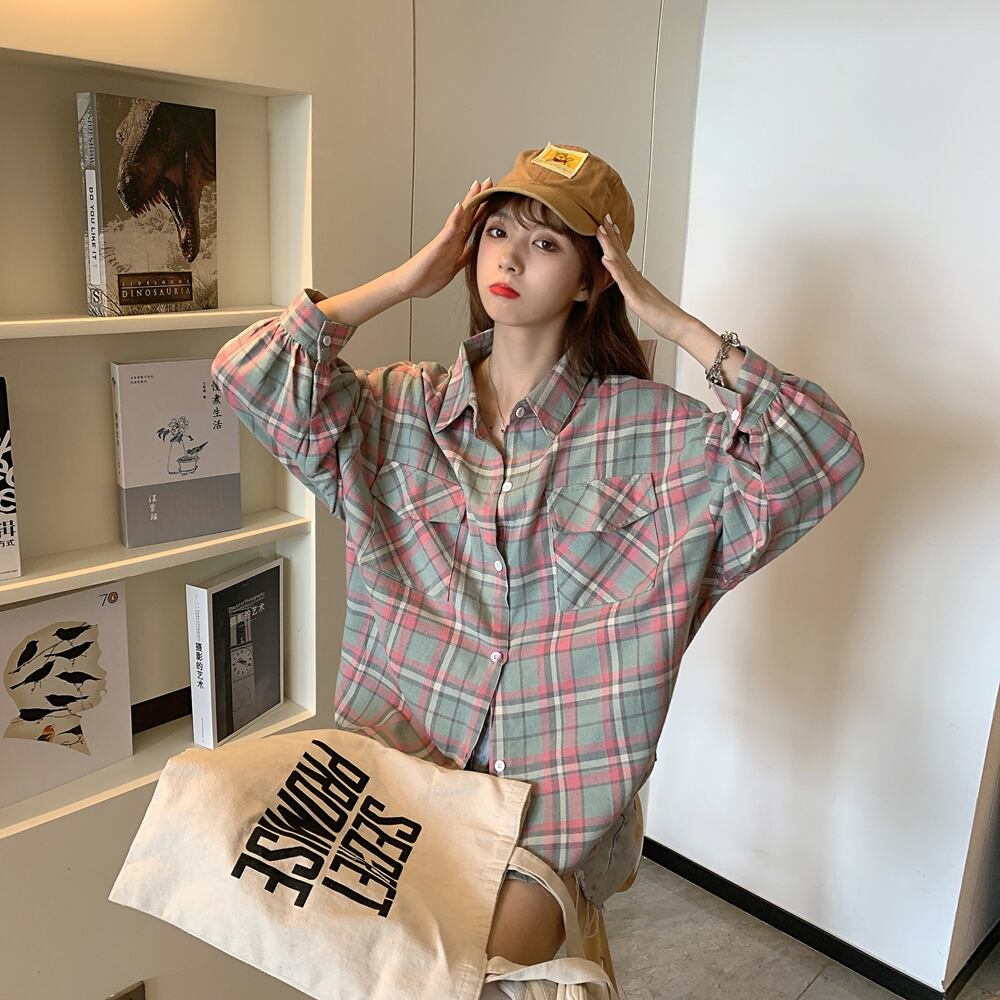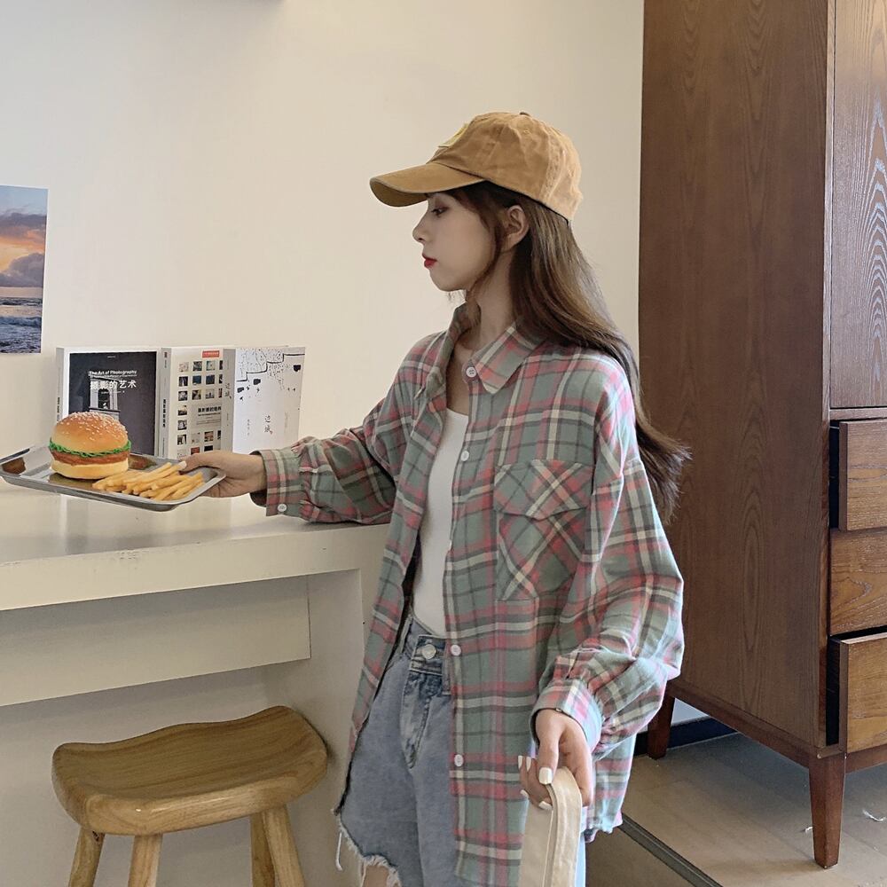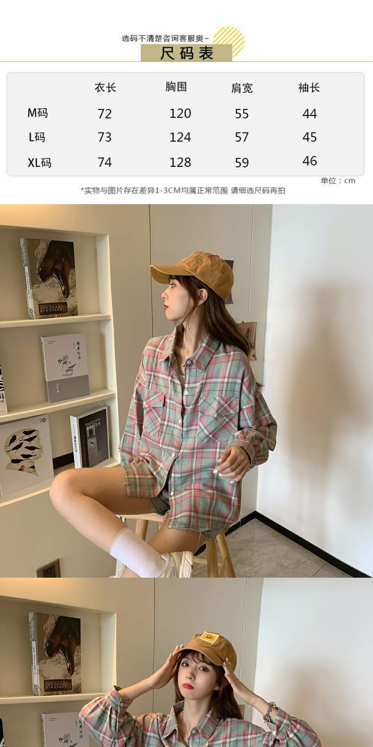 格子柄シャツ スプリング薄手スタンダードスタイルジャケット ルーズブラウス レトロ 春物 萌量不足357889633