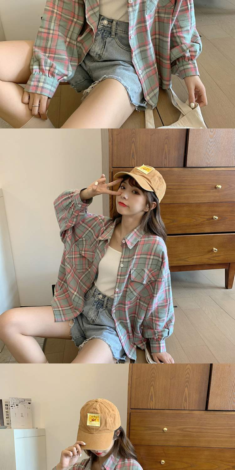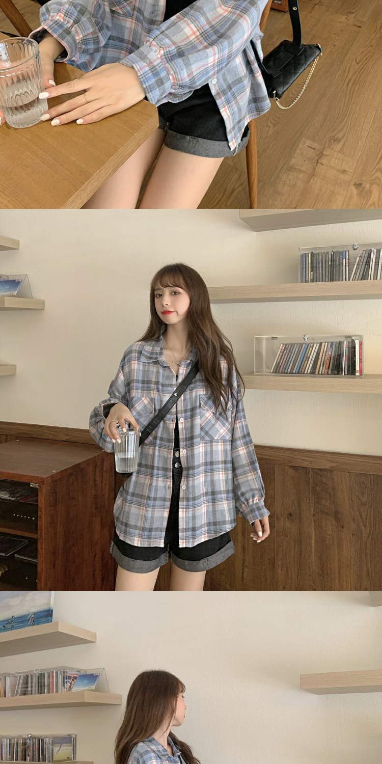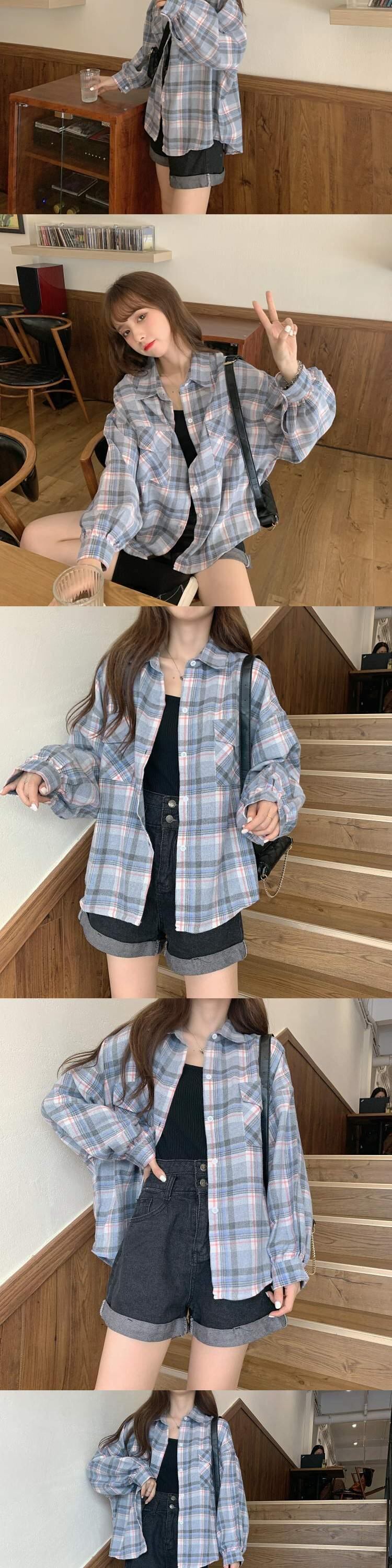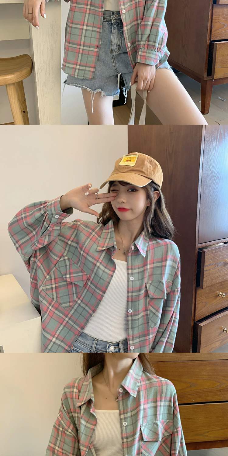 格子柄シャツ スプリング薄手スタンダードスタイルジャケット ルーズブラウス レトロ 春物 萌量不足357889633