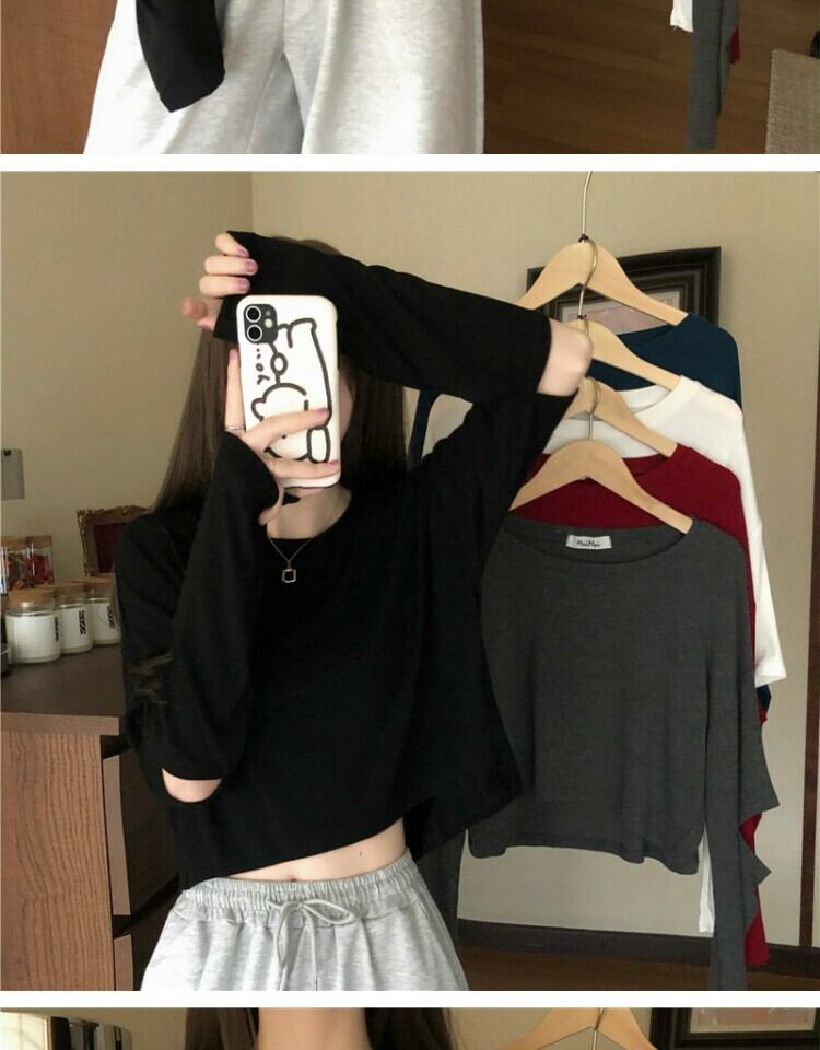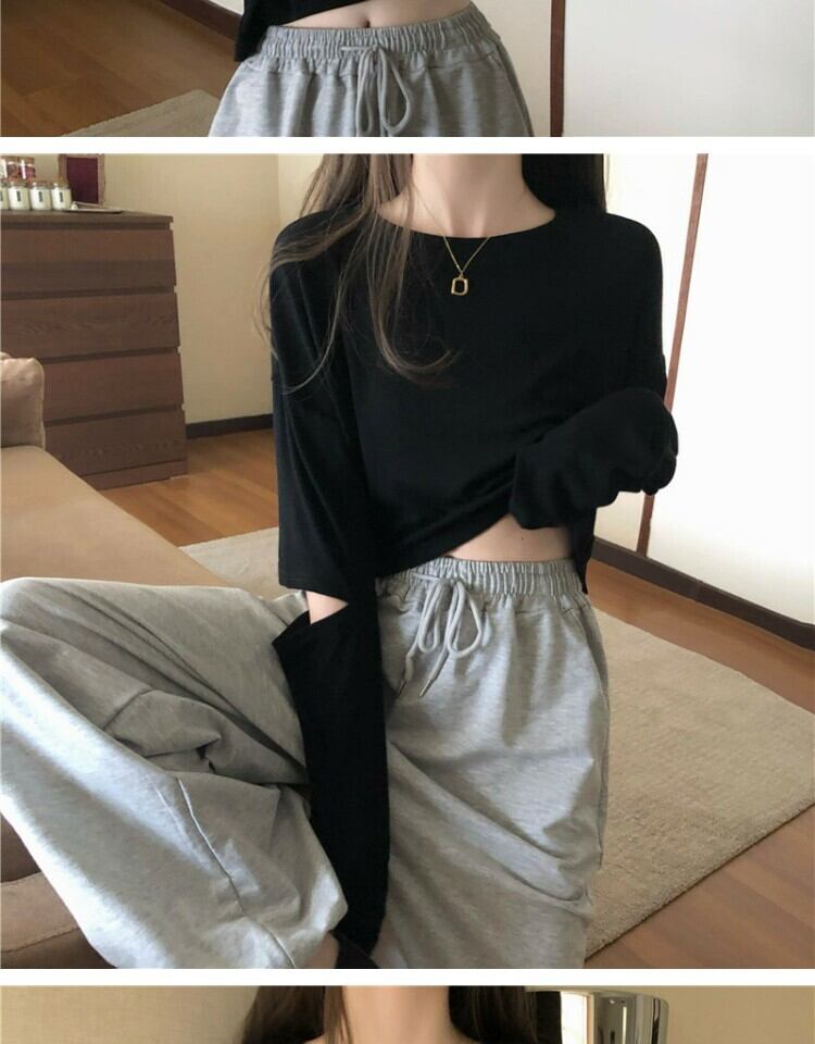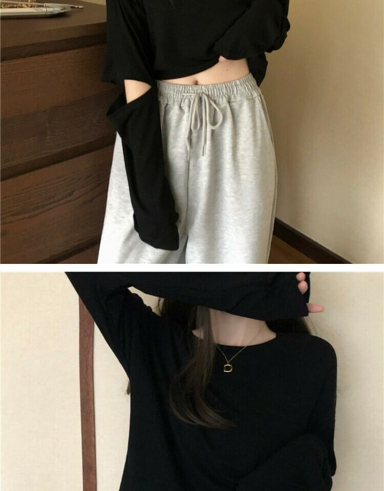 ブラック ロング ブラウス スプリング 春物 Tシャツ 萌量不足86512072416