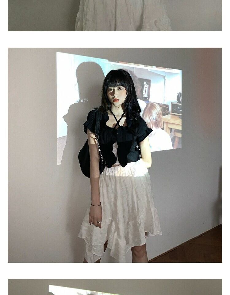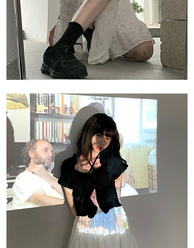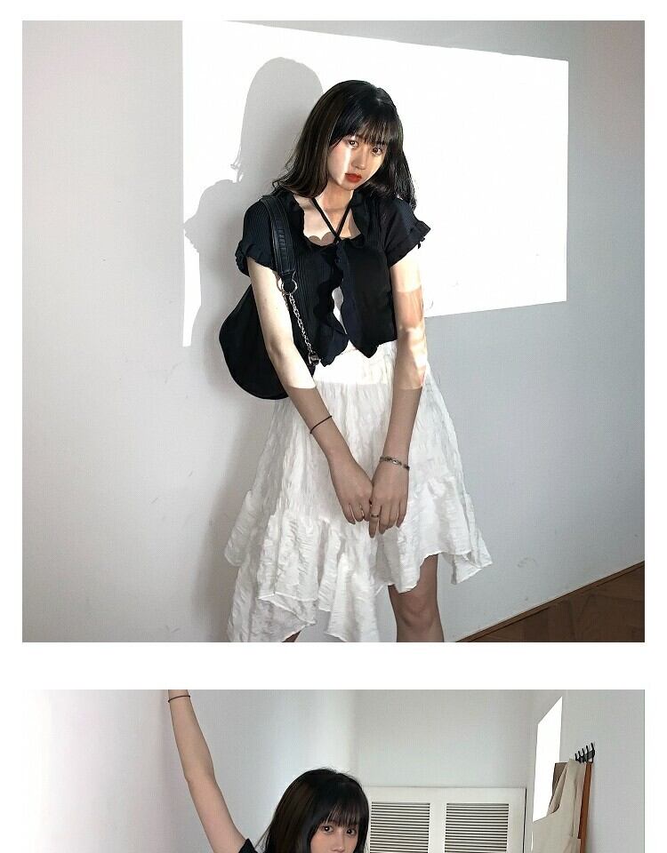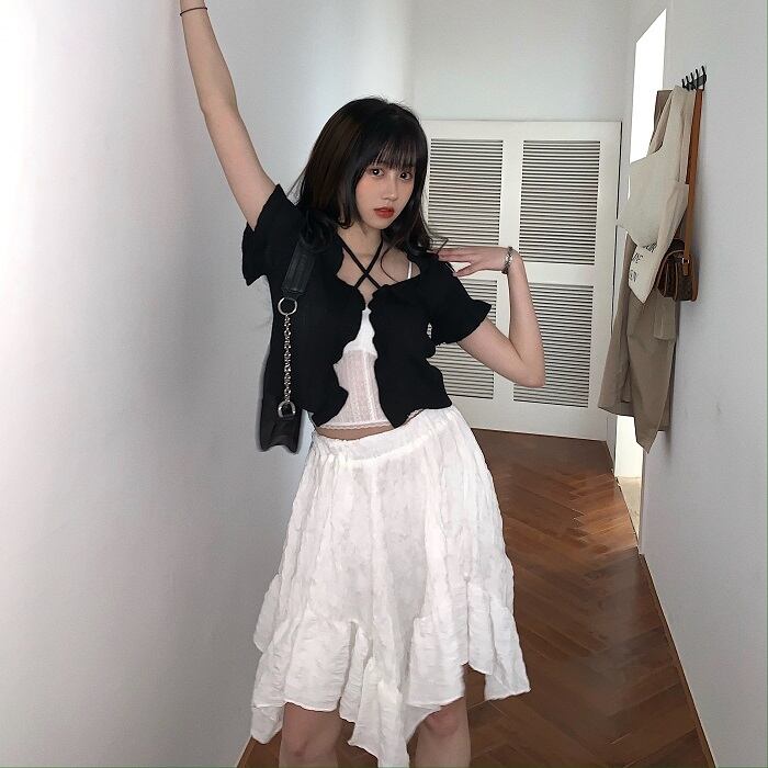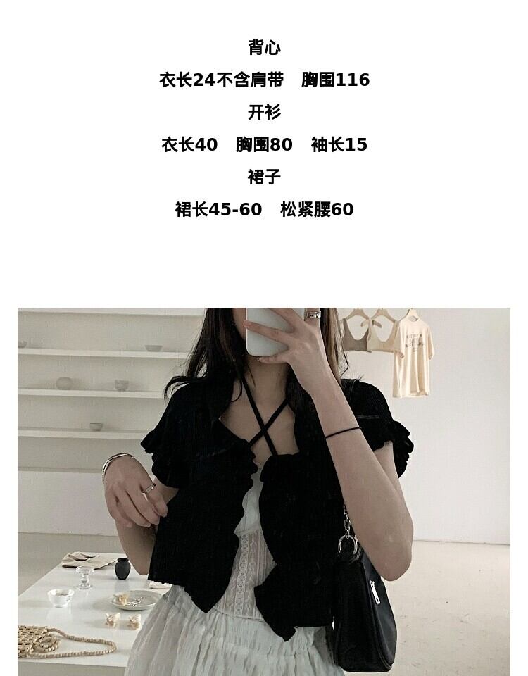 色:ブラックニットセーターワンピース,レースキャミソール一枚,ホワイトバブルスカートシングル