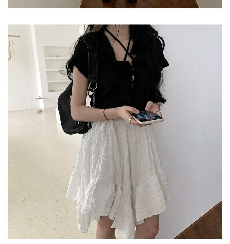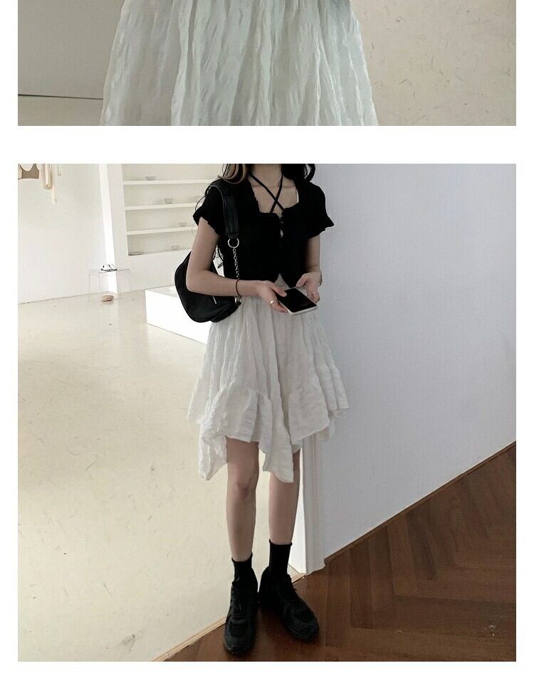 ホワイトスカート サマーハイウェストウェストAラインショート 大人ガーリー スウィート キュート カジュアル 夏物 萌量不足47265760332