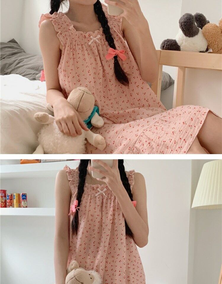 ノースリーブレディースサマープリント柄薄手 レッド 大人ガーリー スウィート キュート カジュアル 夏物 萌量不足47207917278