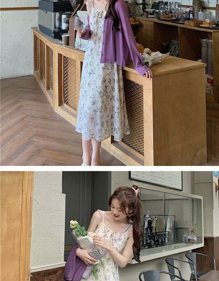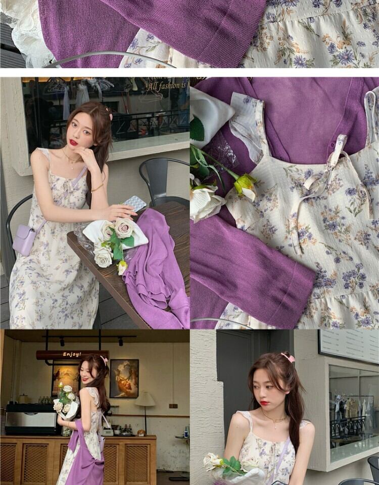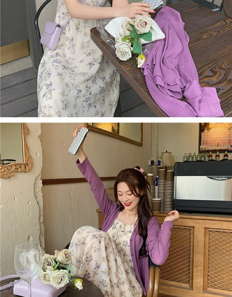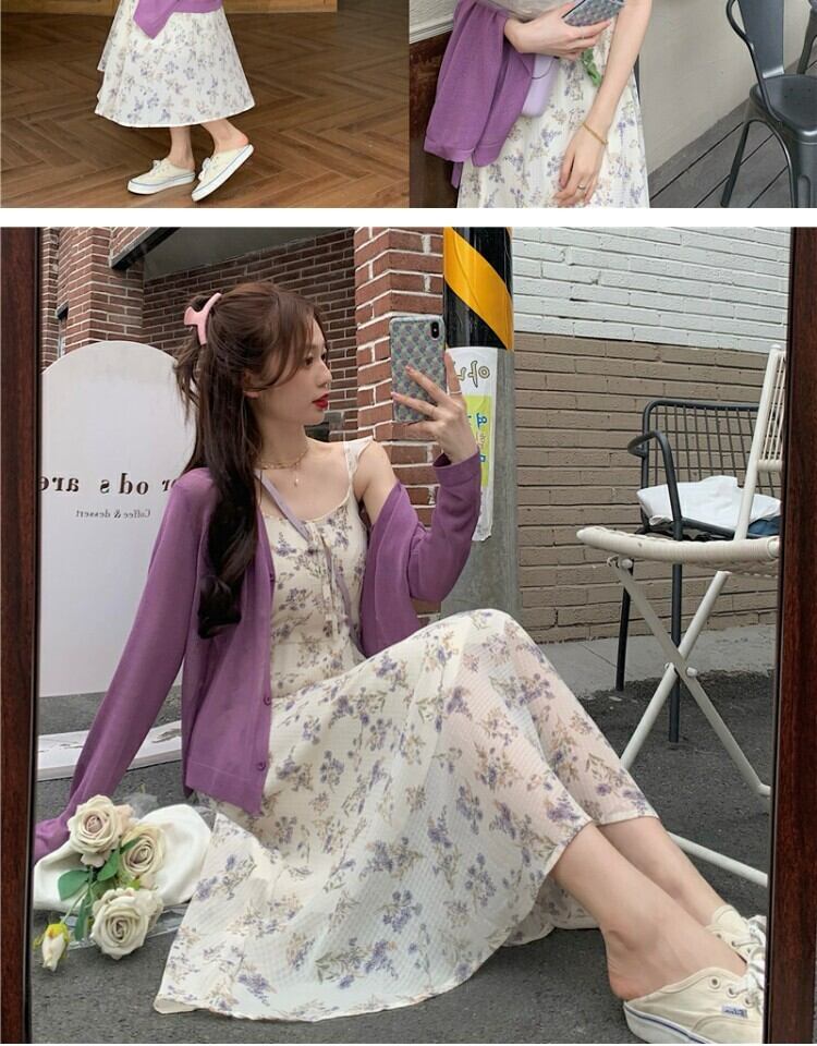 色:パープルカーディガンワンピース,フローラルキャミソールワンピース