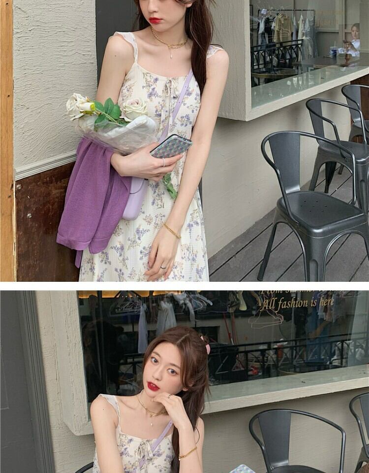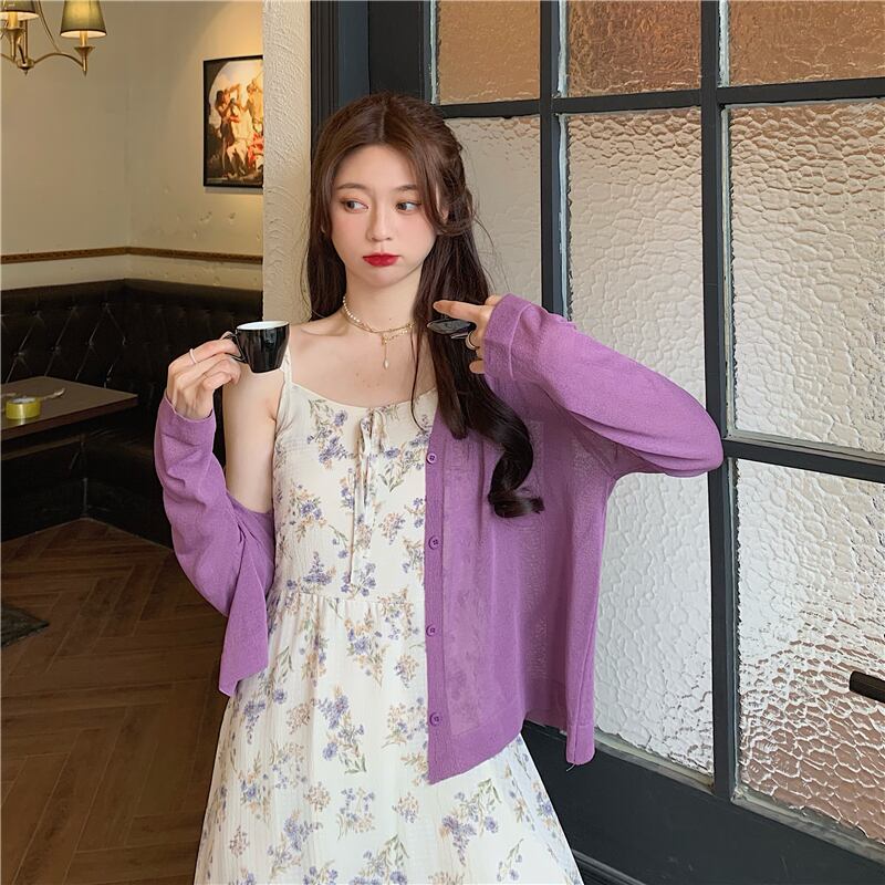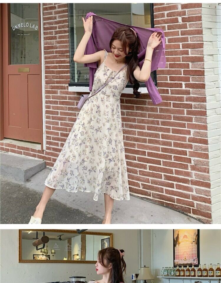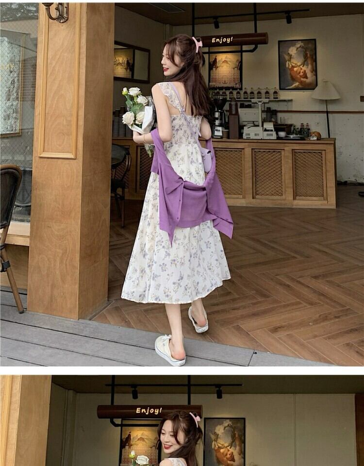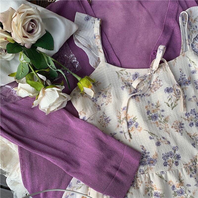 色:パープルカーディガンワンピース,フローラルキャミソールワンピース