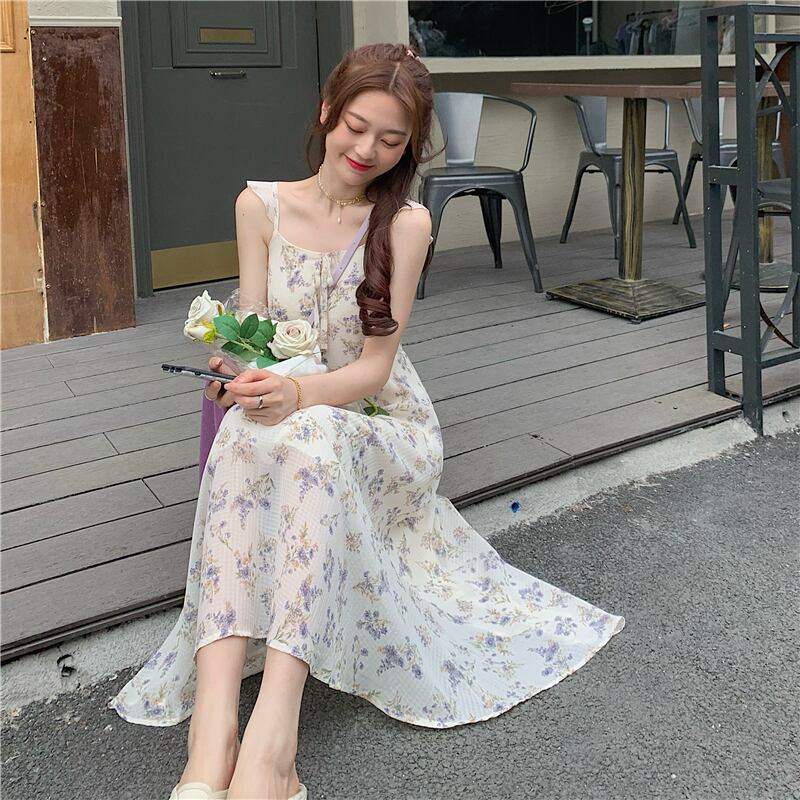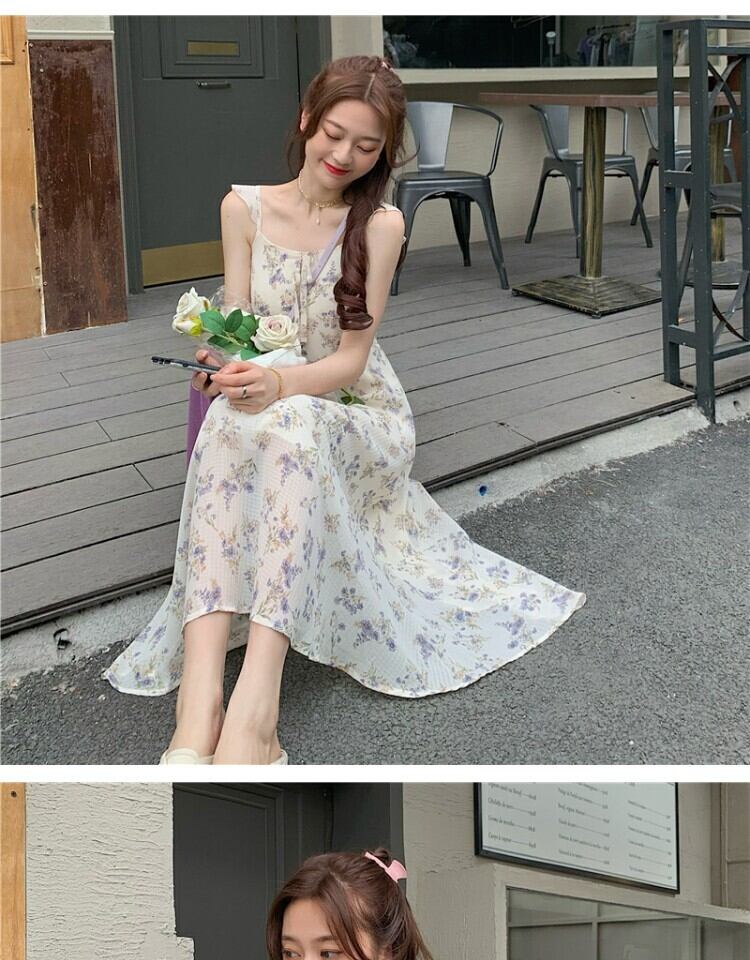 フローラルシフォンスカート スリムドレス サマー 夏物 花柄 萌量不足92612326520