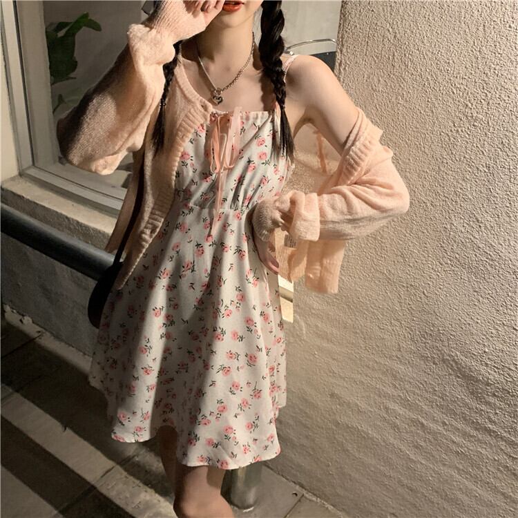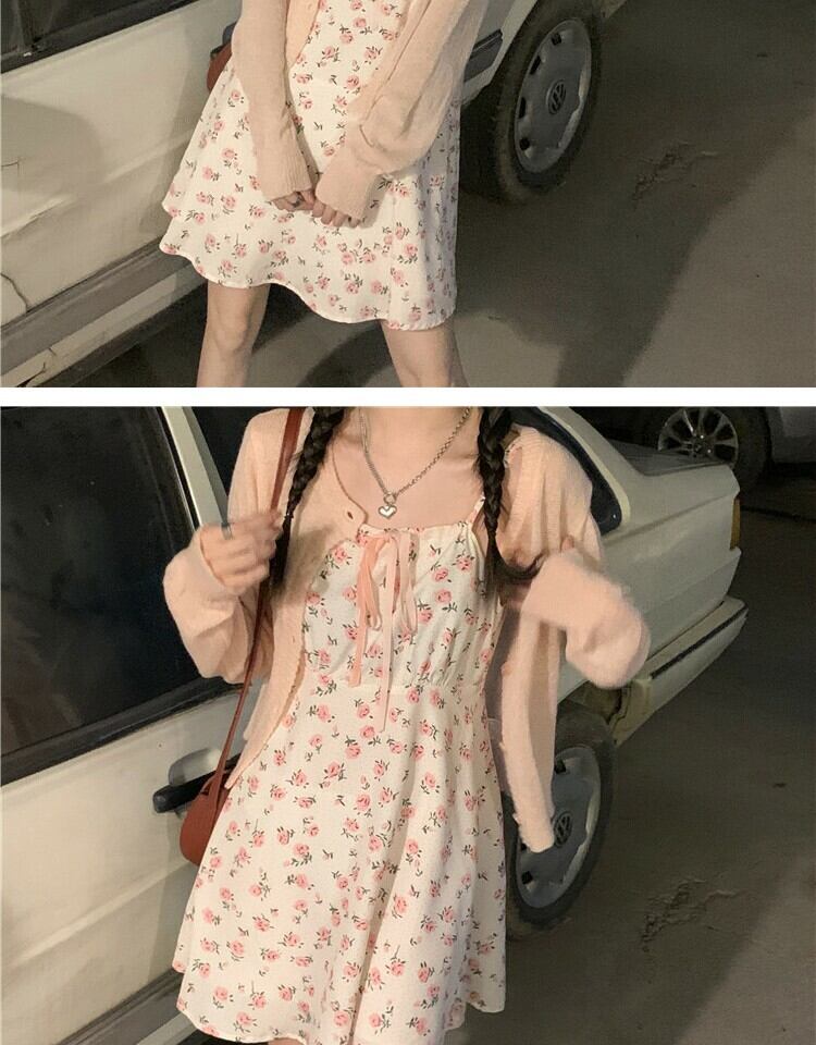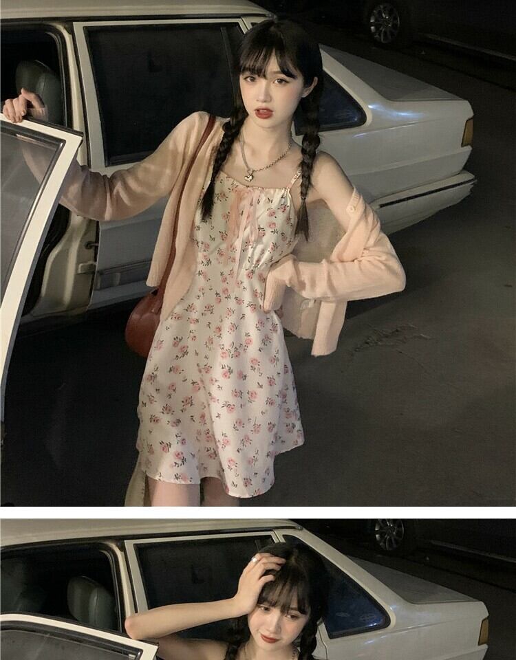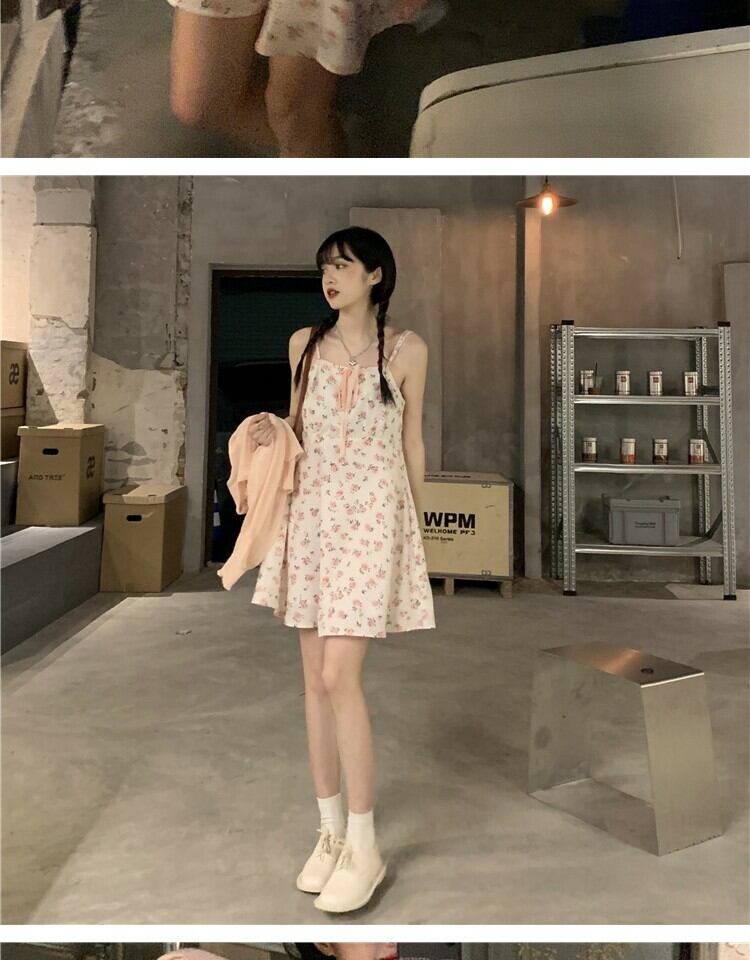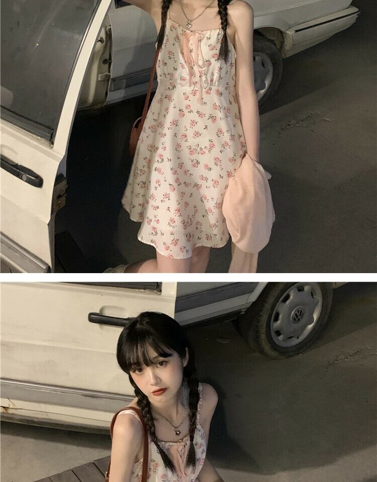 フローラルスカート ドレス サマーショートスタンダード レトロ 大人ガーリー スウィート キュート カジュアル 夏物 花柄 萌量不足11233390166