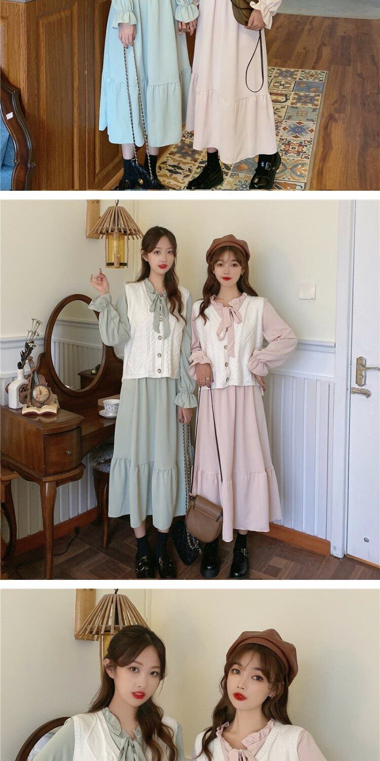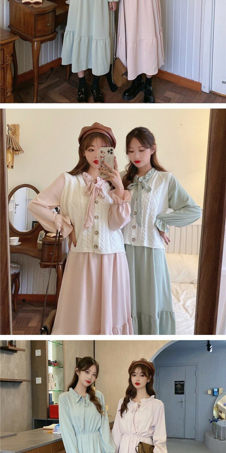 色:シングルピンクのドレス,薄緑のワンピース,アプリコットベストワンピース