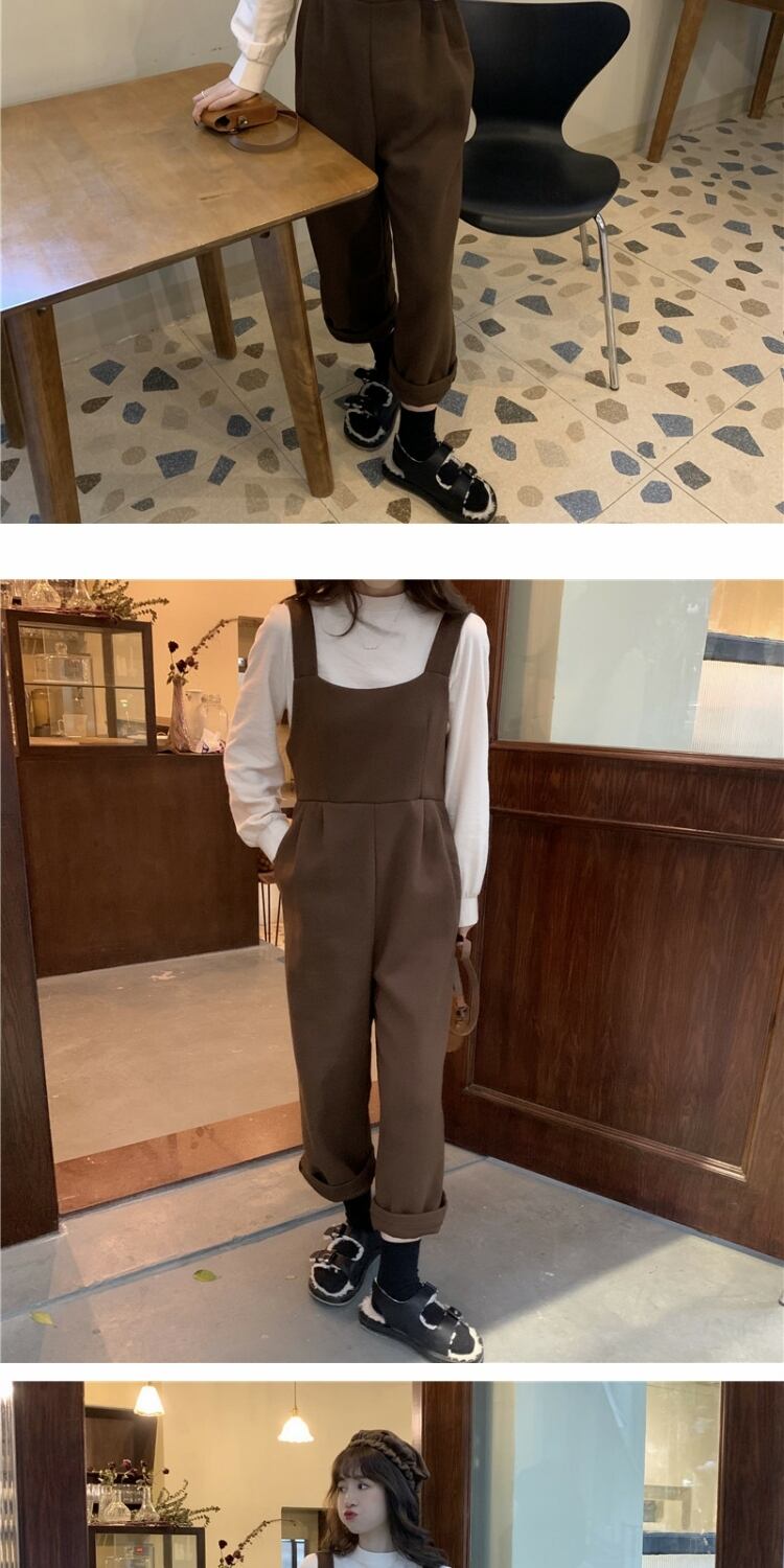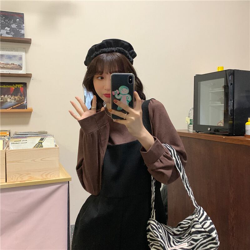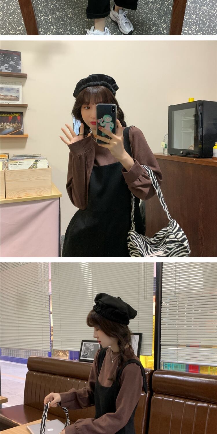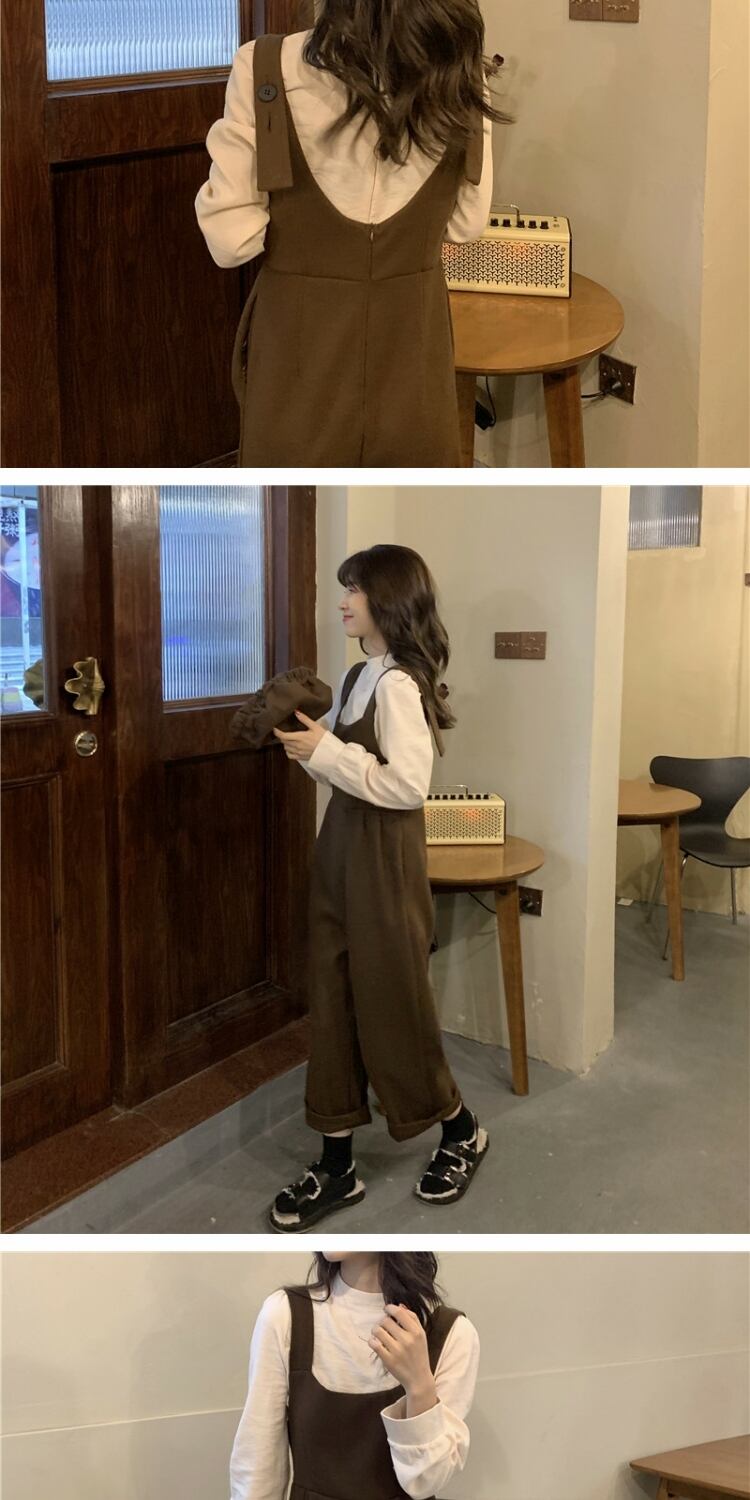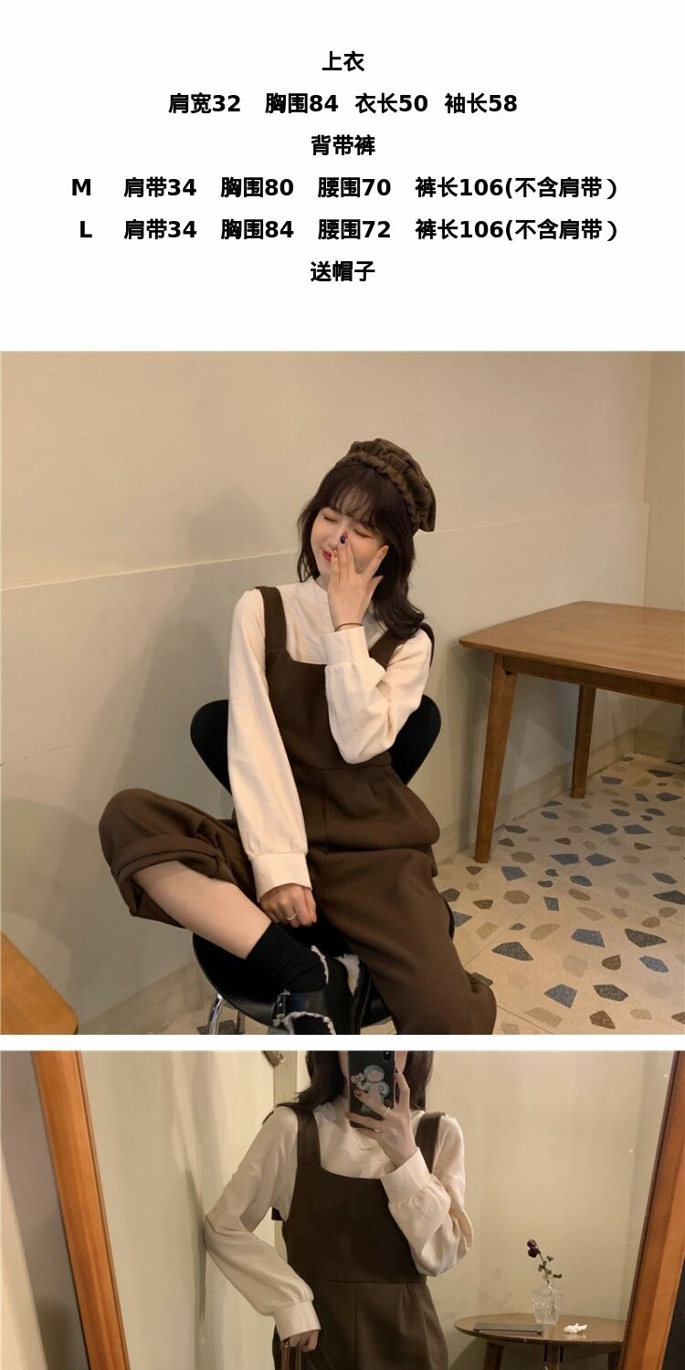 色:ワンピースアプリコットトップ,単色ブラウス,黒よだれかけシングルピース,茶色のオーバーオール1枚