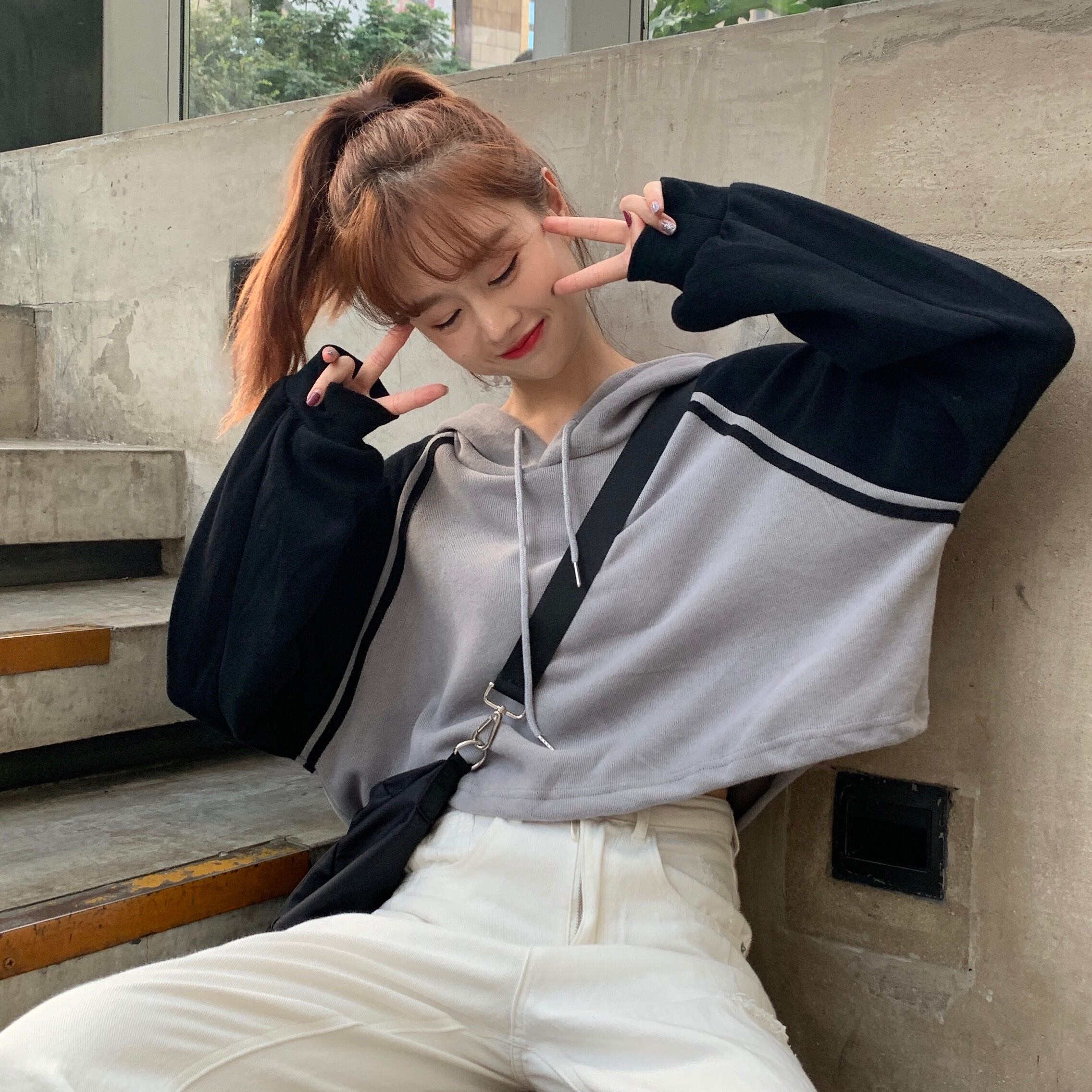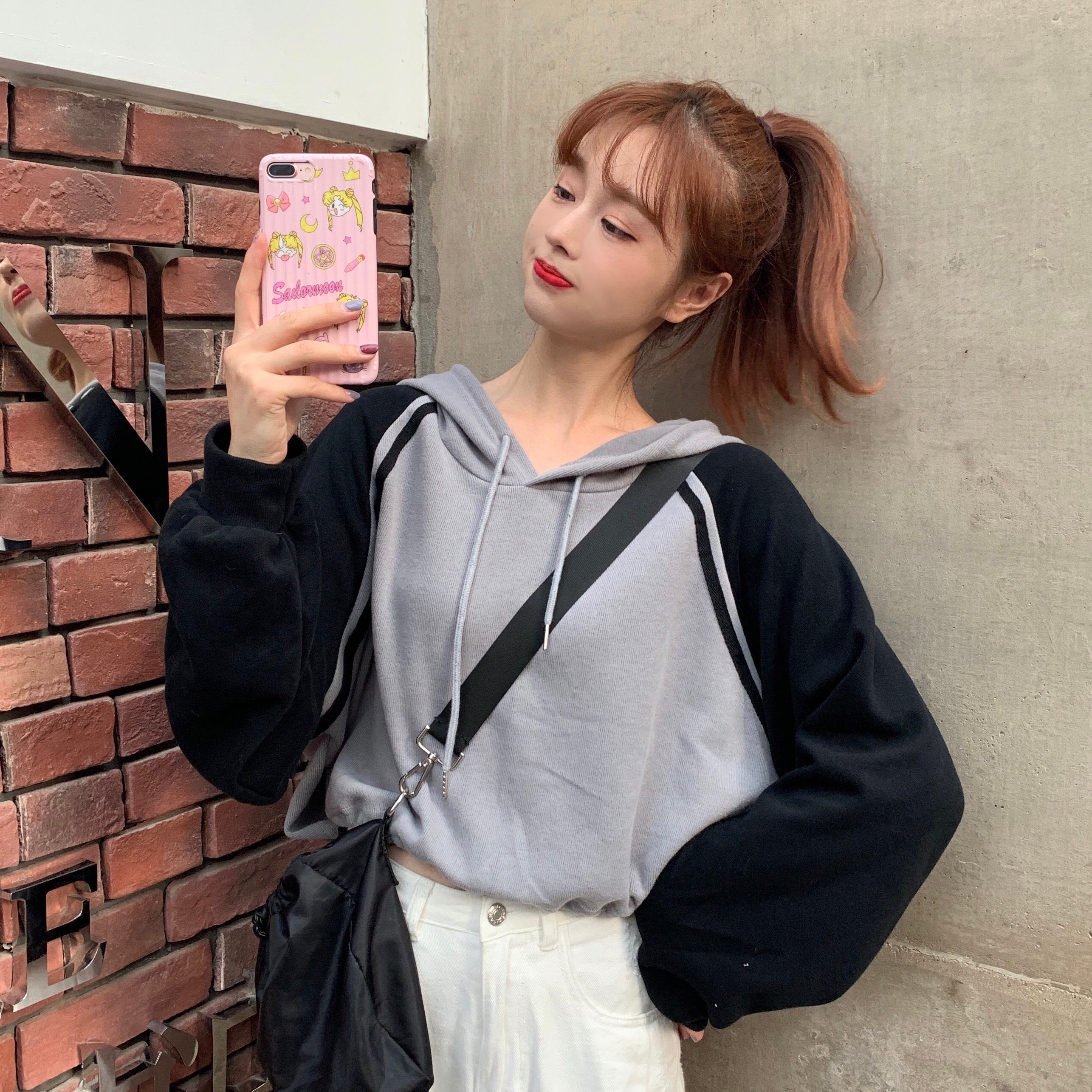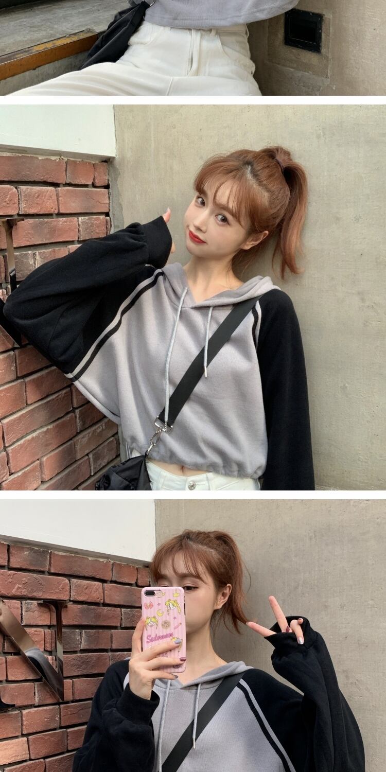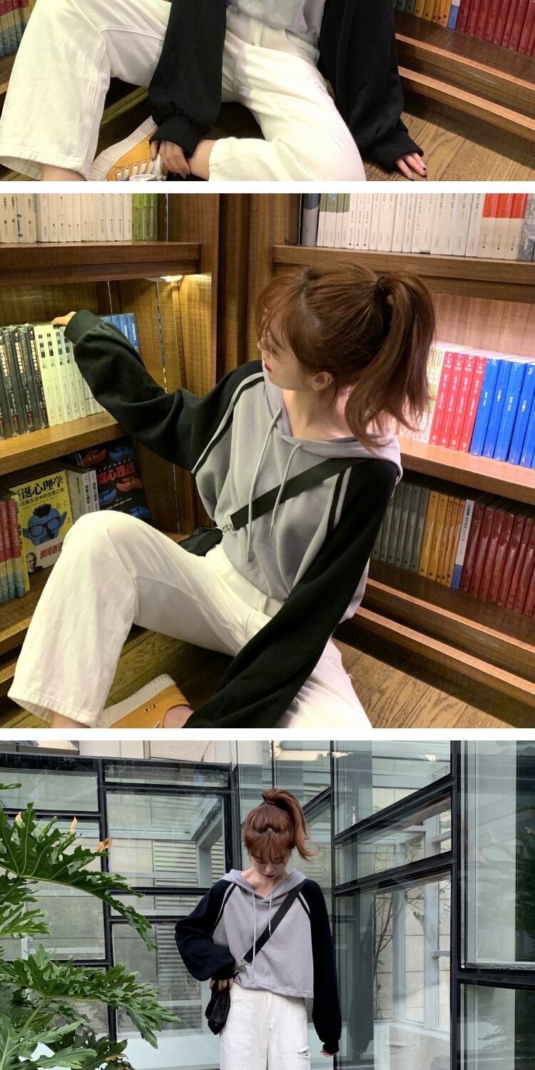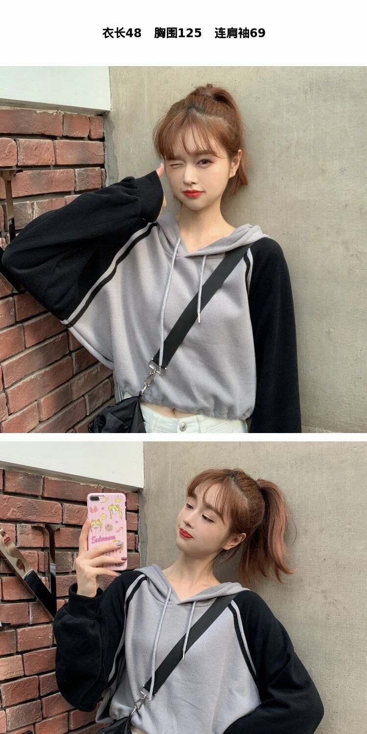 ブラウス スプリングルーズカラーショートフードセーター ロング 春物 萌量不足31089884719