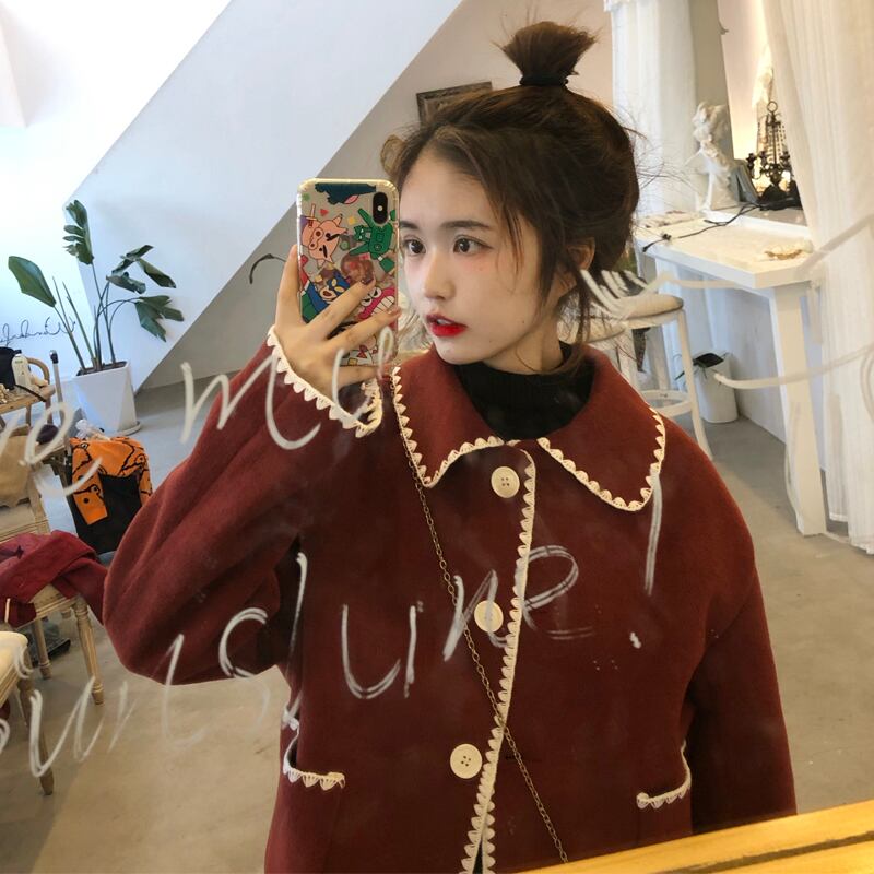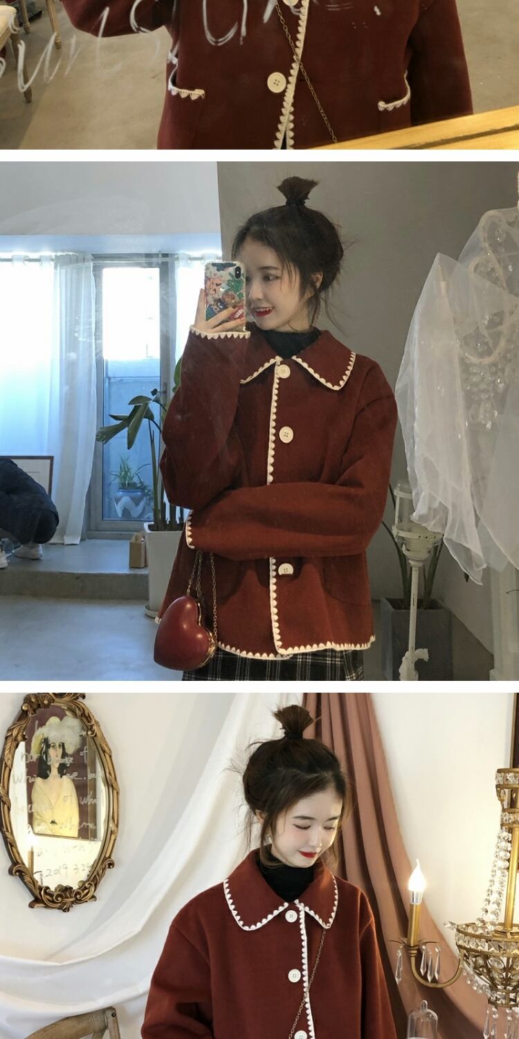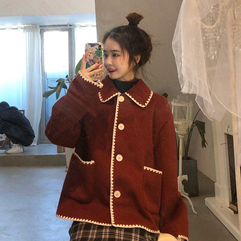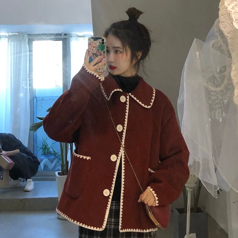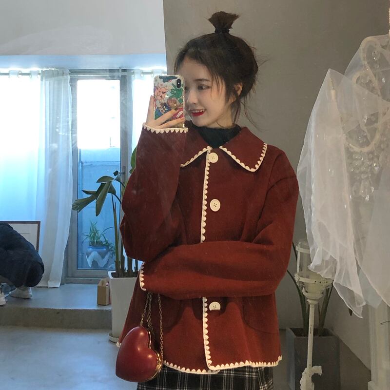 レッドカラーコート スプリングオータムルーズトップス 大人ガーリー スウィート キュート カジュアル 春物 秋物 萌量不足2175060289