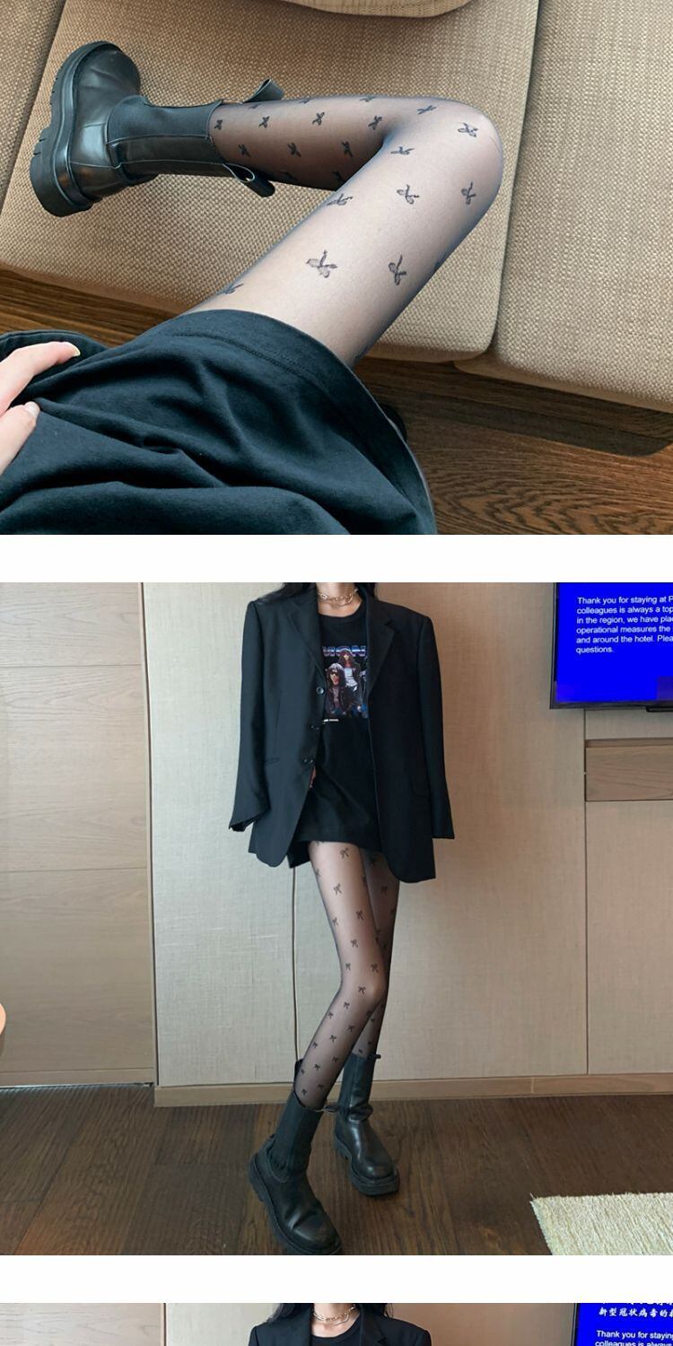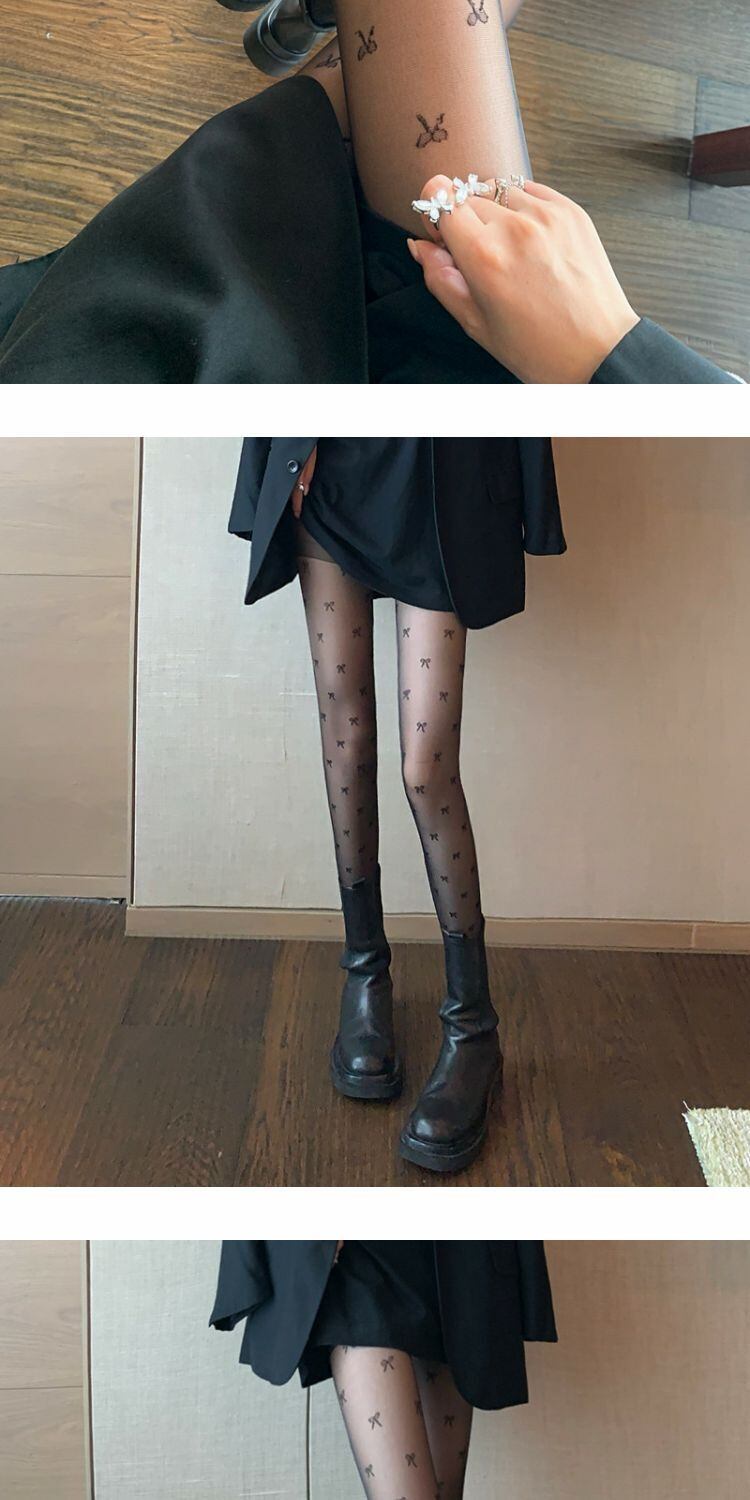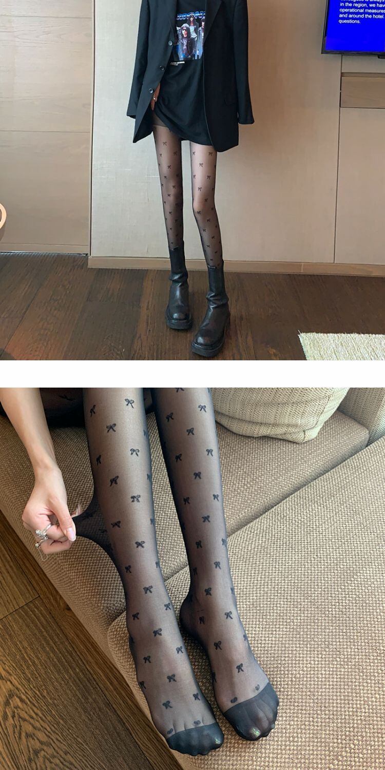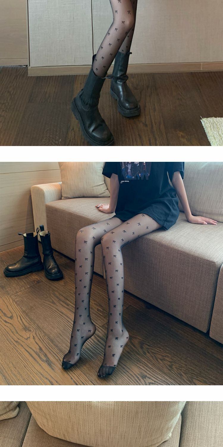 オータムウィンター薄手リボンストッキング ブラックワンピースソックス 大人ガーリー スウィート キュート カジュアル 秋物 冬物 タイツ 萌量不足31116036899
