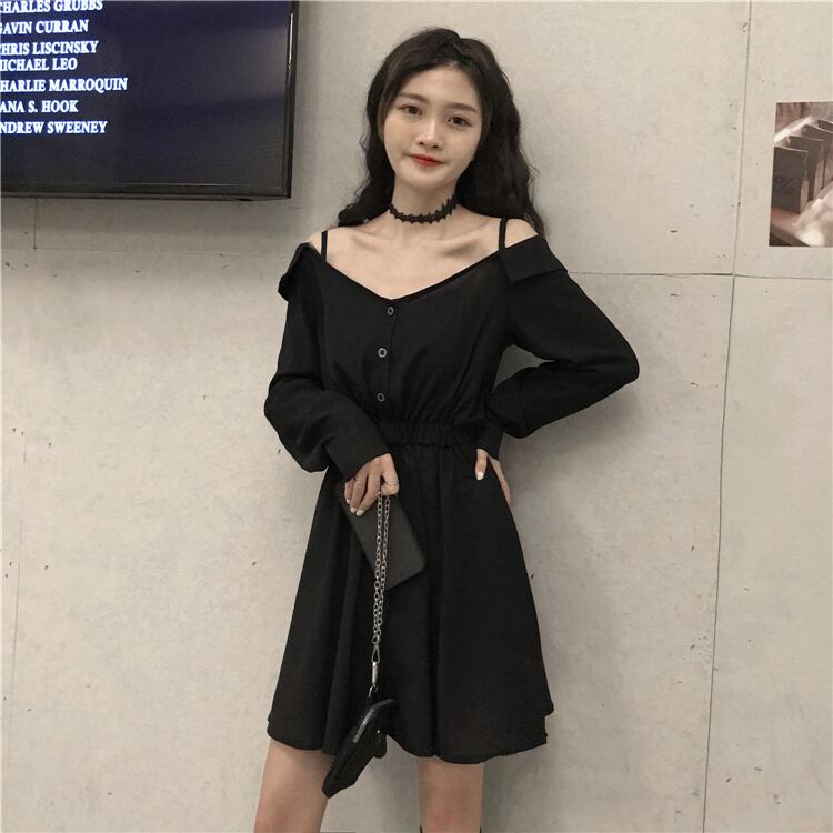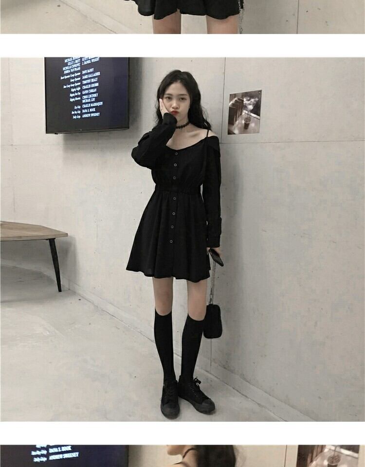 ドレス スプリングサテンブラックスカート 春物 萌量不足64993082272