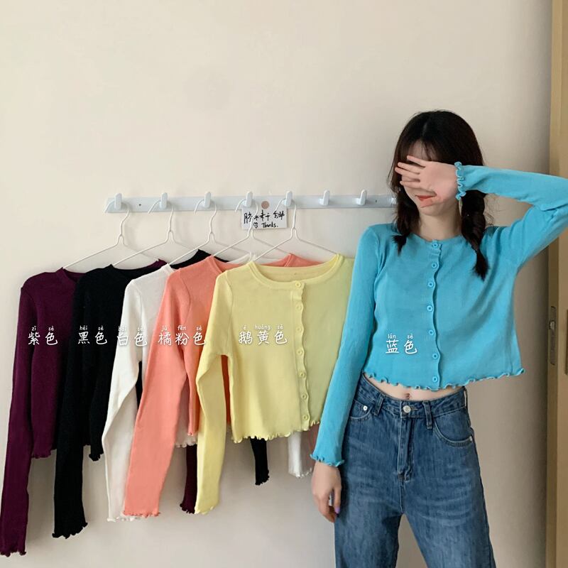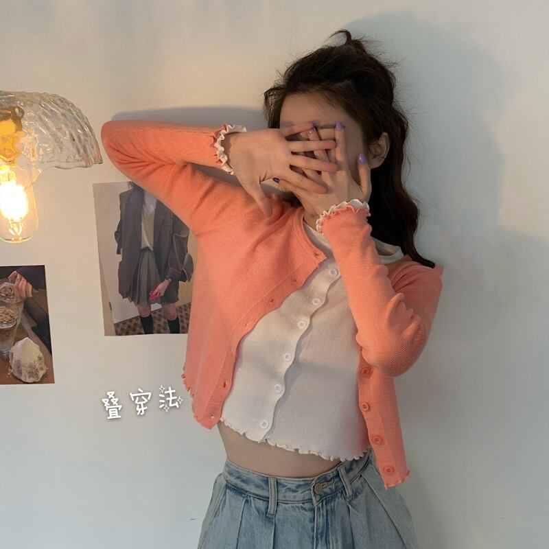 ショートセーター スプリングスリム薄手カーディガントップス ロング 春物 萌量不足14242105745