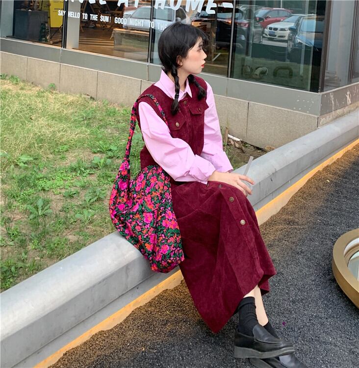 スタンダードスタイルレッドヴィンテージノースリーブドレス スプリングウェストスカート レトロ 春物 ビンテージ 萌量不足4353111397