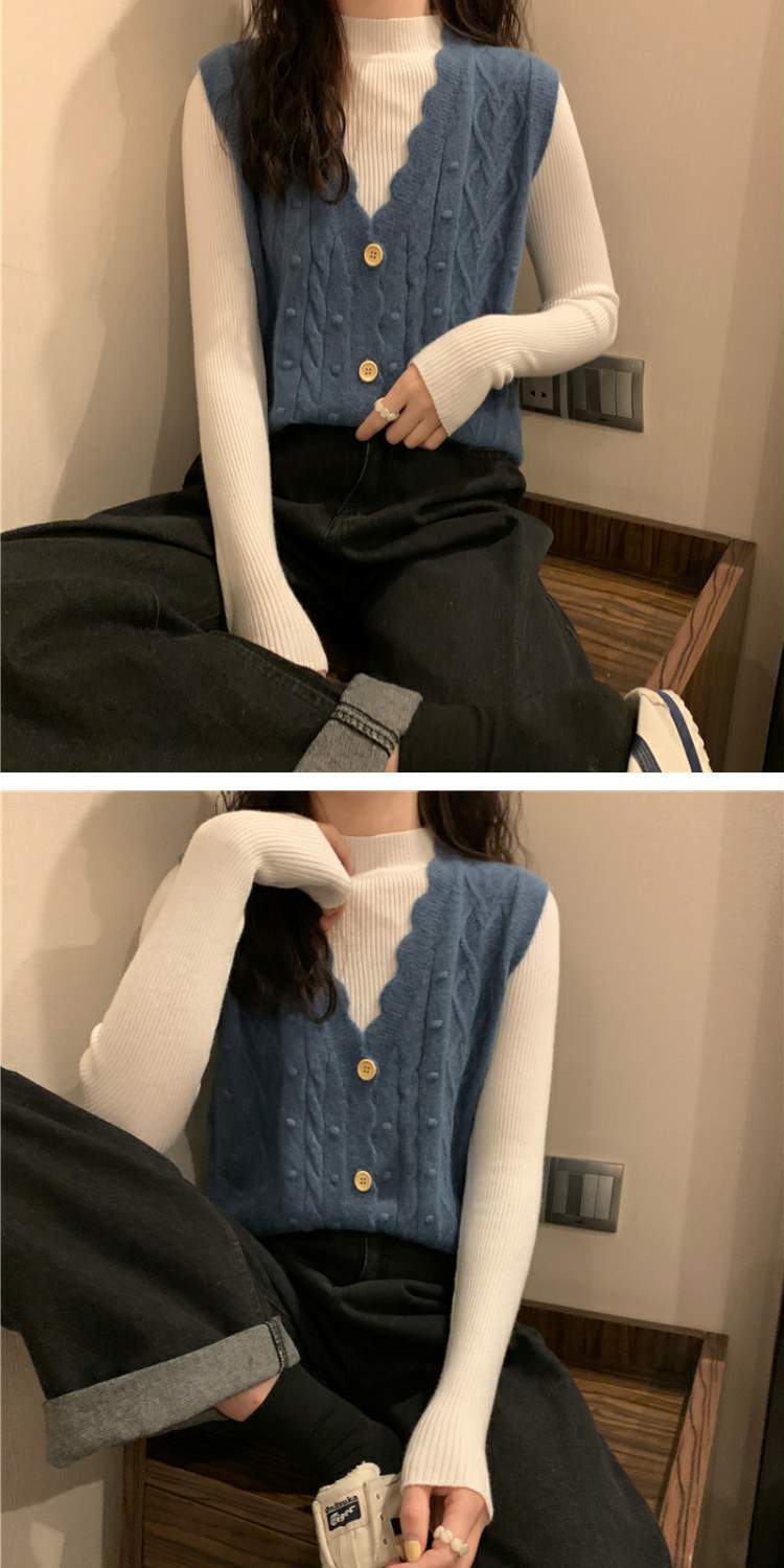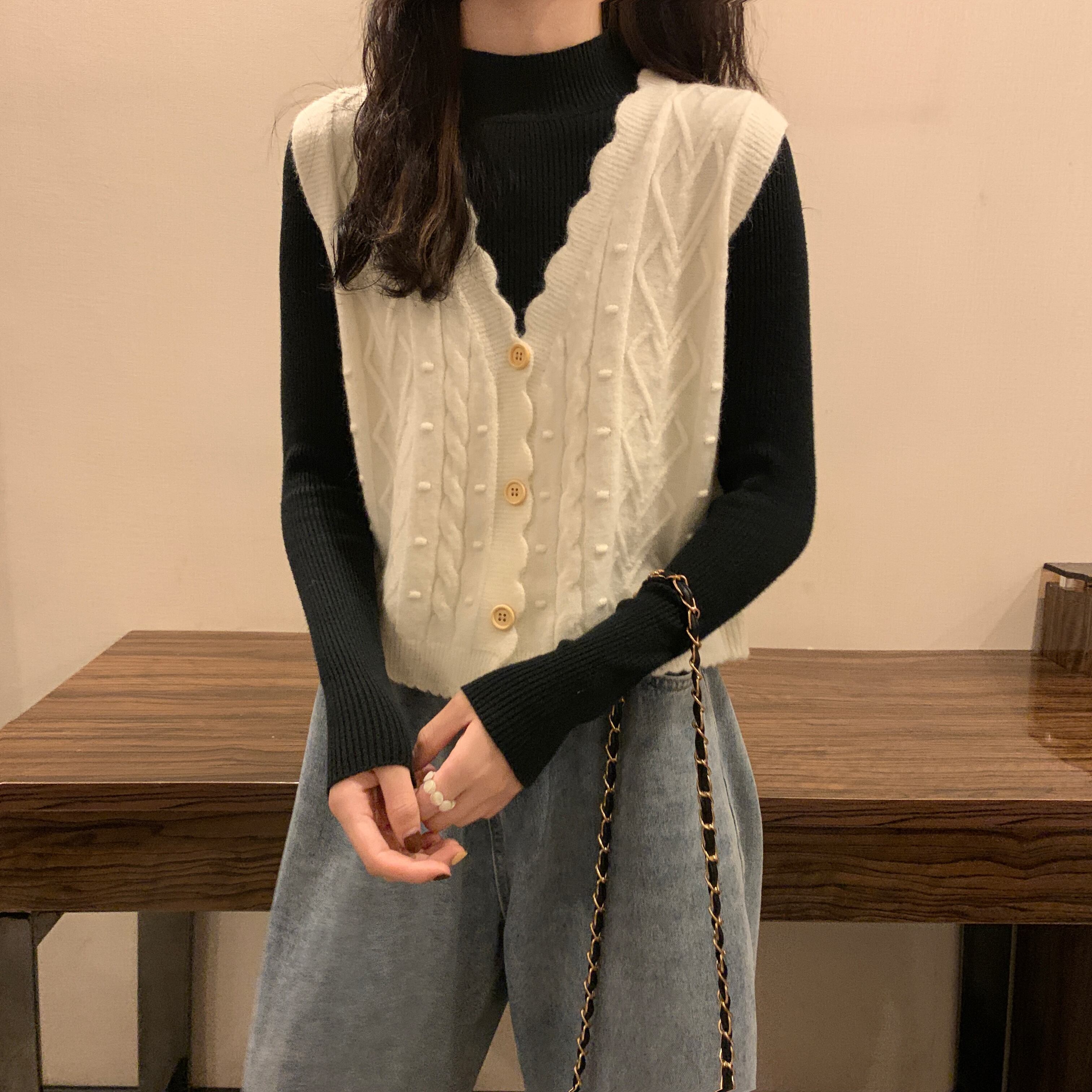 Vネックセーター オータムウィンターニットソリッド カラーカーディガンノースリーブルーズブラウス 秋物 冬物 ソリッドカラー 萌量不足53035905930