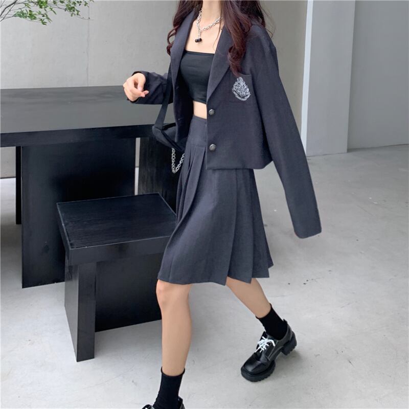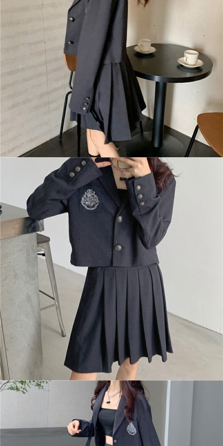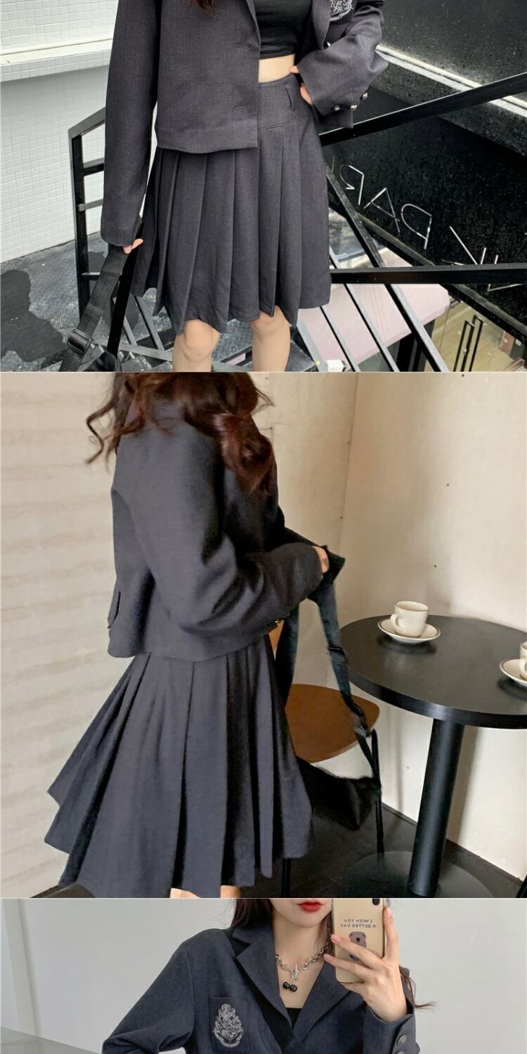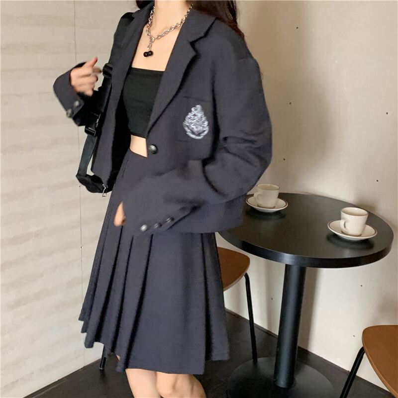 スプリングブレザー ジャケット プリーツスカート セット レッド 刺繍 春物 萌量不足26225916099