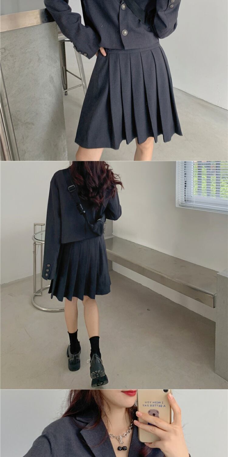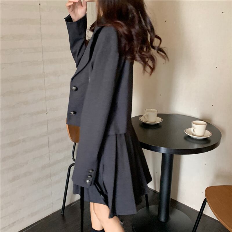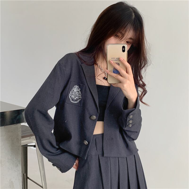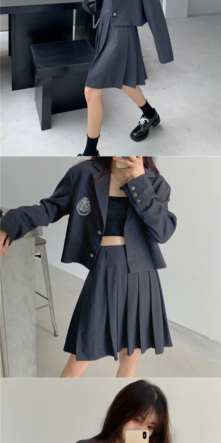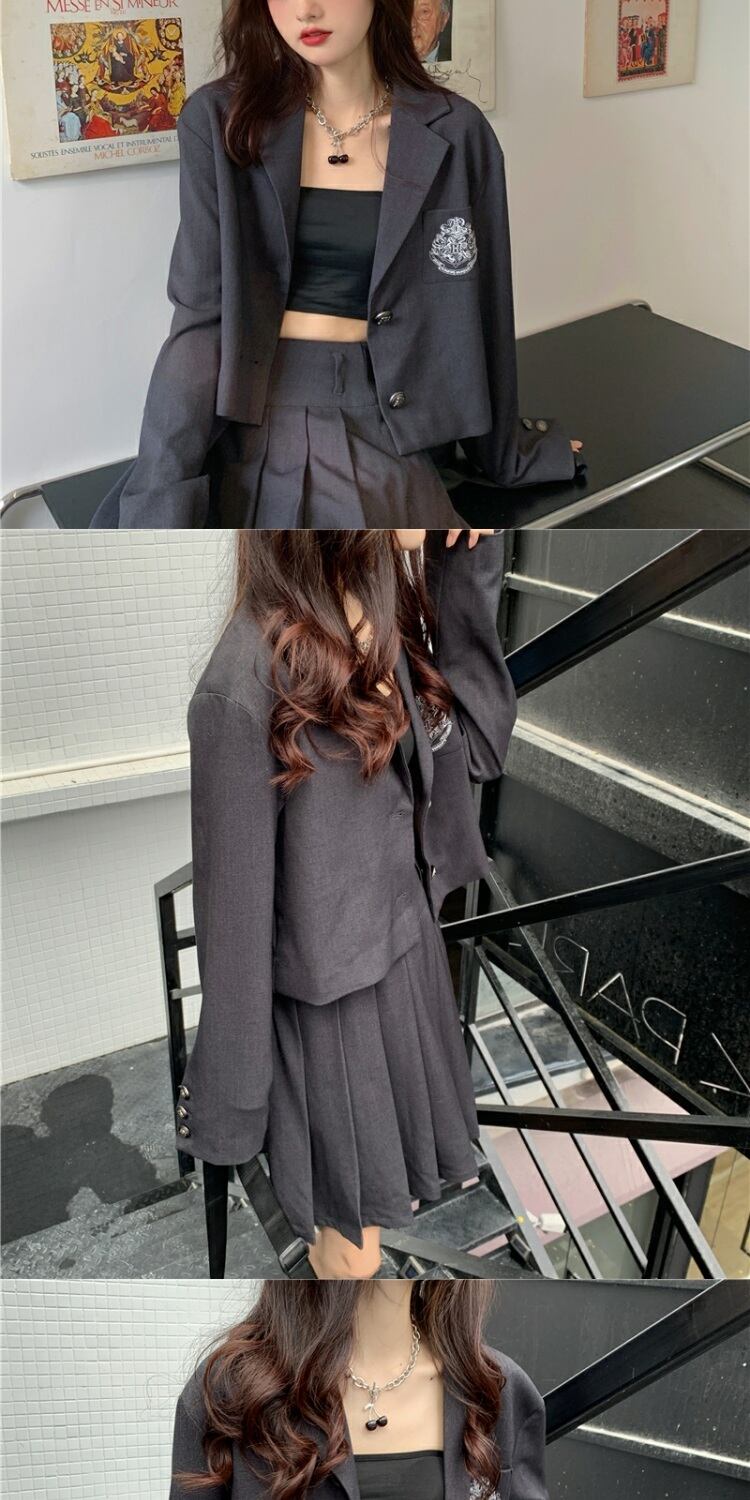 スプリングブレザー ジャケット プリーツスカート セット レッド 刺繍 春物 萌量不足26225916099