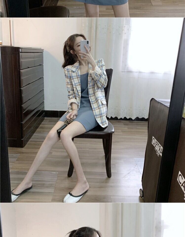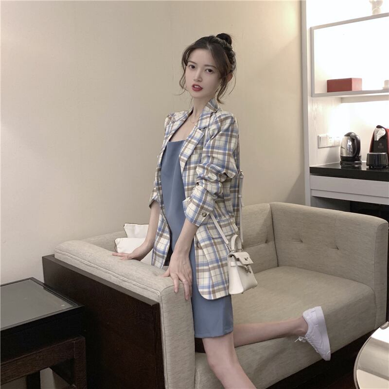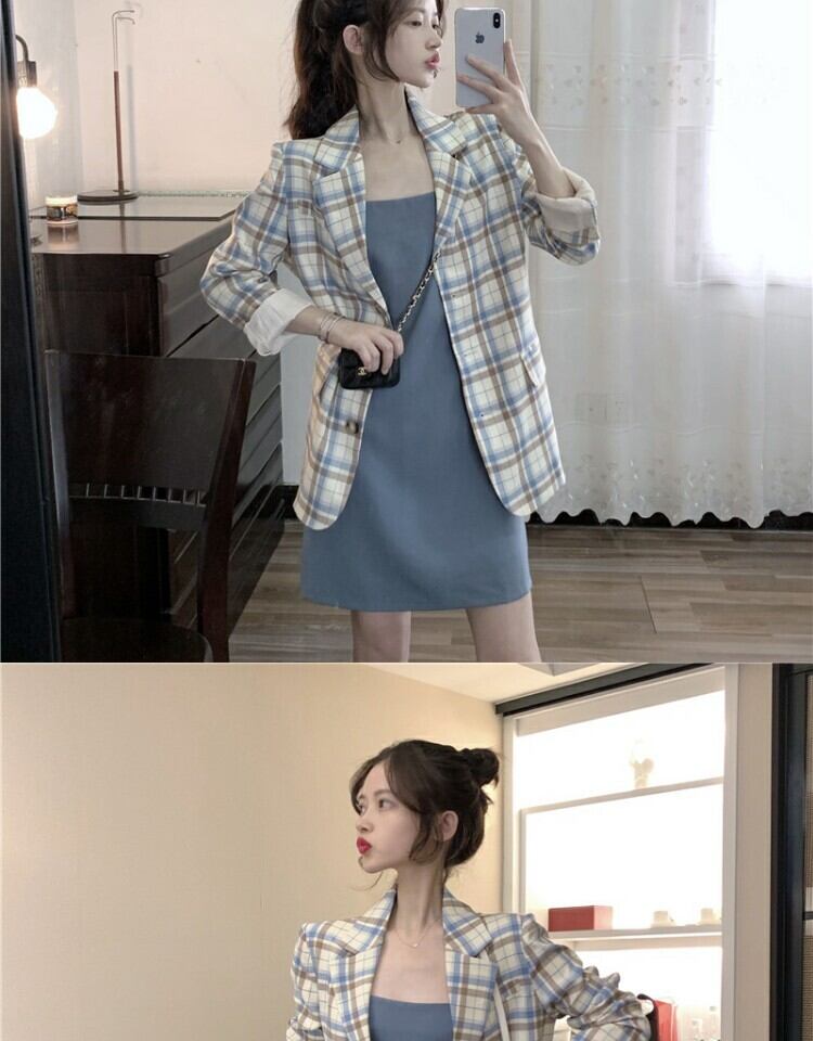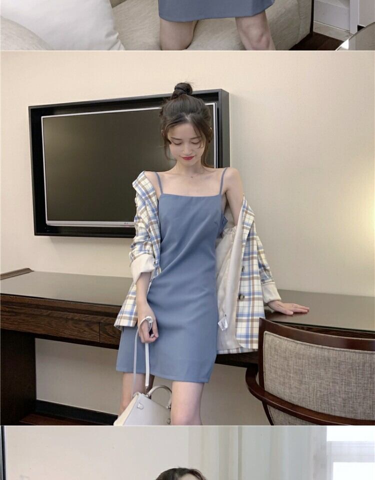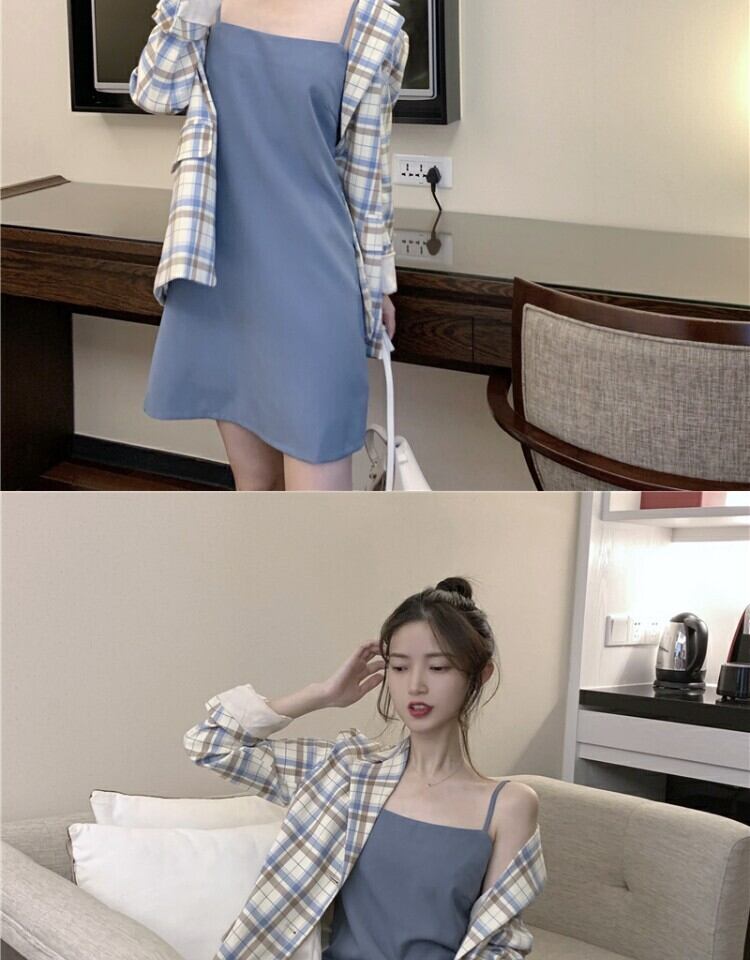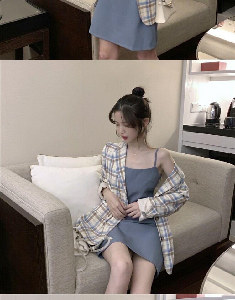色:格子縞のスーツ,サスペンダー付きドレス(調整バックル)