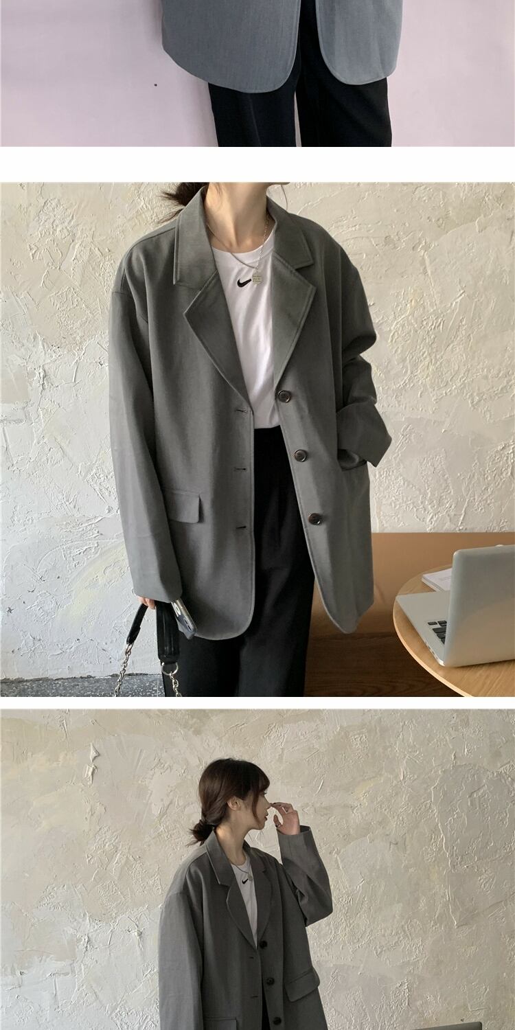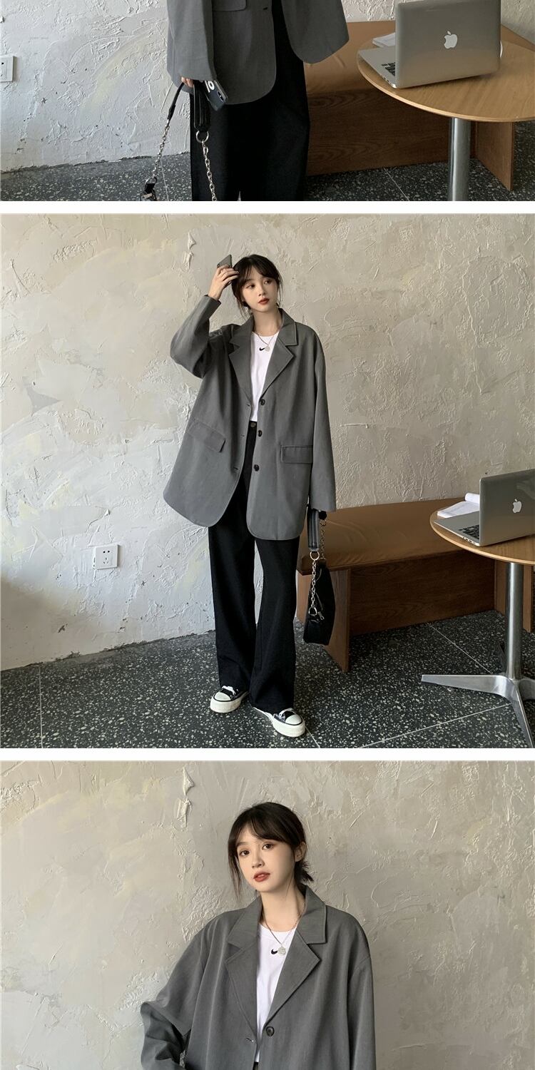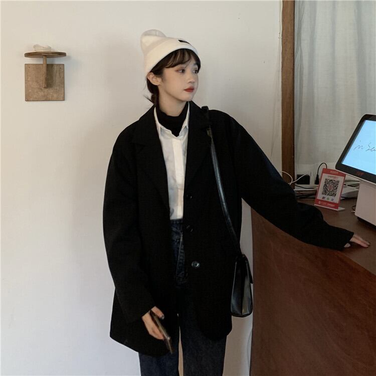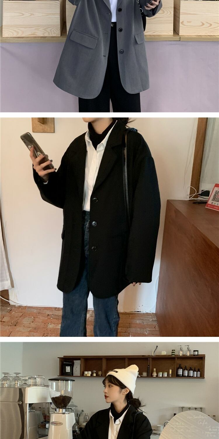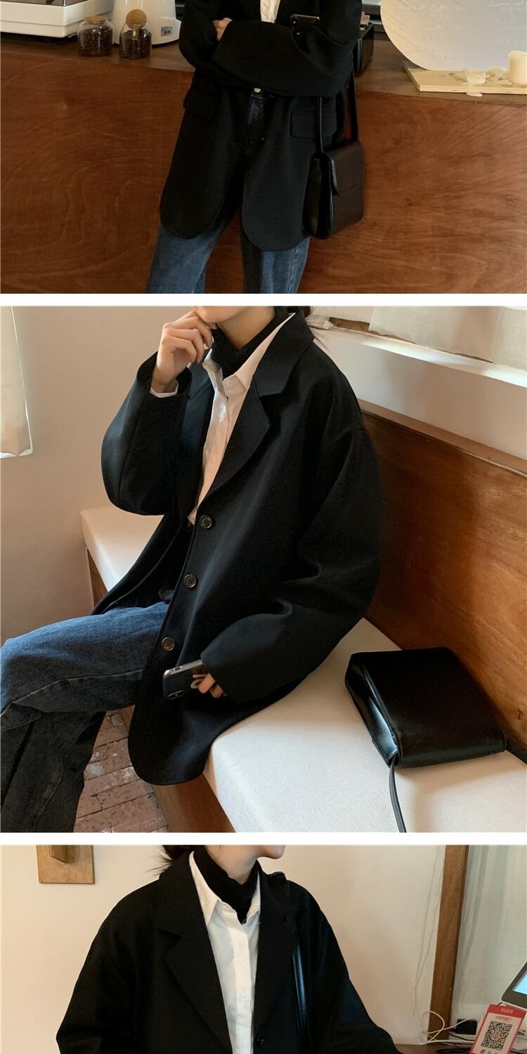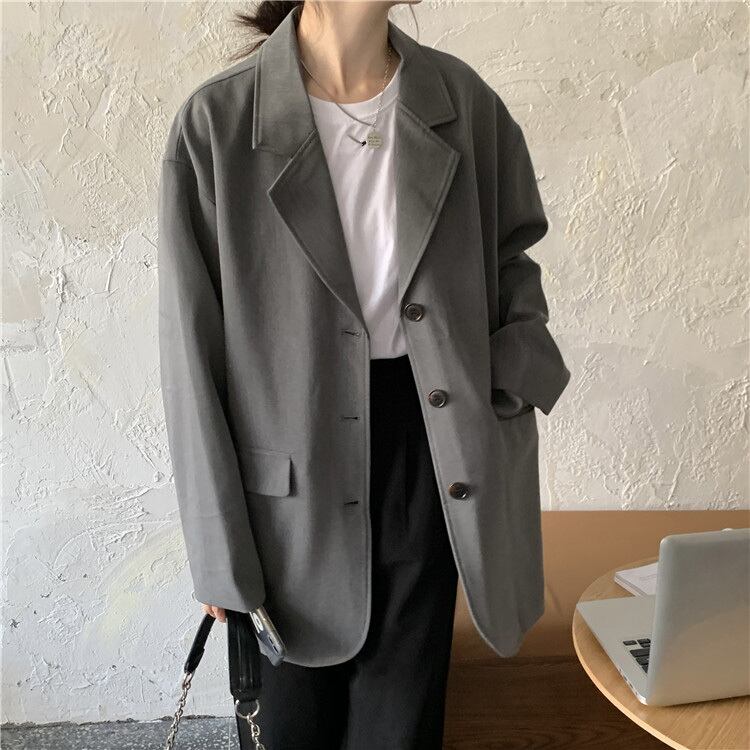 スタイルスタンダードカラーソリッド ジャケット スプリングルーズブラウス レトロ 春物 ソリッドカラー 萌量不足52857838648