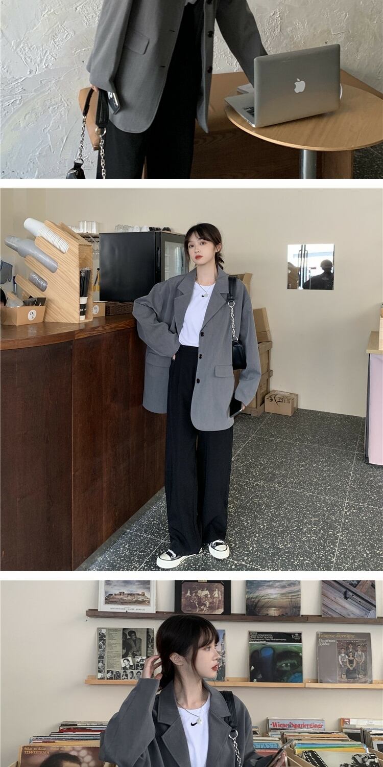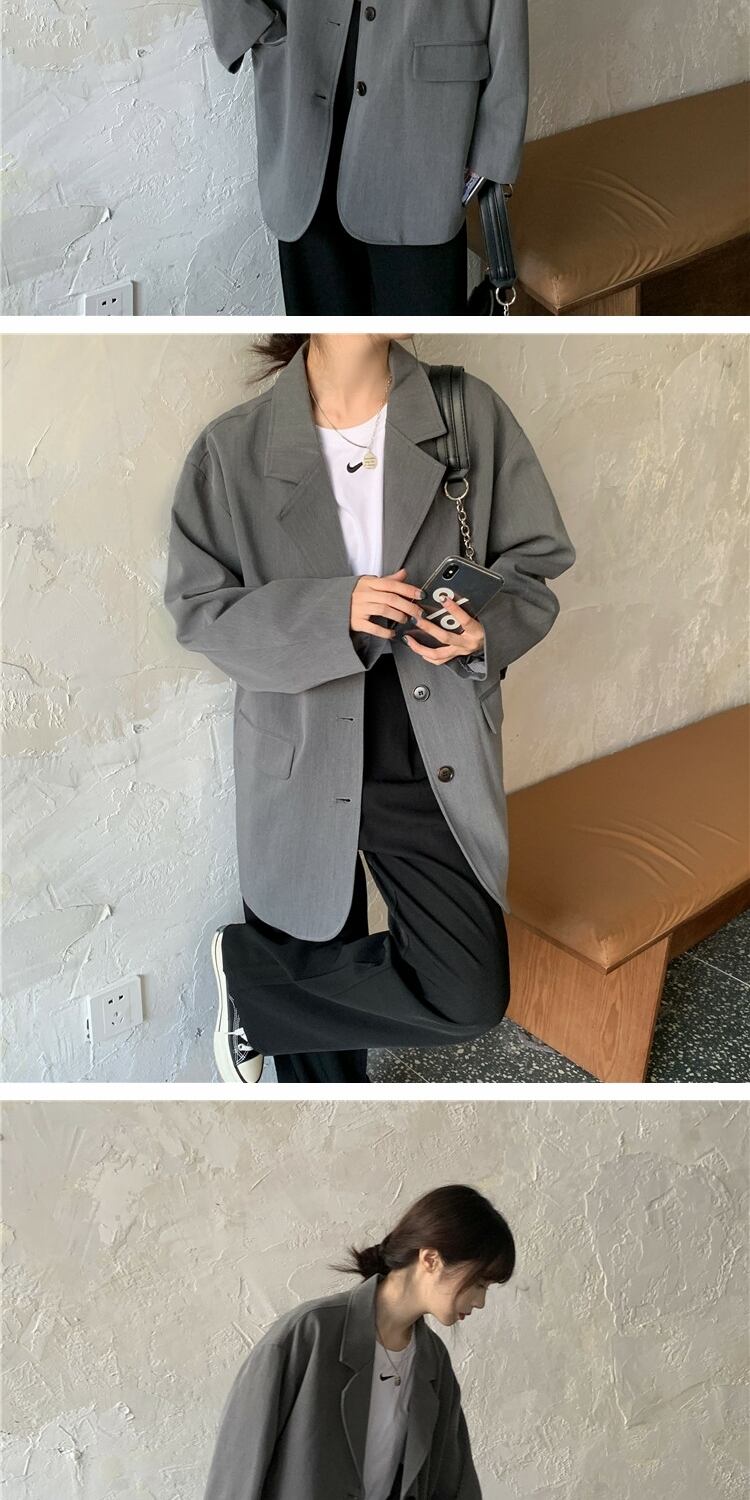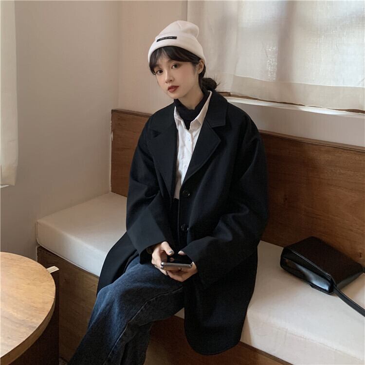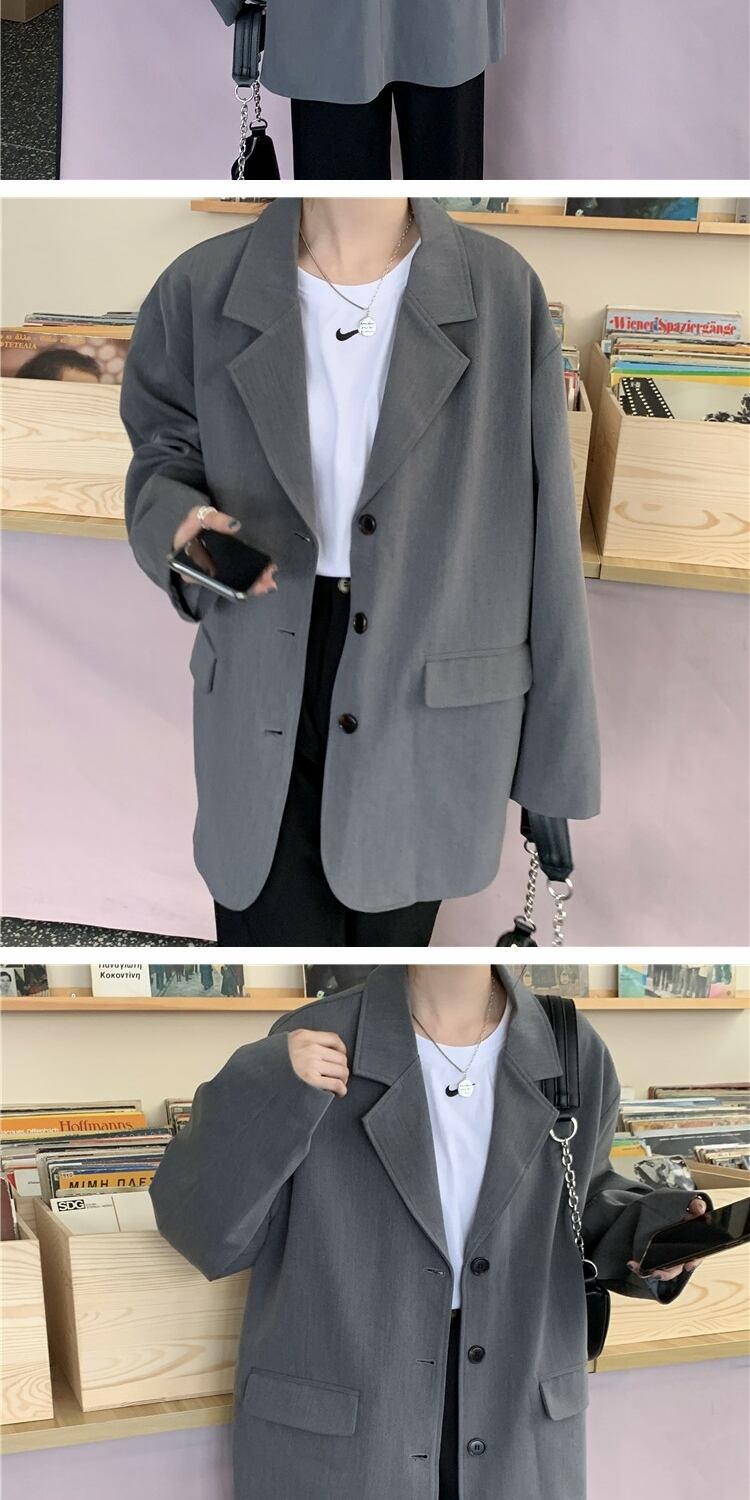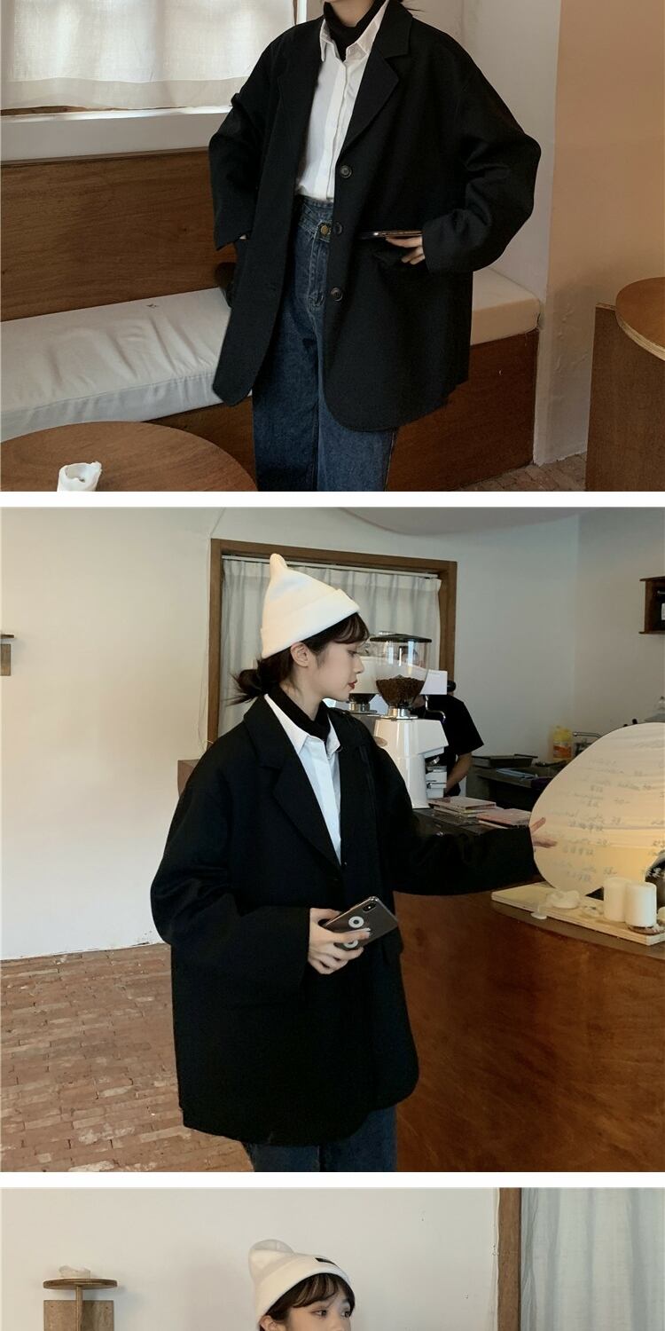 スタイルスタンダードカラーソリッド ジャケット スプリングルーズブラウス レトロ 春物 ソリッドカラー 萌量不足52857838648