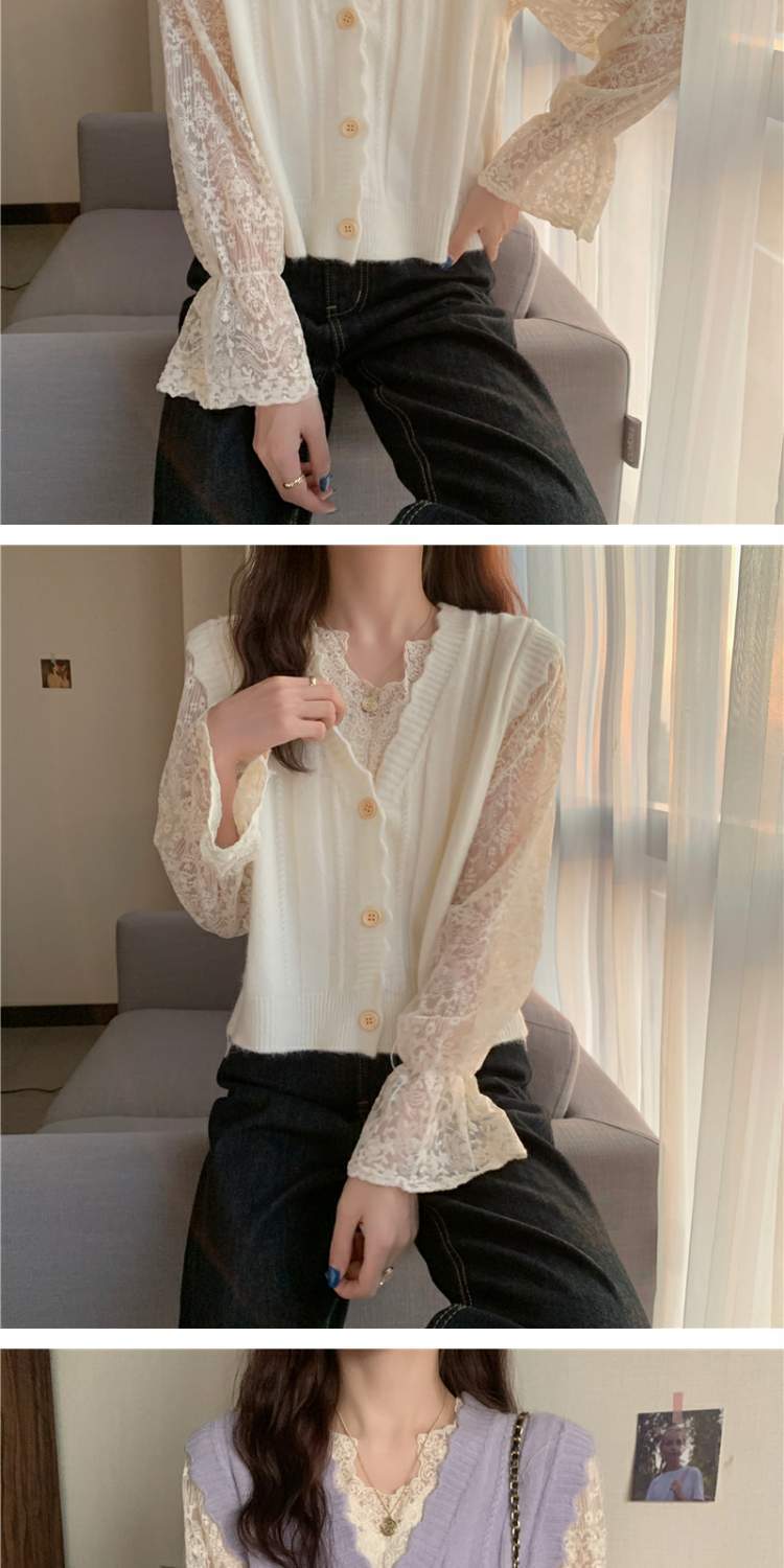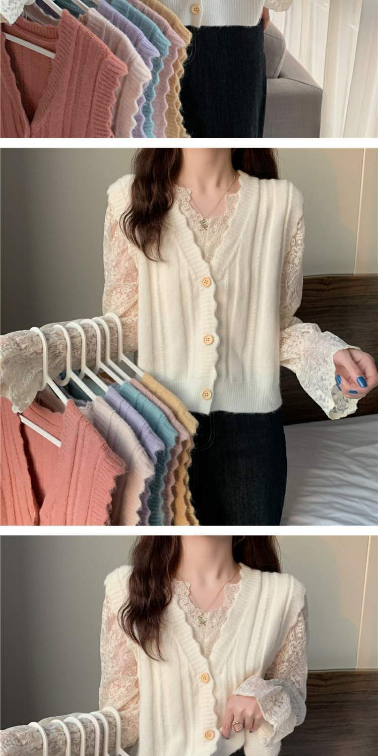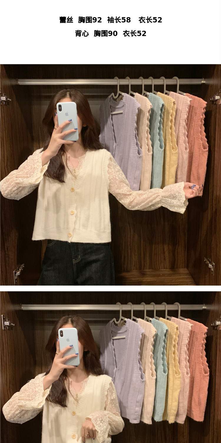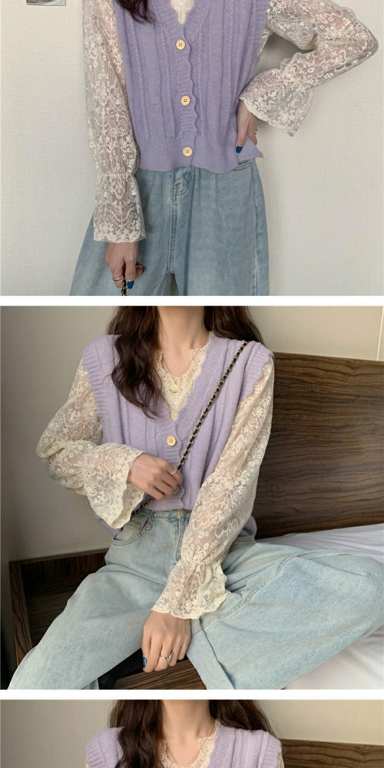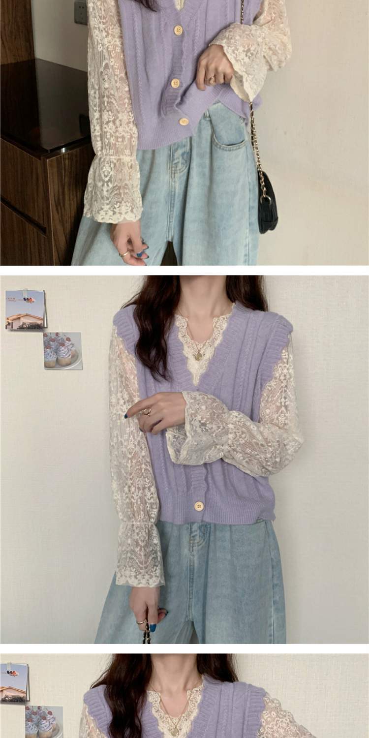 ショートVネックセーター スプリングオータムニットカーディガントップス 春物 秋物 パープル 萌量不足86306476804