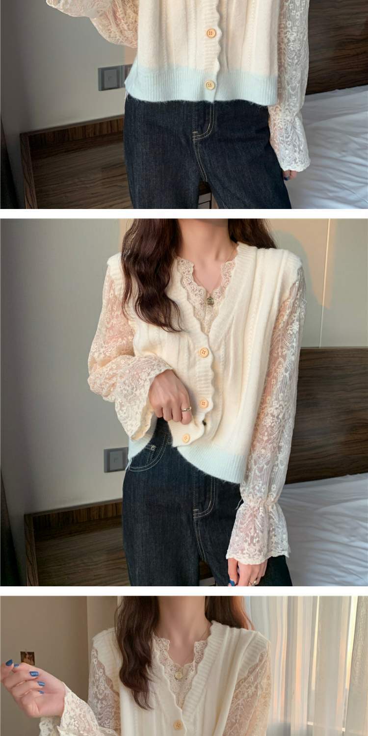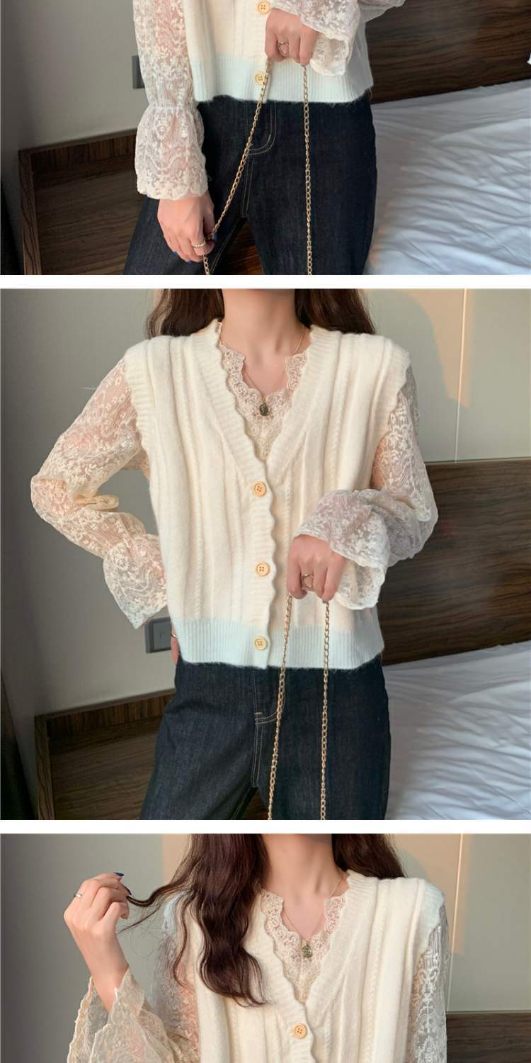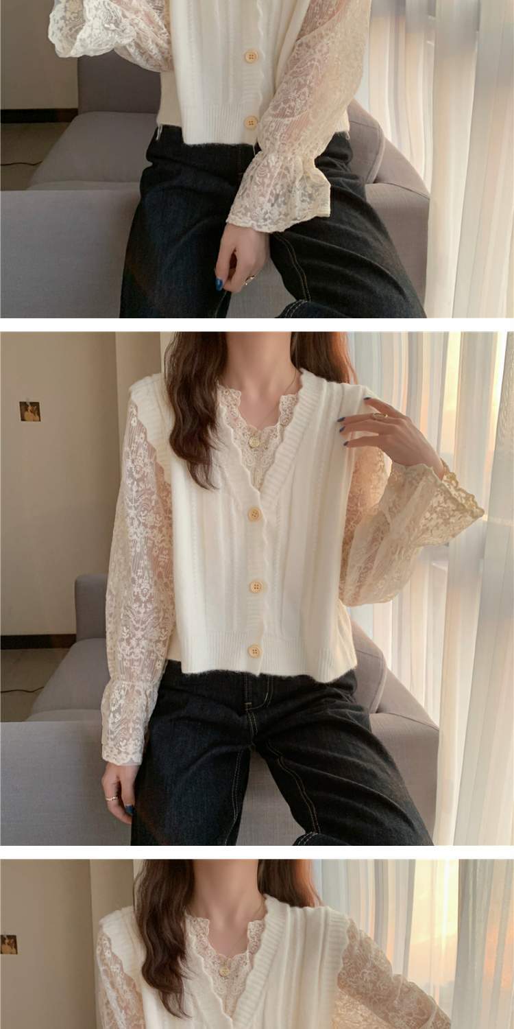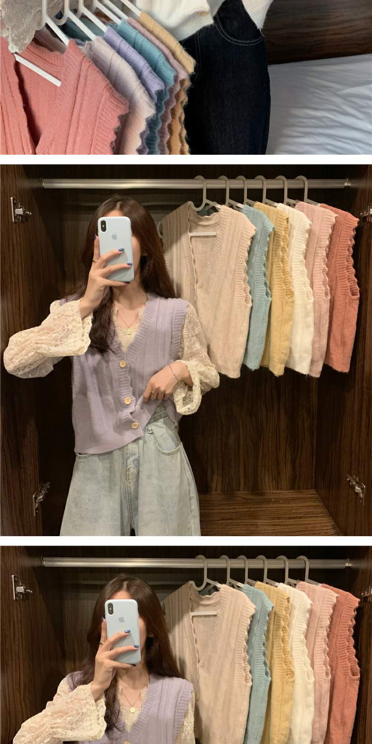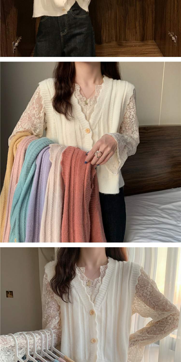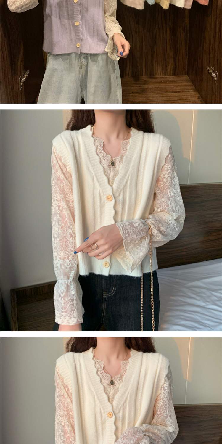 ショートVネックセーター スプリングオータムニットカーディガントップス 春物 秋物 パープル 萌量不足86306476804