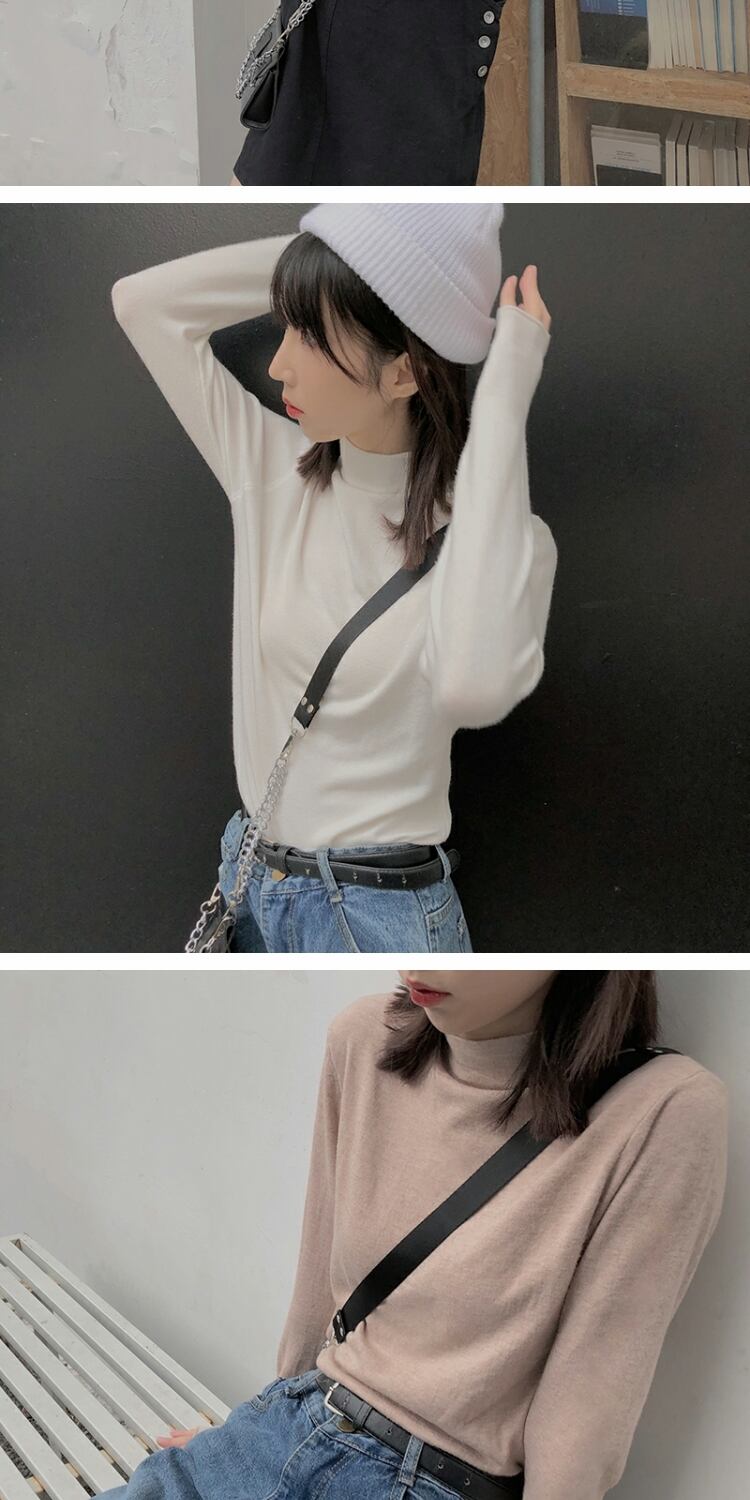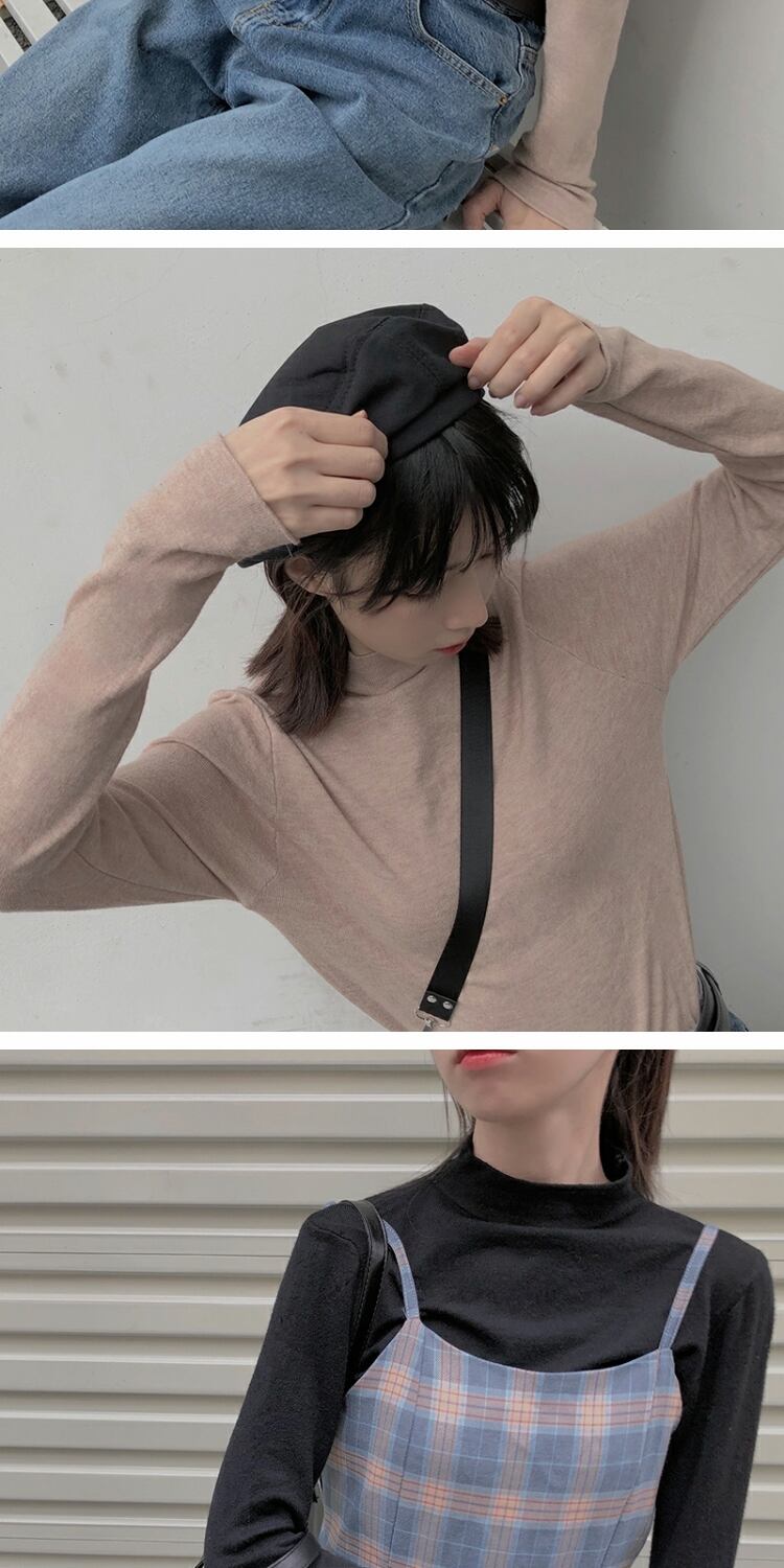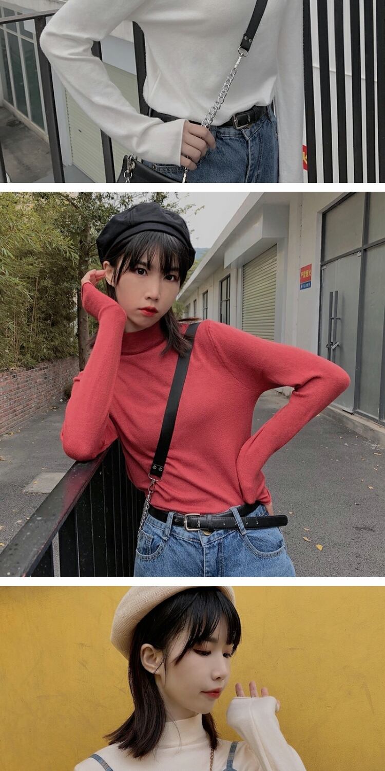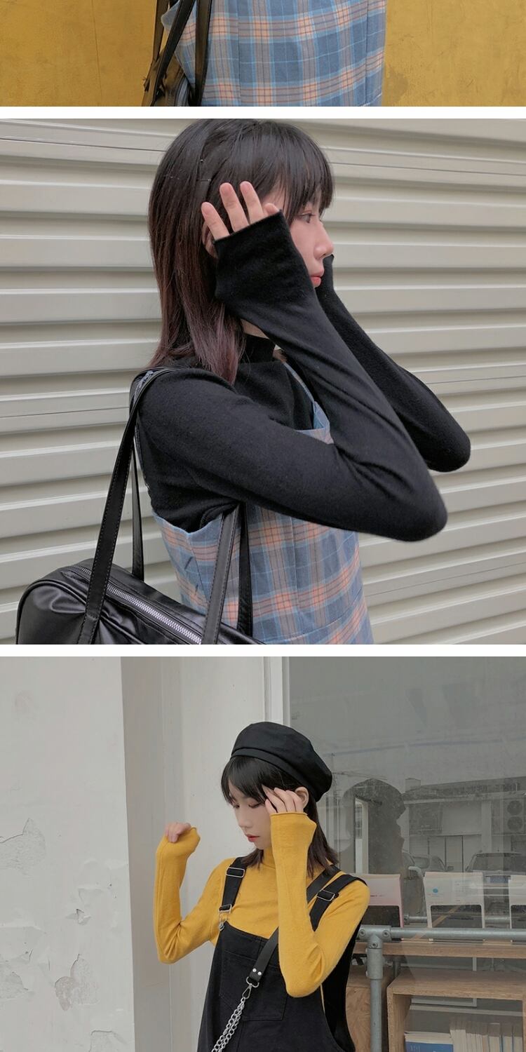 ベーシックカラーシャツ オータムウィンターTシャツ 薄手トップス ロング レッド 秋物 冬物 萌量不足2983390775