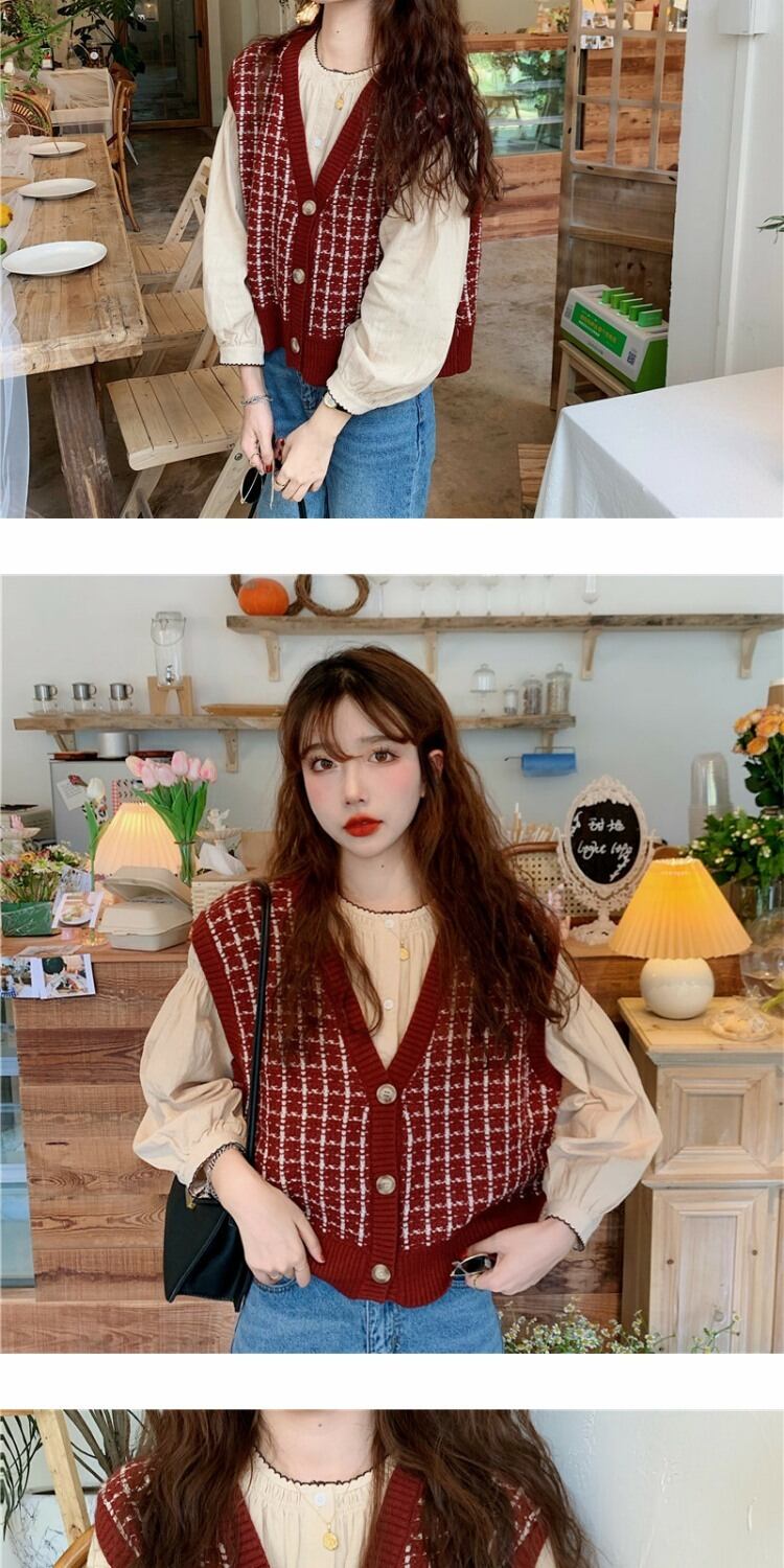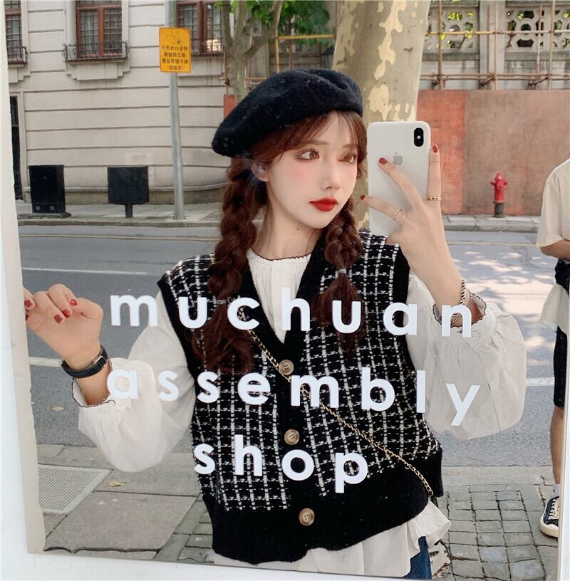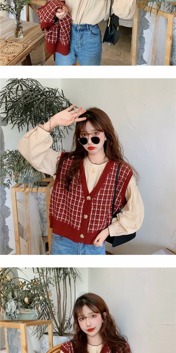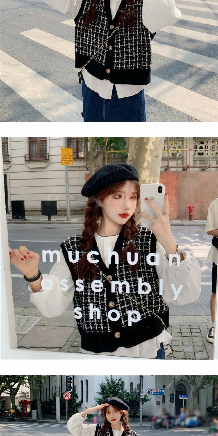 ショートニットセーター スタンダードカーディガントップス ルーズノースリーブレディーススプリング レトロ 春物 萌量不足25493193492