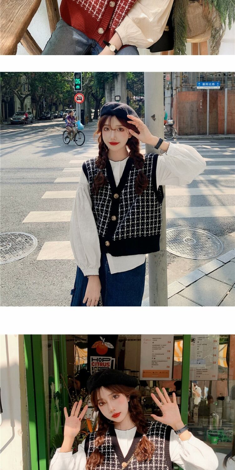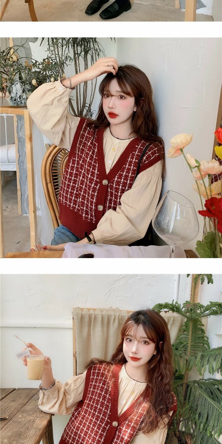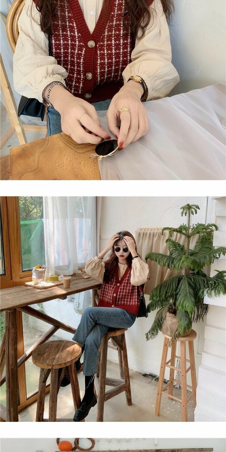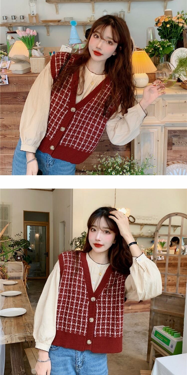 ショートニットセーター スタンダードカーディガントップス ルーズノースリーブレディーススプリング レトロ 春物 萌量不足25493193492