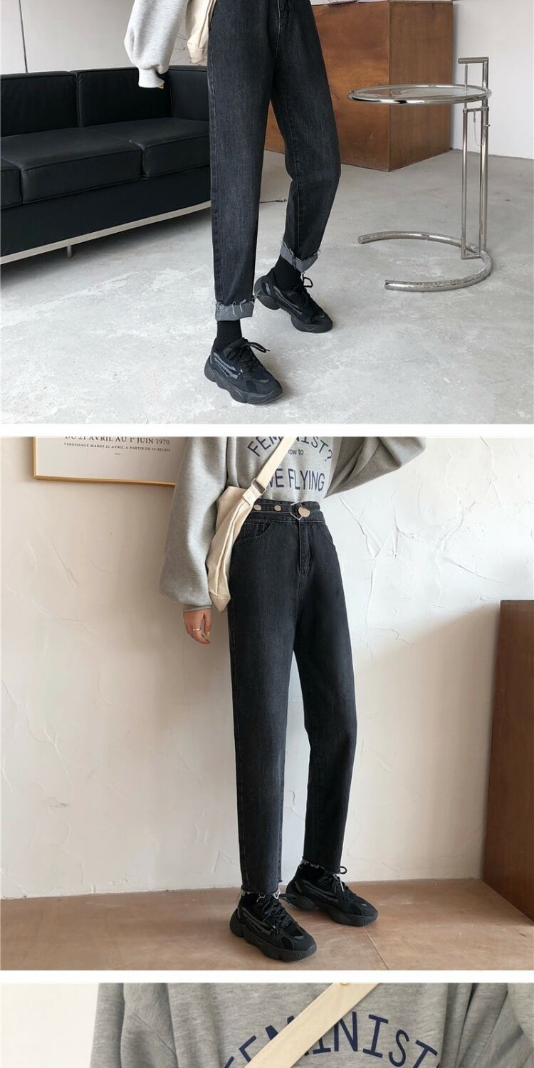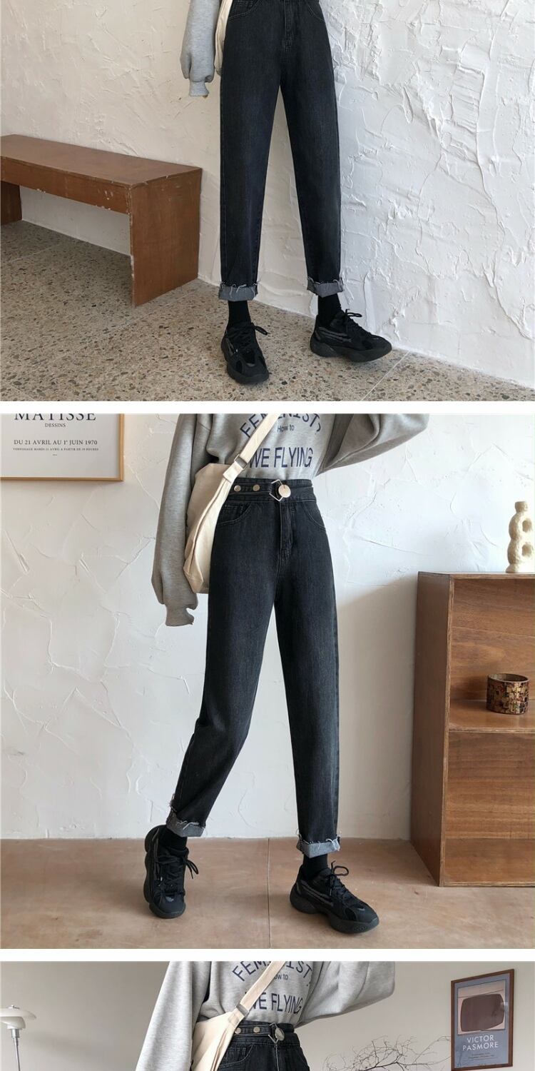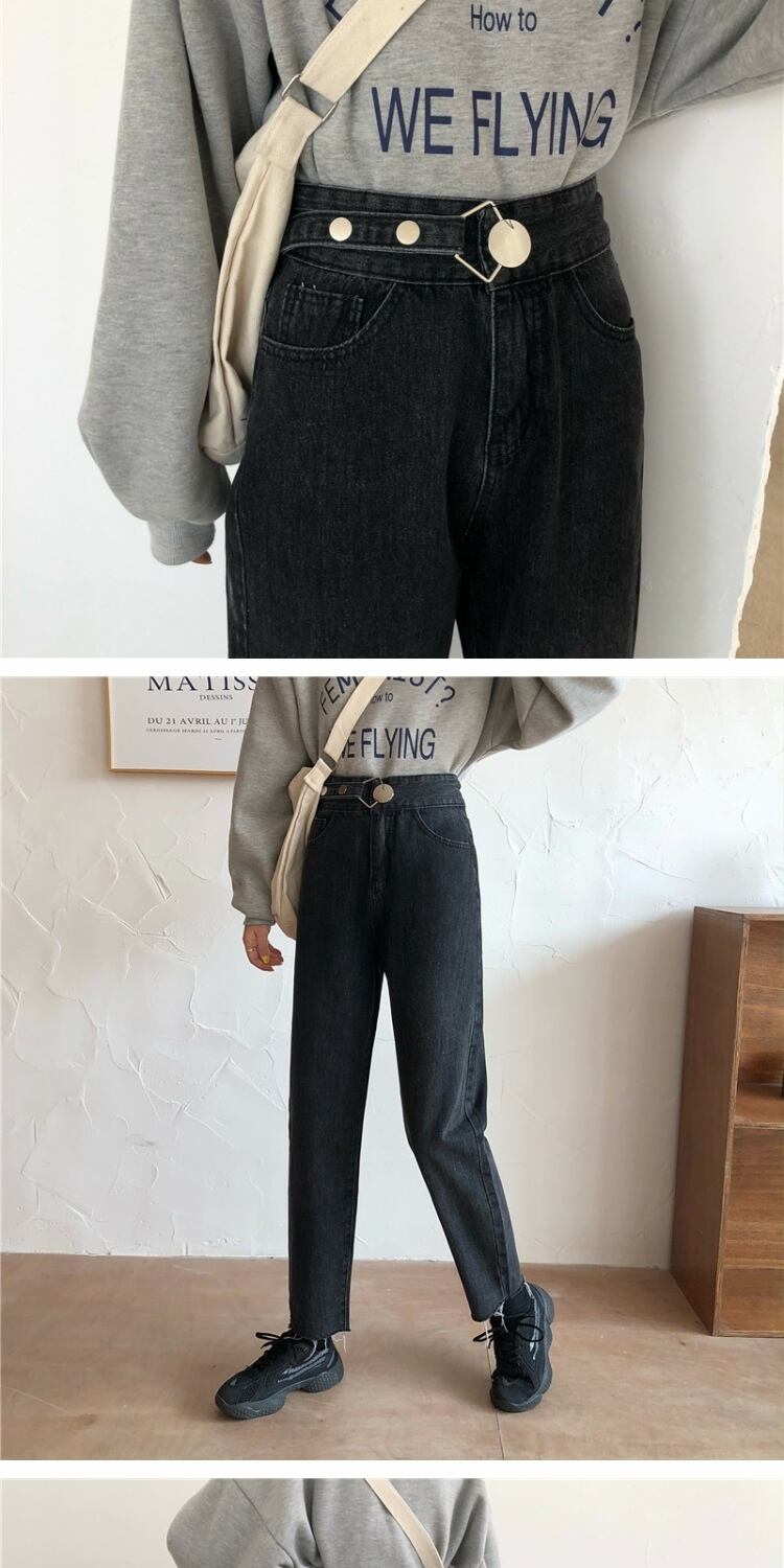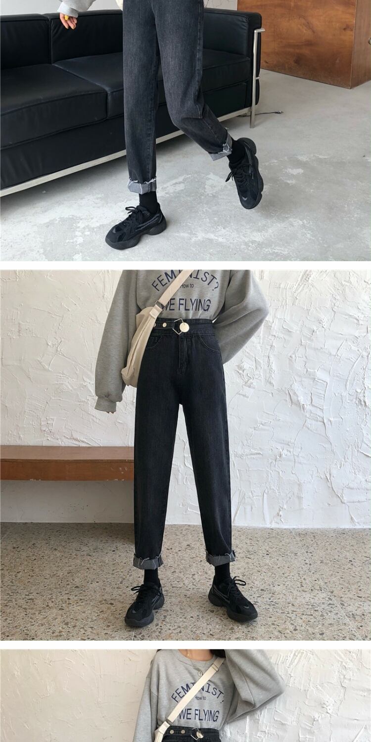 ブラックパンツ スプリング薄手レッドルーズハイウェストジーンズ 春物 萌量不足8155278113