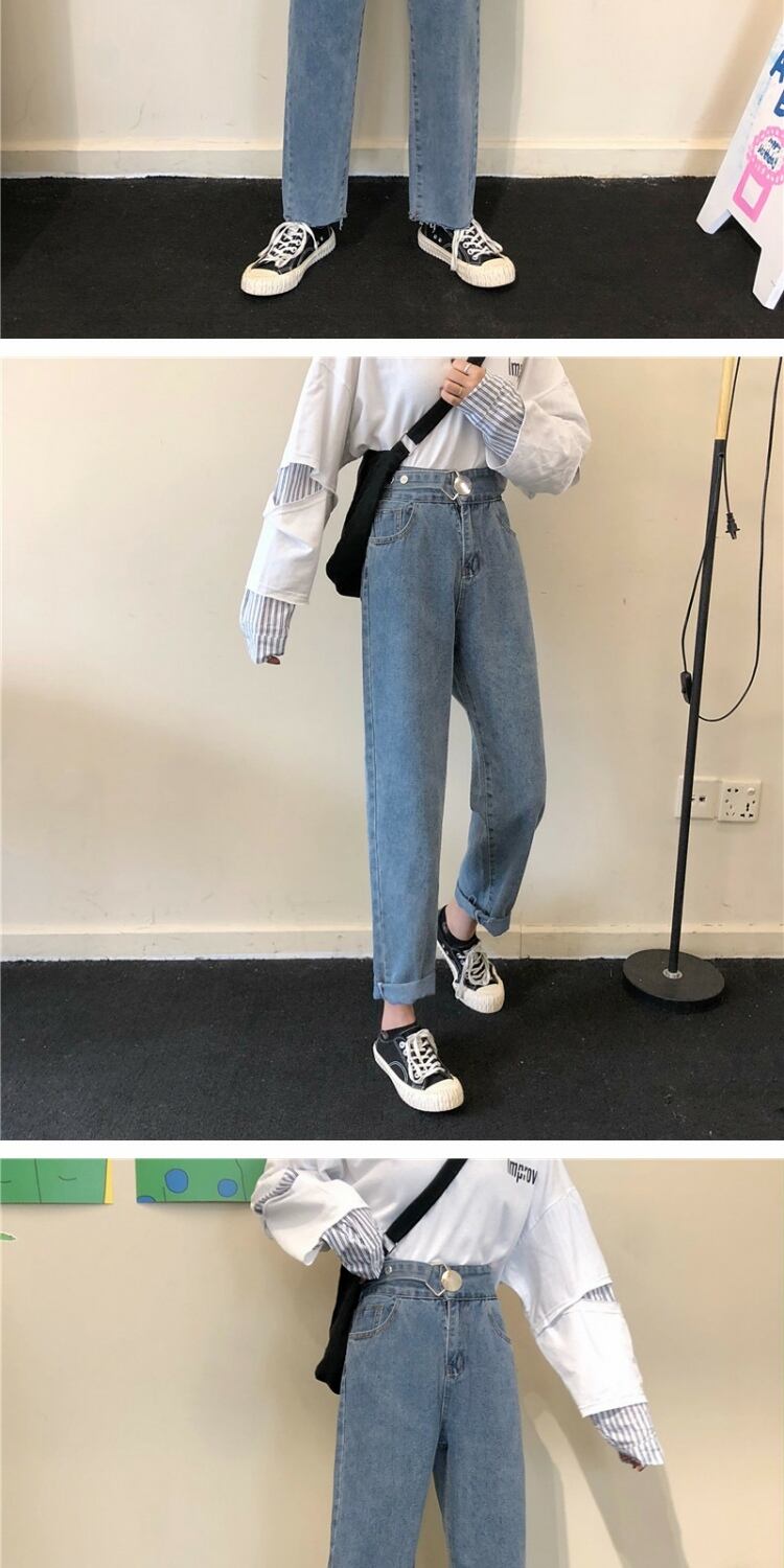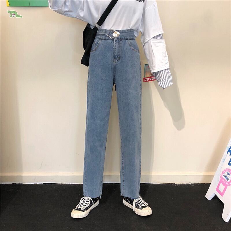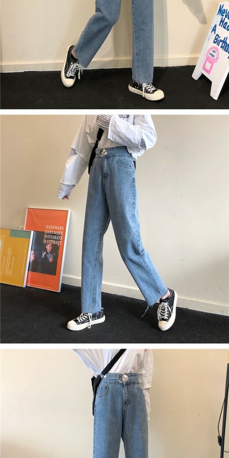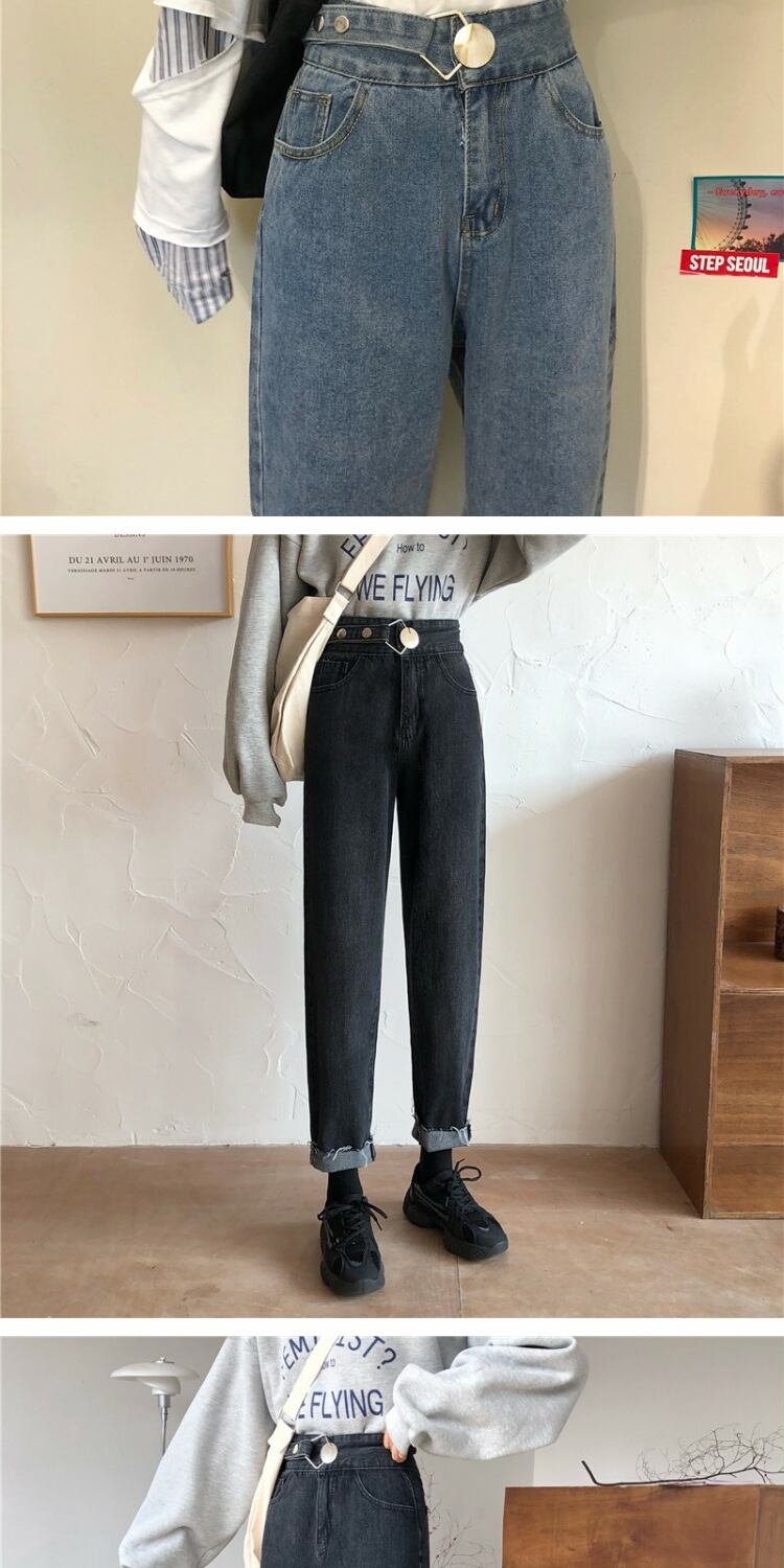 ブラックパンツ スプリング薄手レッドルーズハイウェストジーンズ 春物 萌量不足8155278113