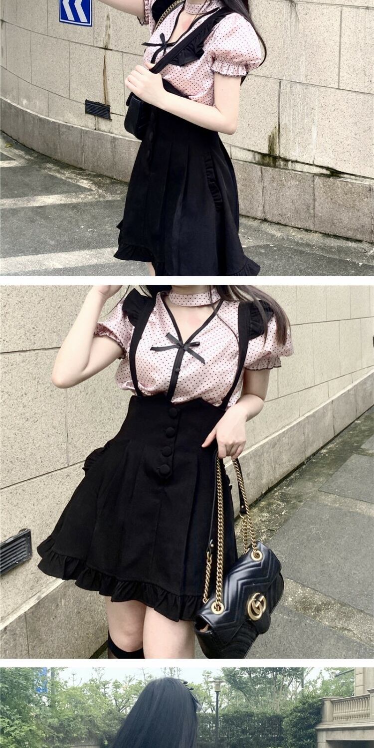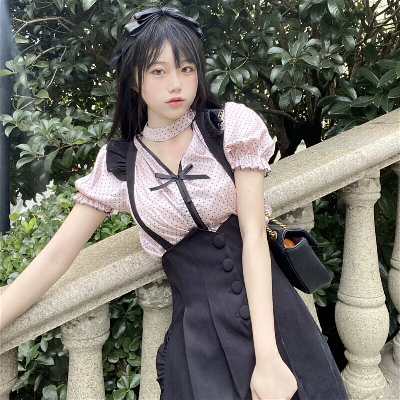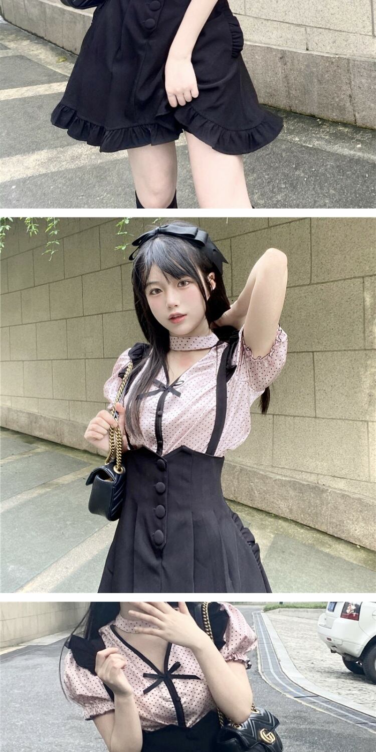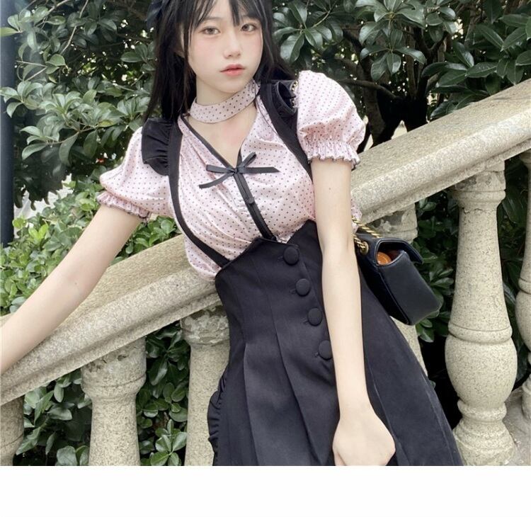 ホルター水玉シャツ サマースカート 大人ガーリー スウィート キュート カジュアル 夏物 萌量不足16388128796