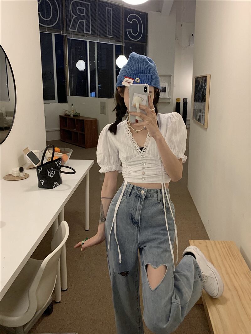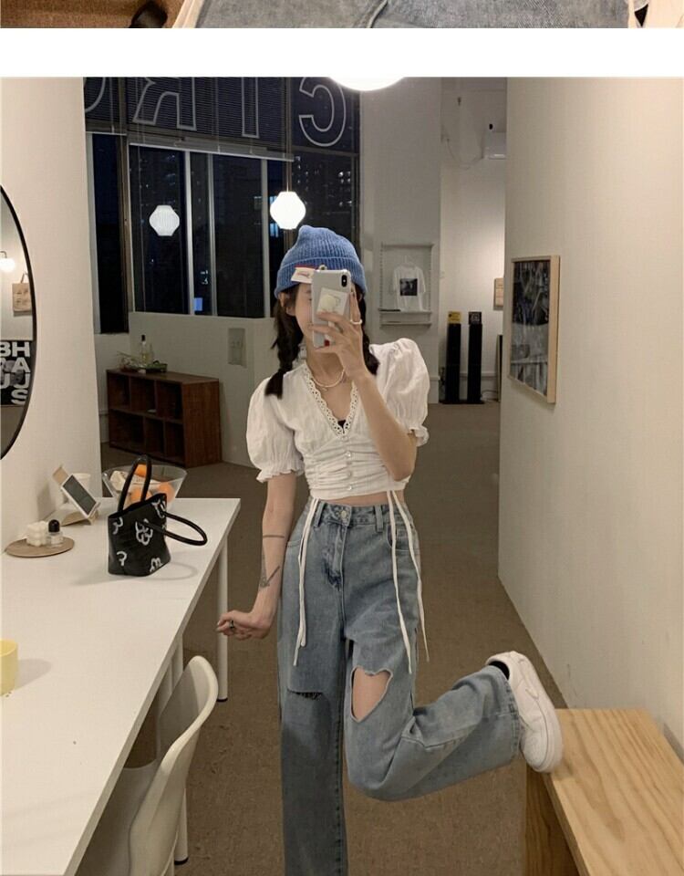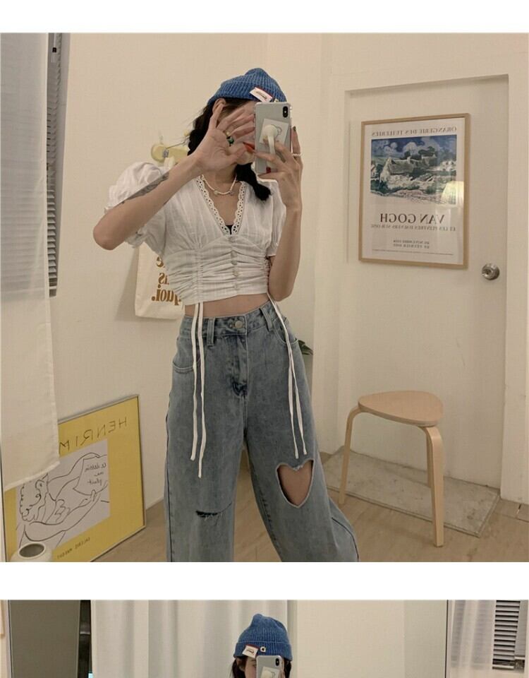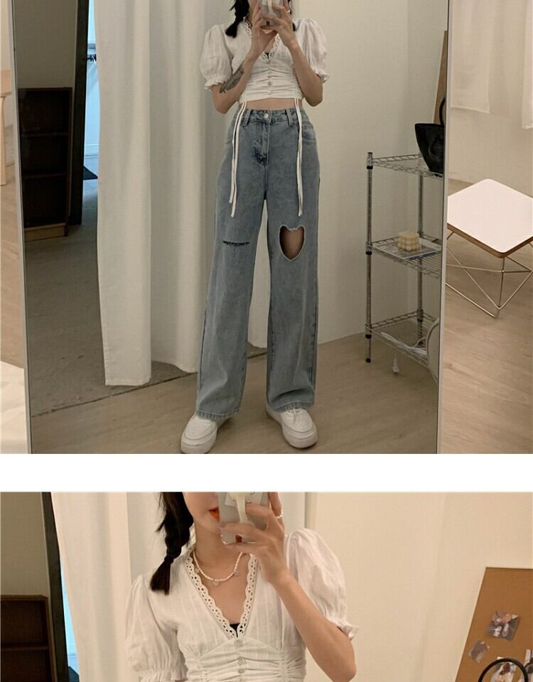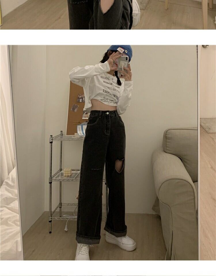 レッドスタイルジーンズ レディーススプリングサマールーズパンツ ハイウェストウェストワイドレッグ 春物 夏物 ワイドパンツ 萌量不足14885574094