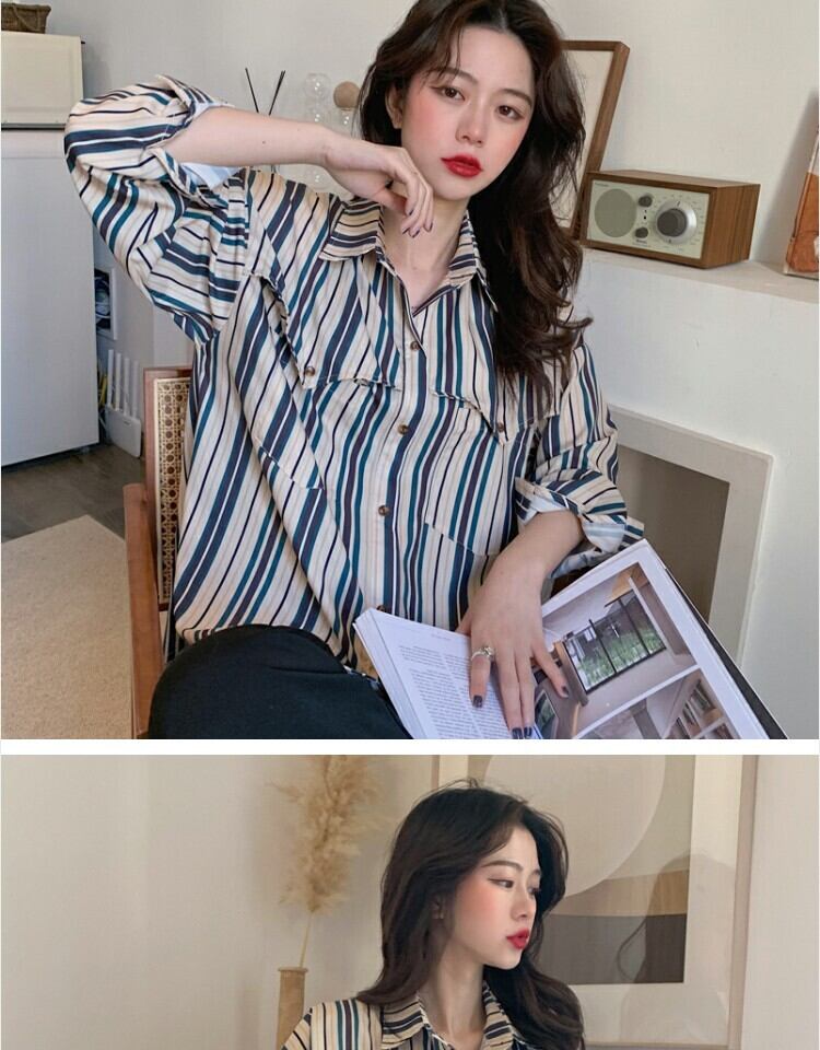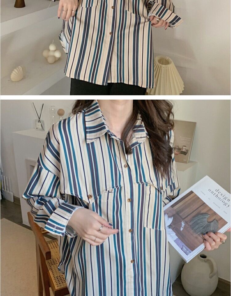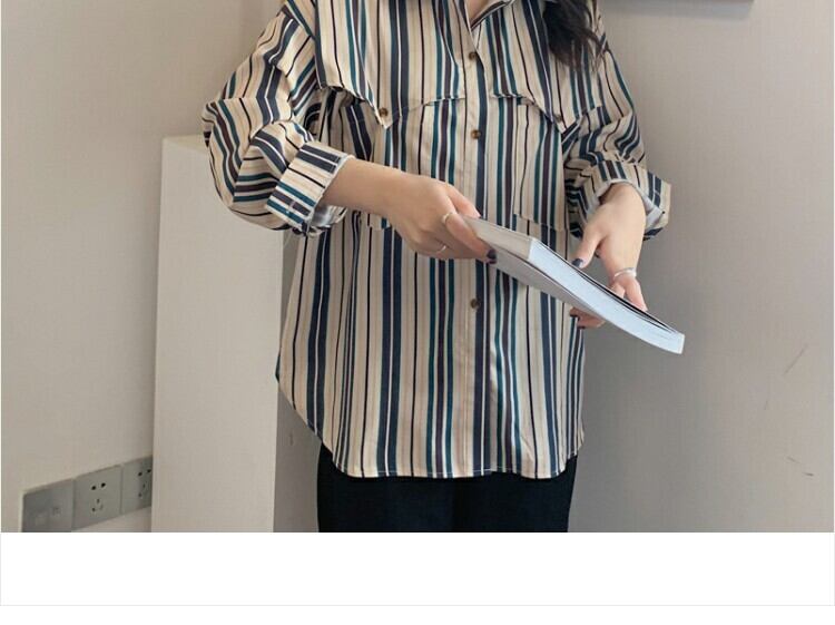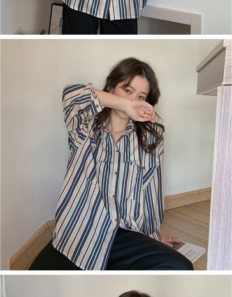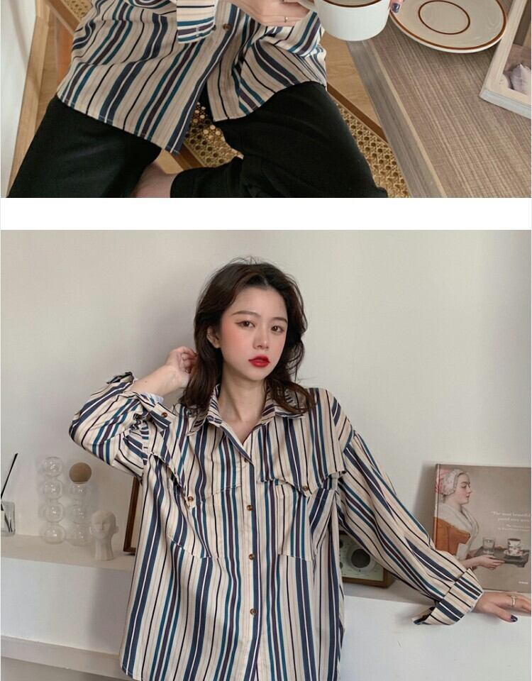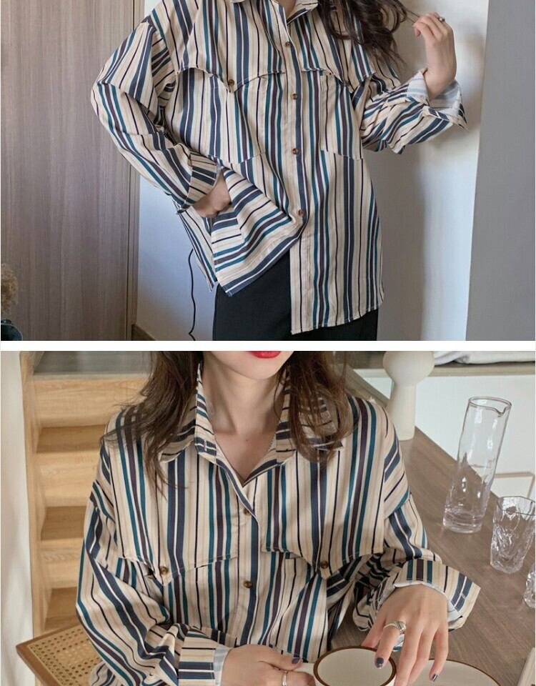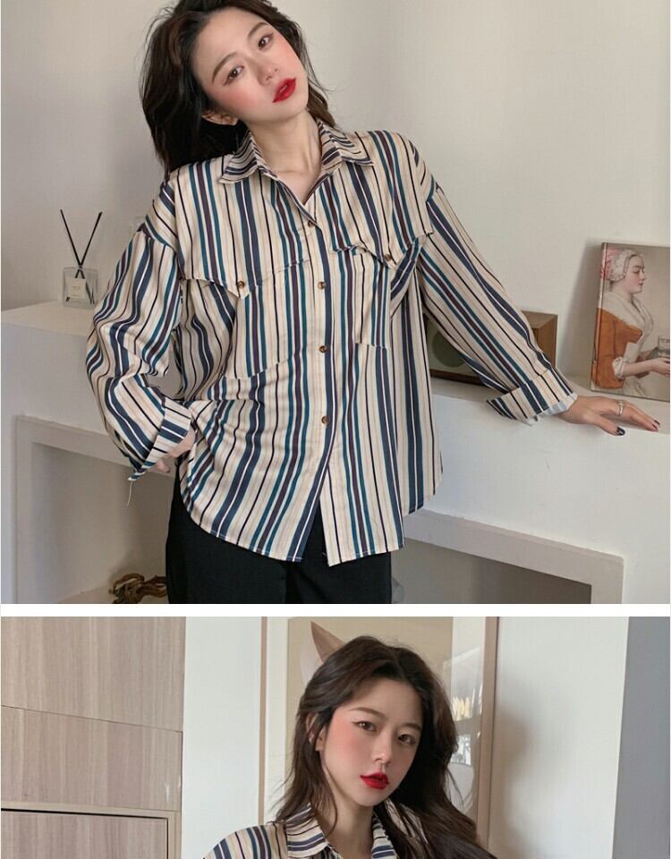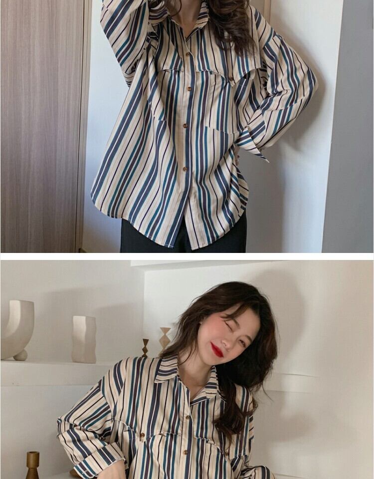 スタンダードスタイルストライプシャツ スプリングカジュアル レトロ 春物 萌量不足54798304899