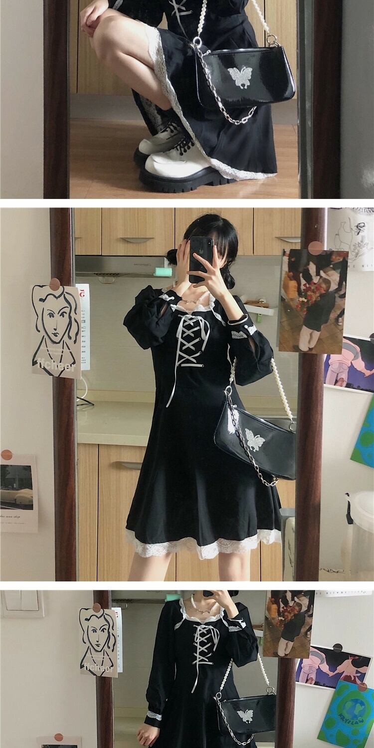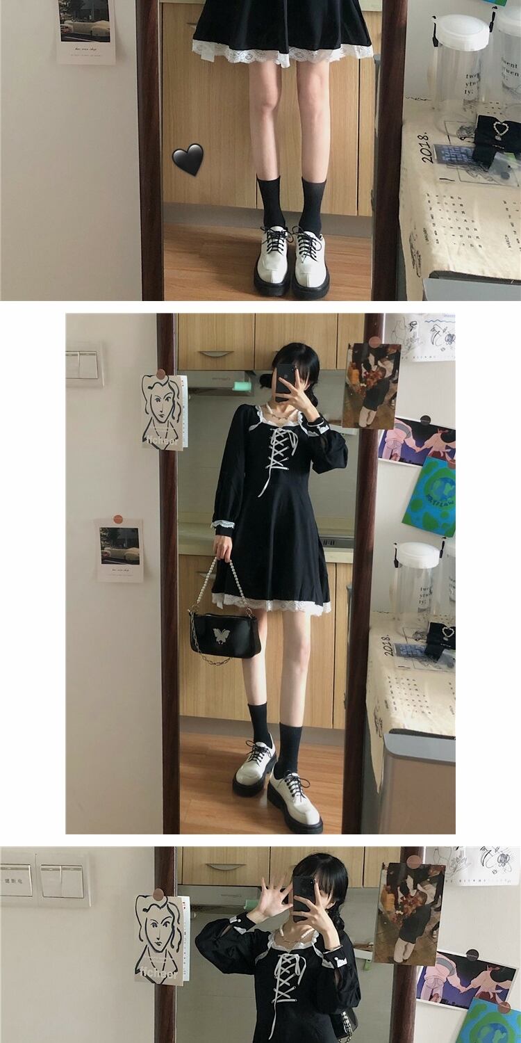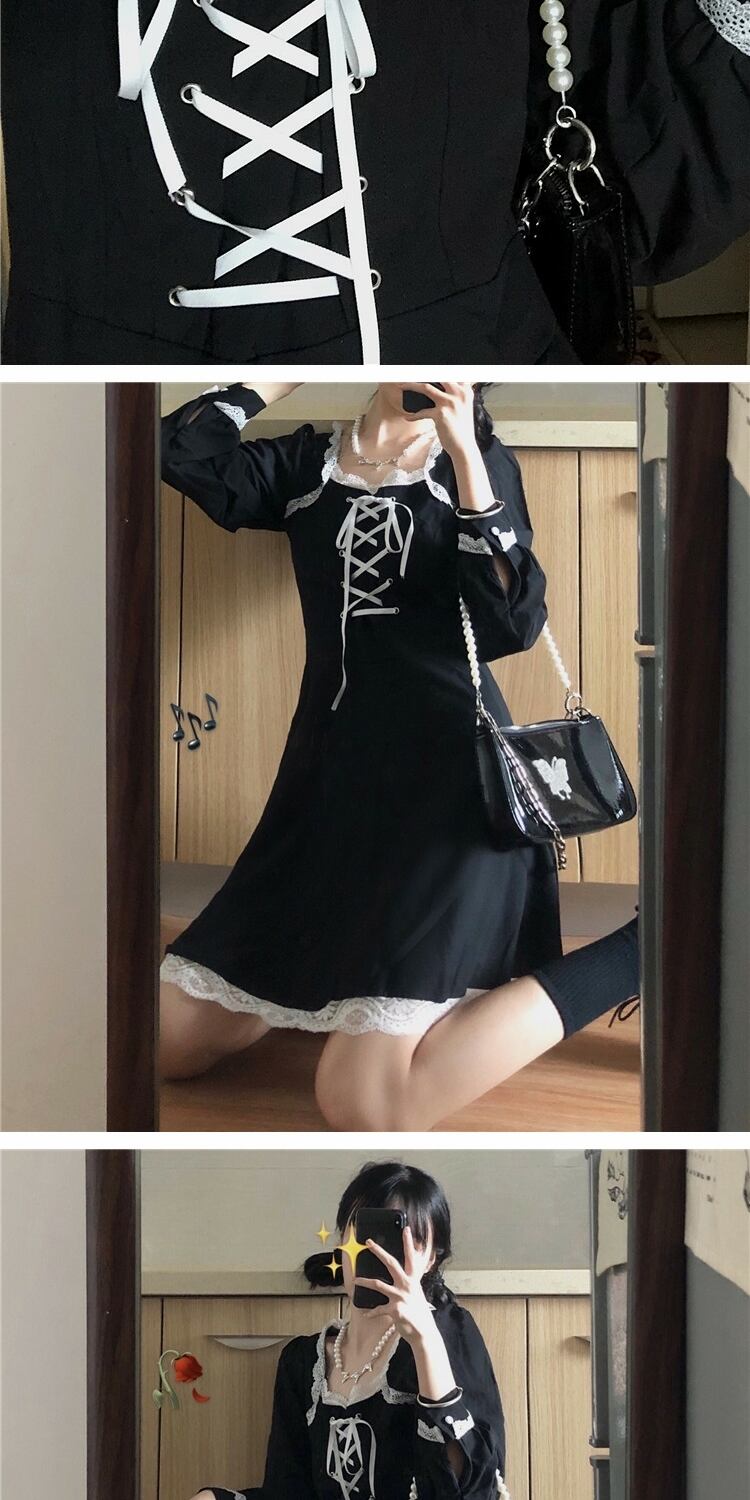 ダークスプリングブラックドレス ウェストスリムスカート 大人ガーリー スウィート キュート カジュアル 春物 萌量不足43958991131